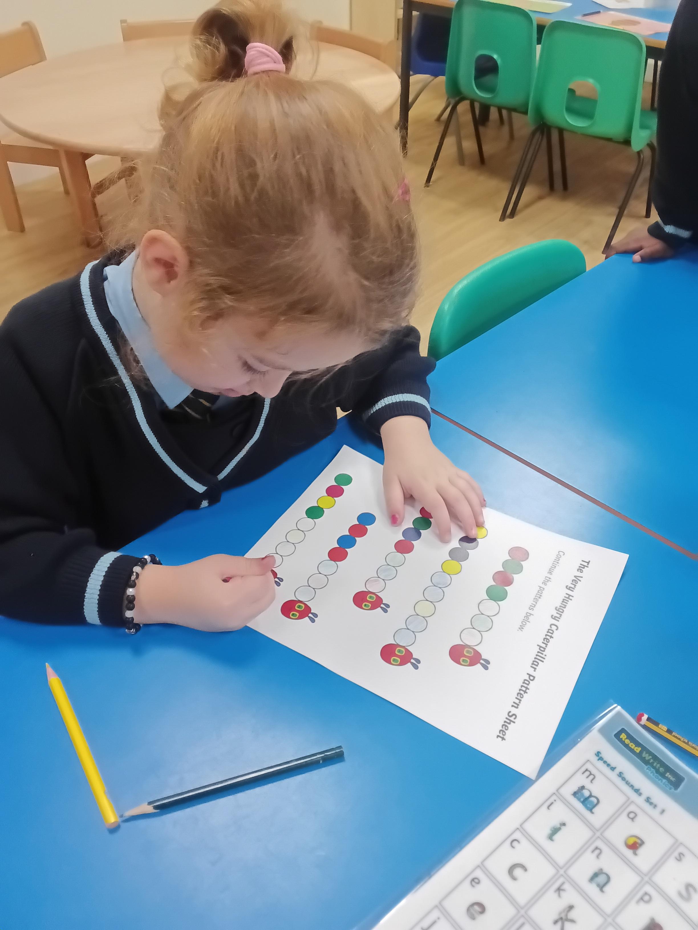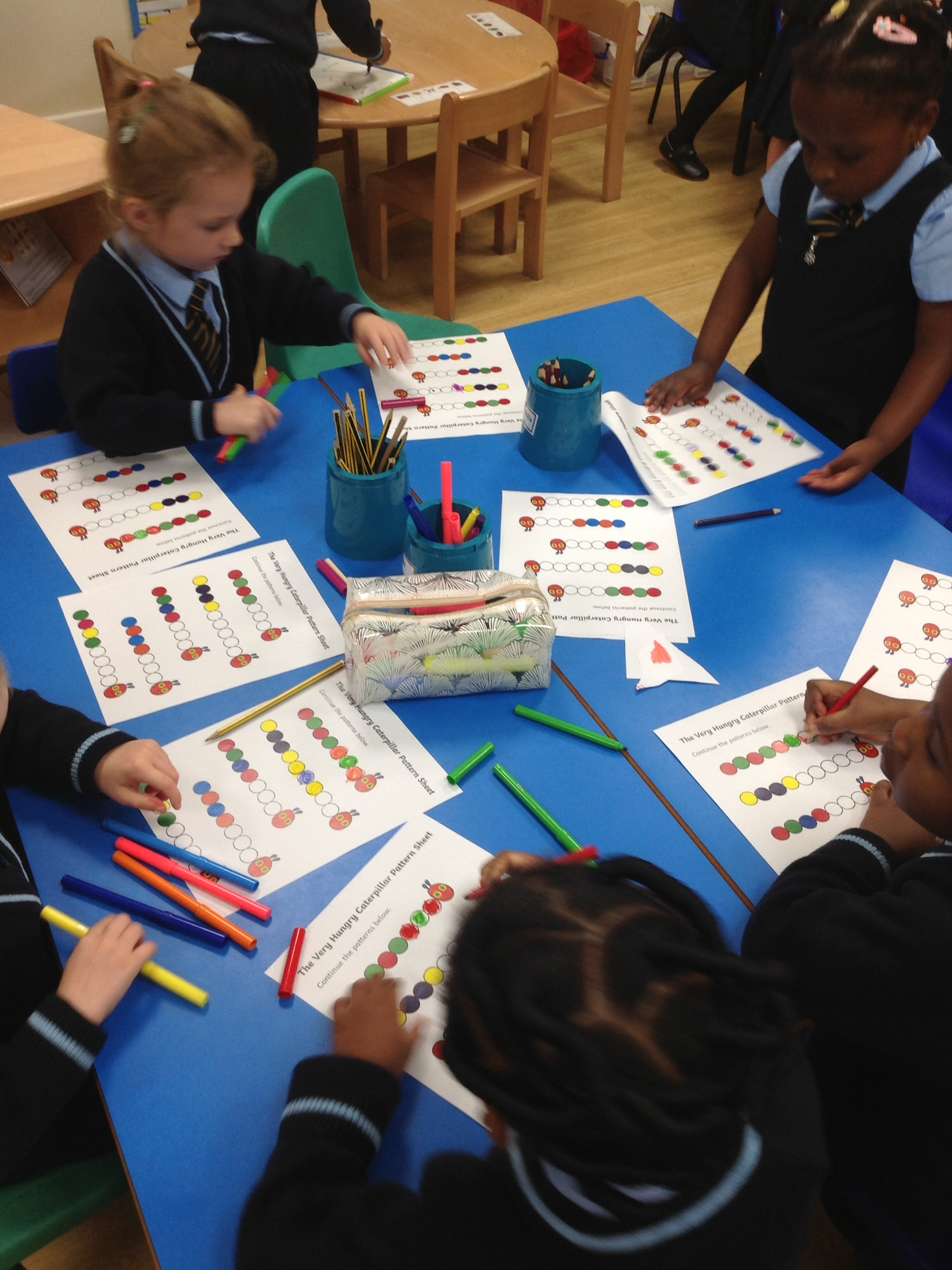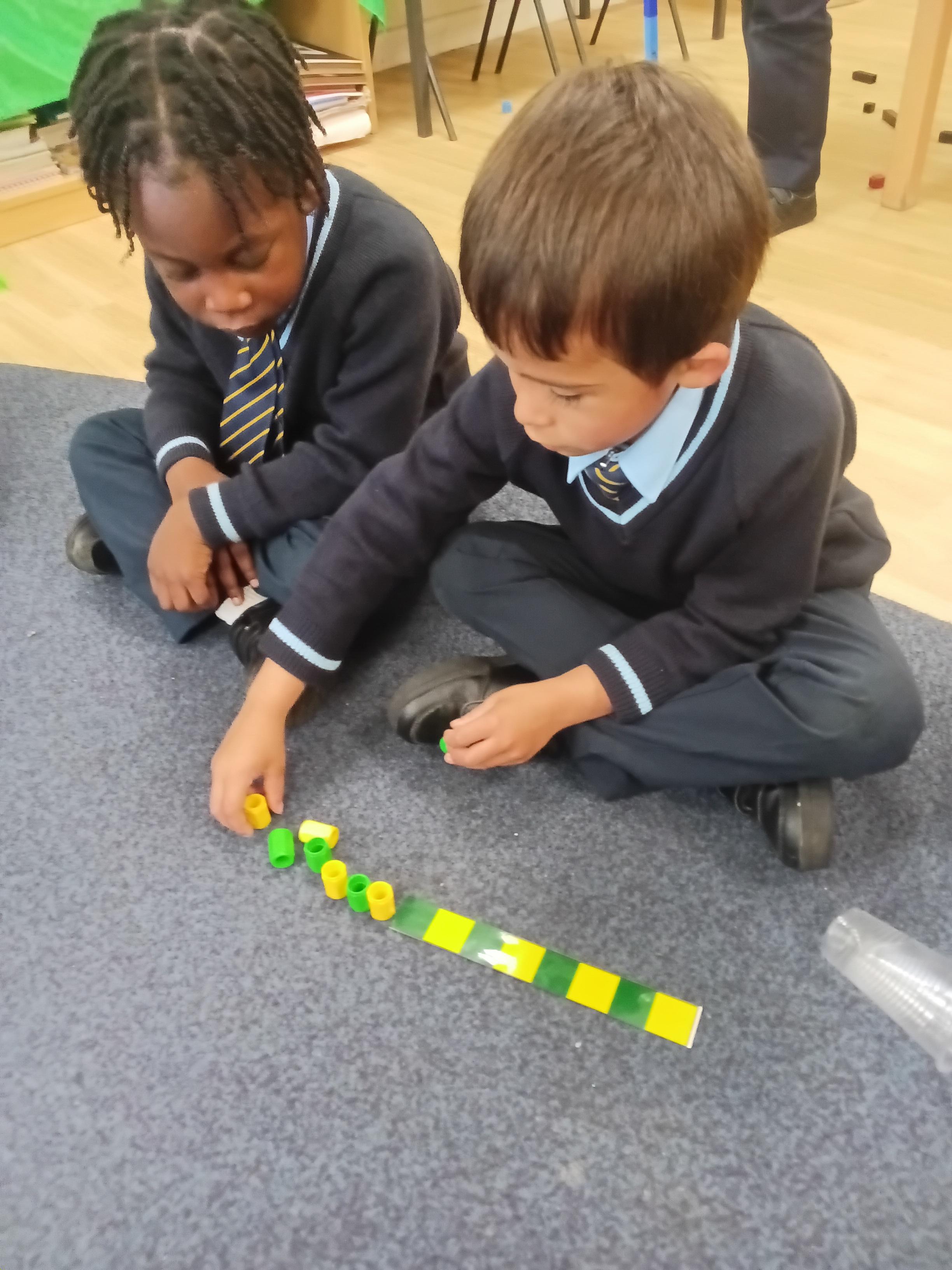 Exploring Patterns - In maths reception children have been exploring patterns. Children have been making patterns using natural materials and also from different objects in the school!