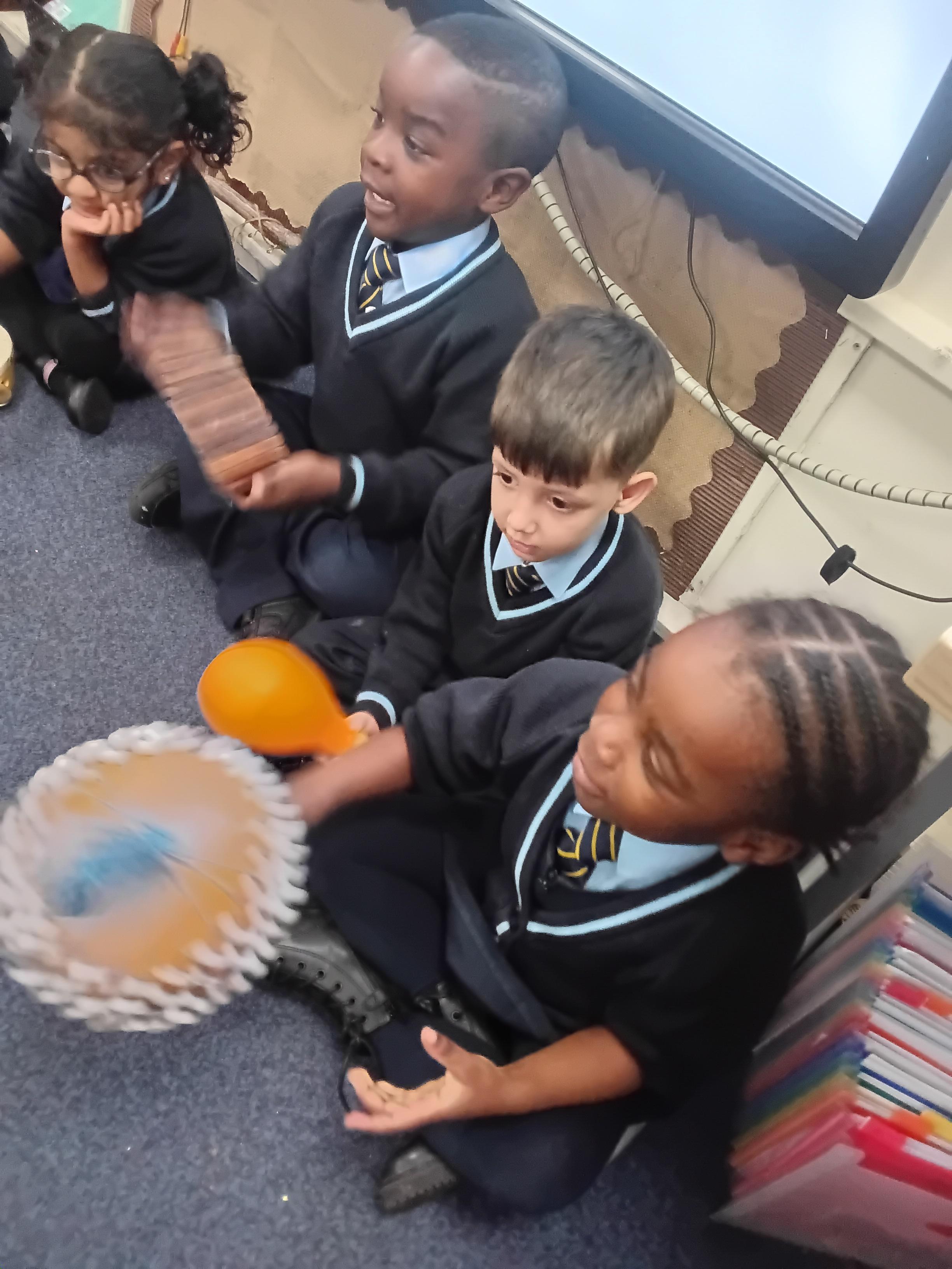 This week the children have been exploring beats in music. We created them using our bodies, and instruments.