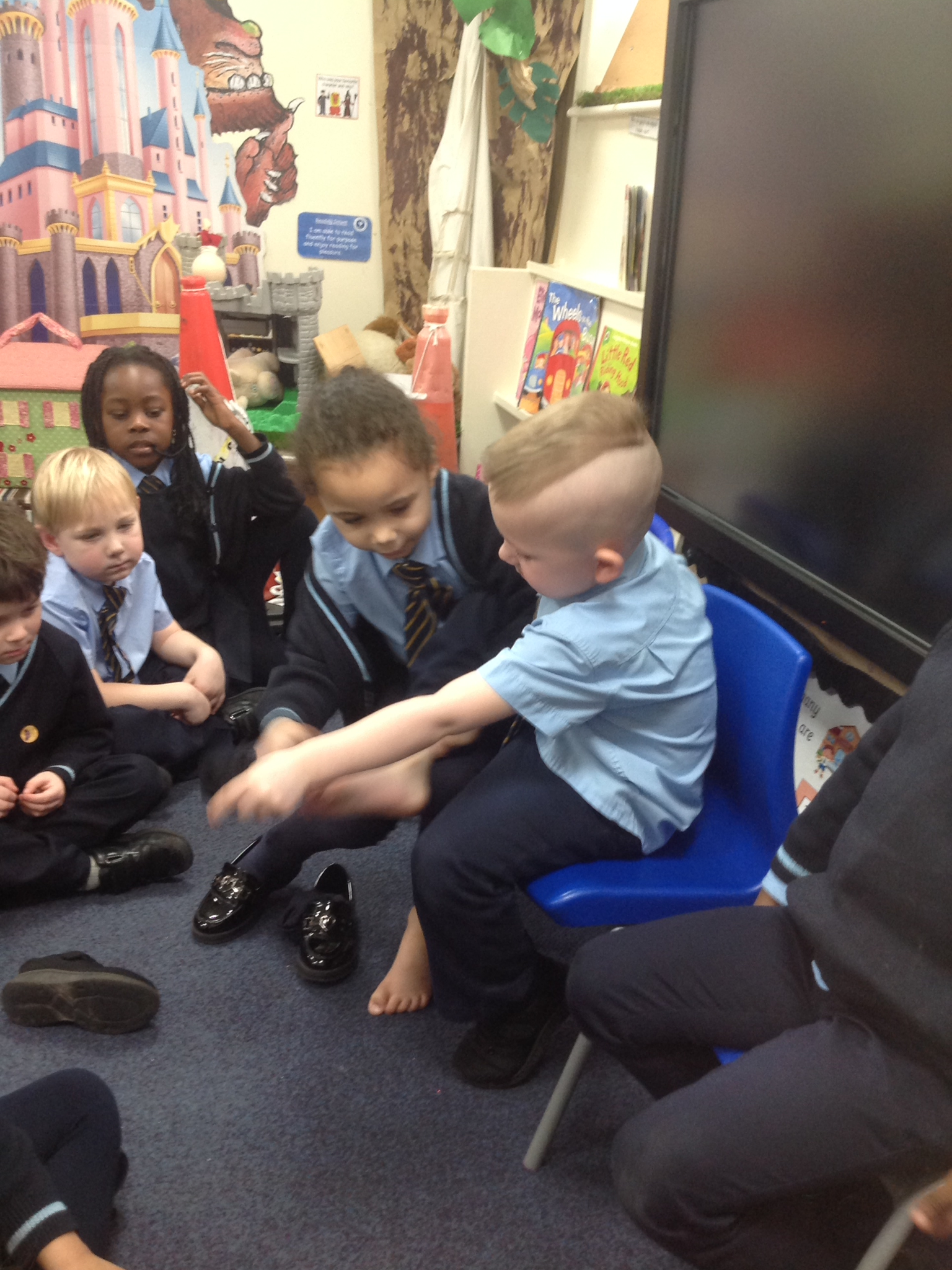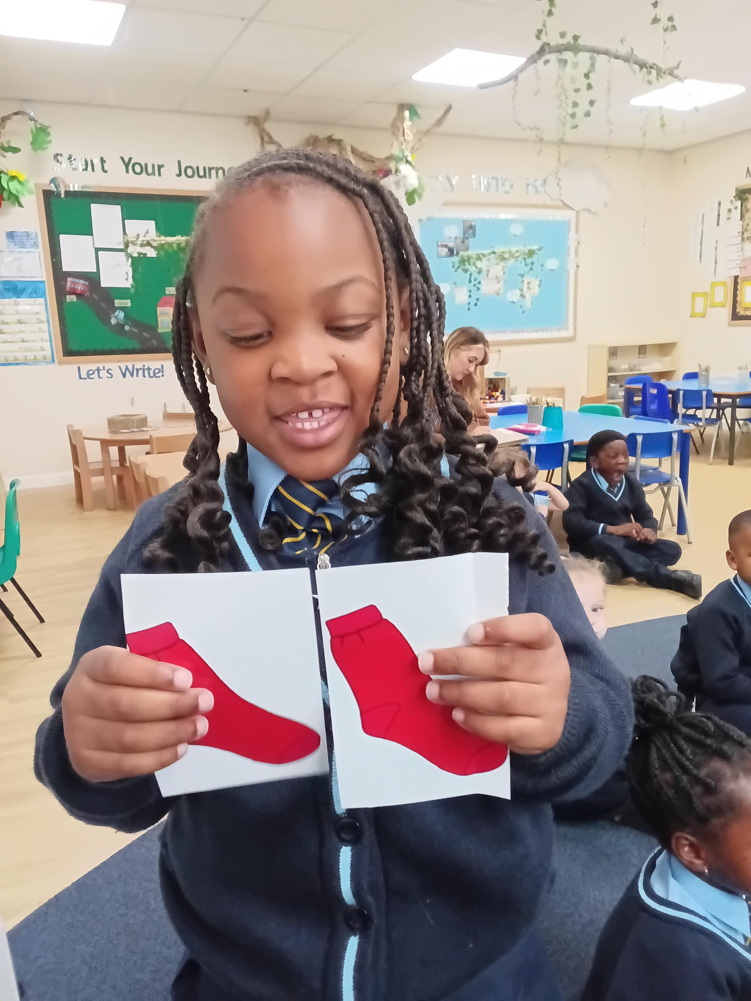 This week in Maths, children have been looking at matching objects. Today children had to find a friend who had the same sock to complete their pair! Children had so much for and did such a great job!