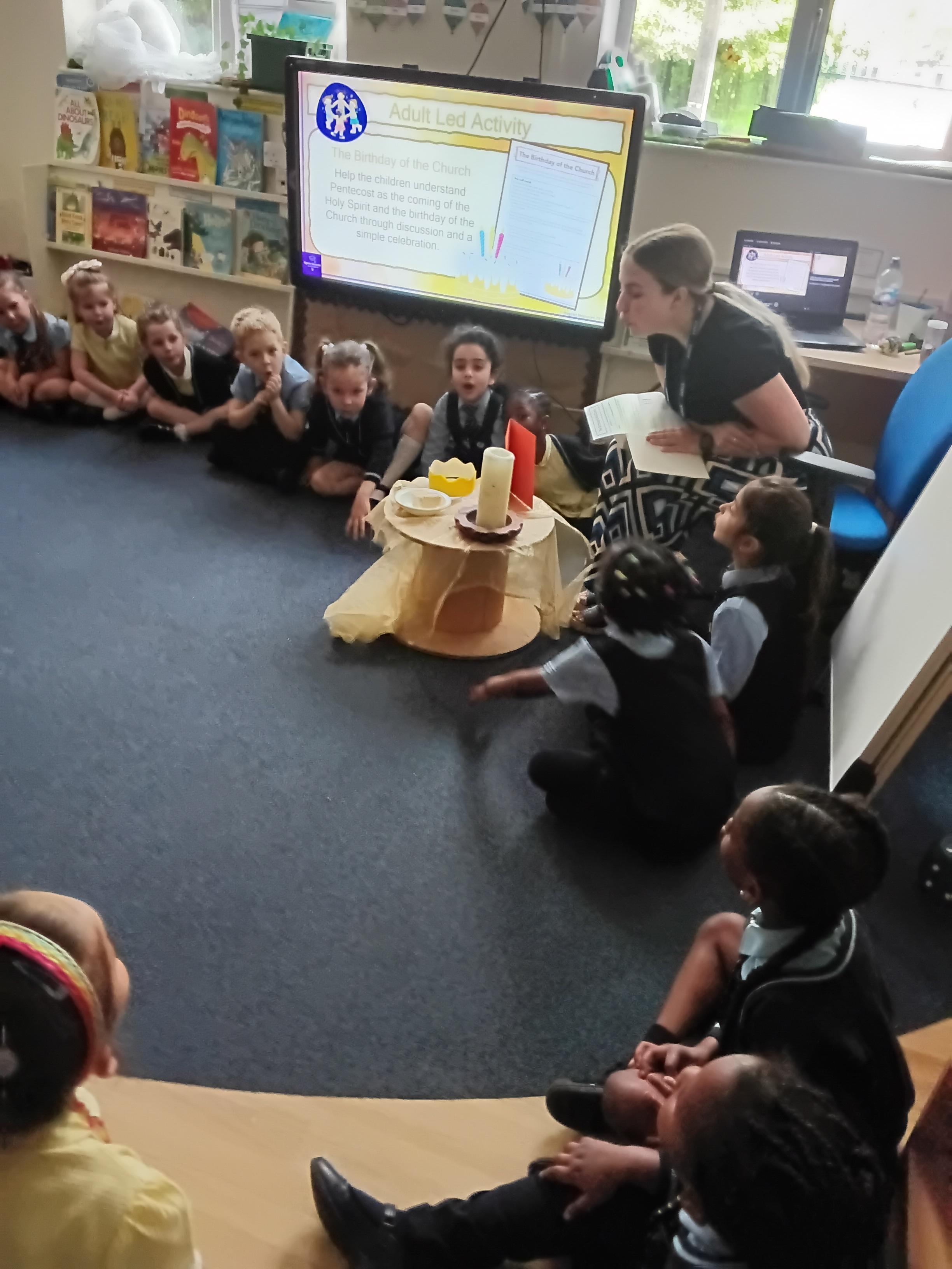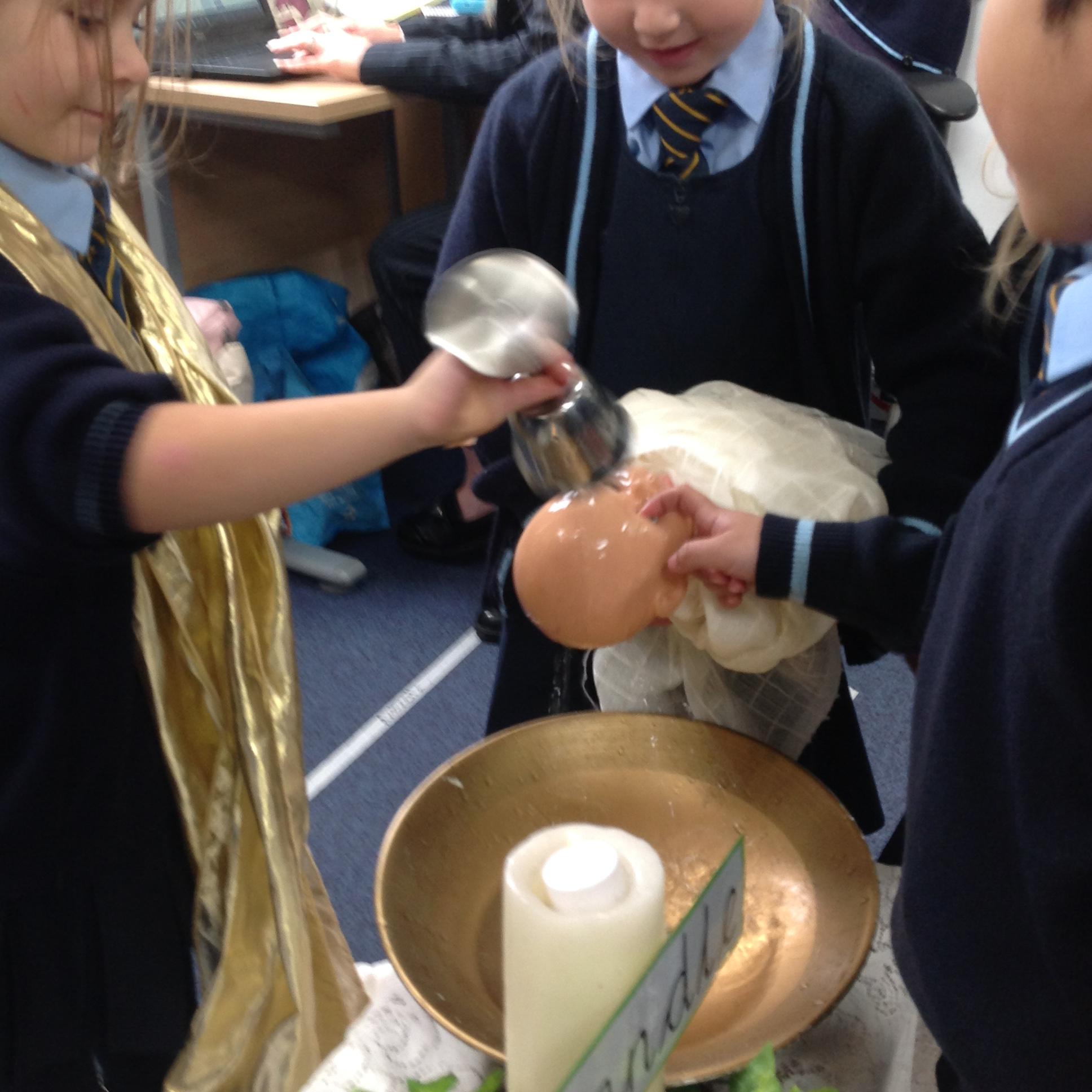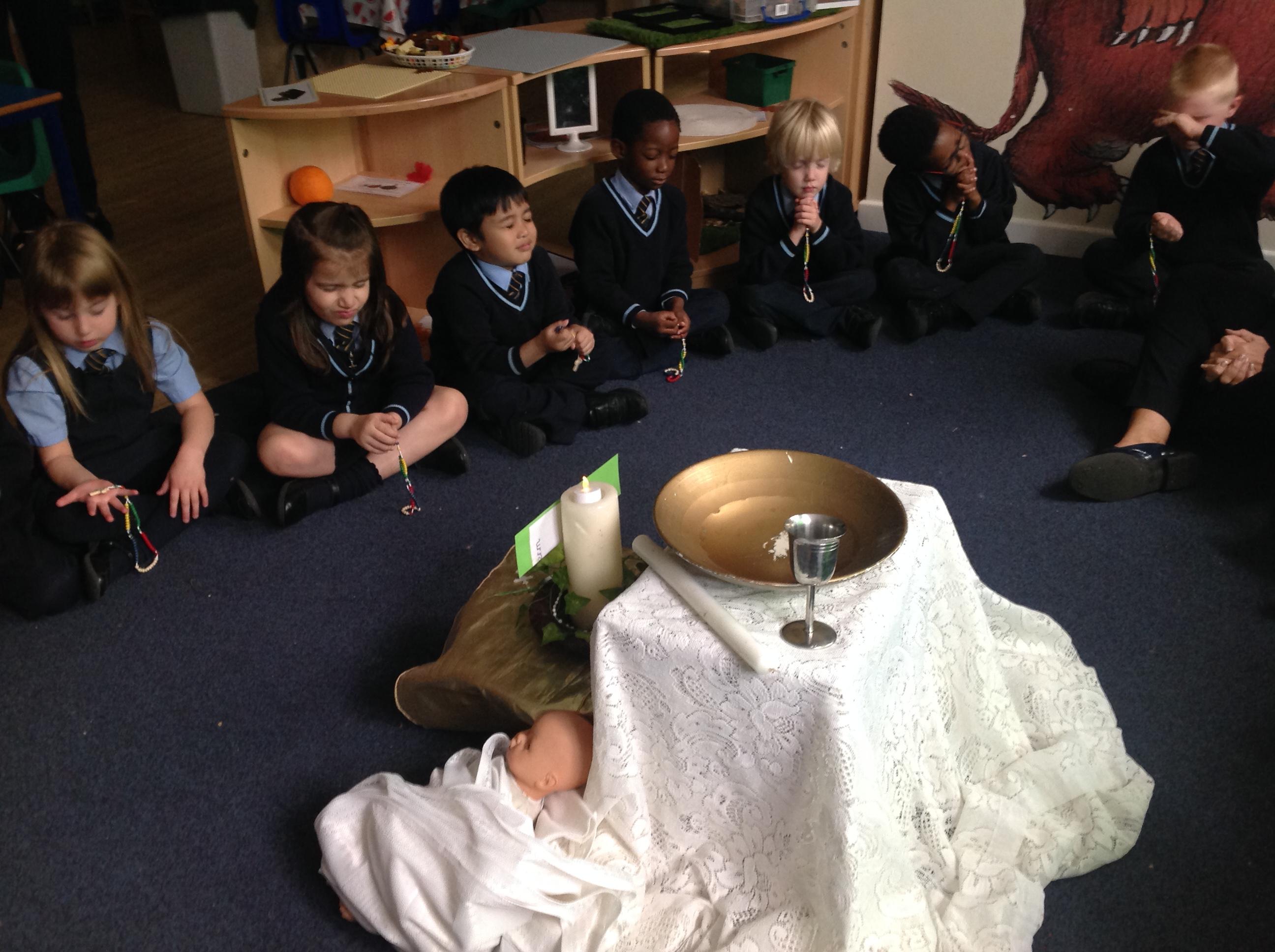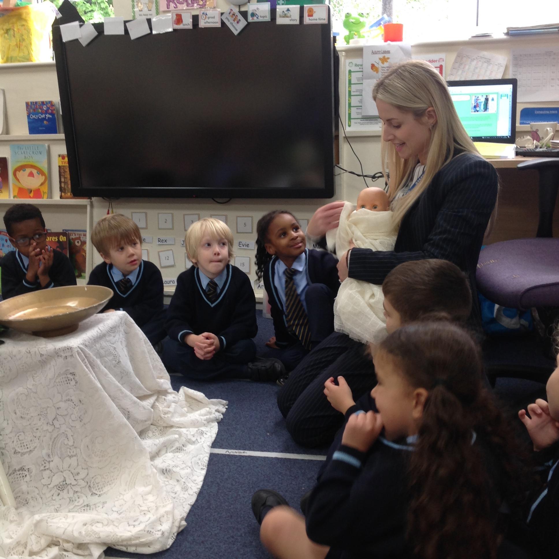 Today children have been learning all about Baptism. Children learnt about what happens when a baby gets baptised and were able to take it in turns to act it out.