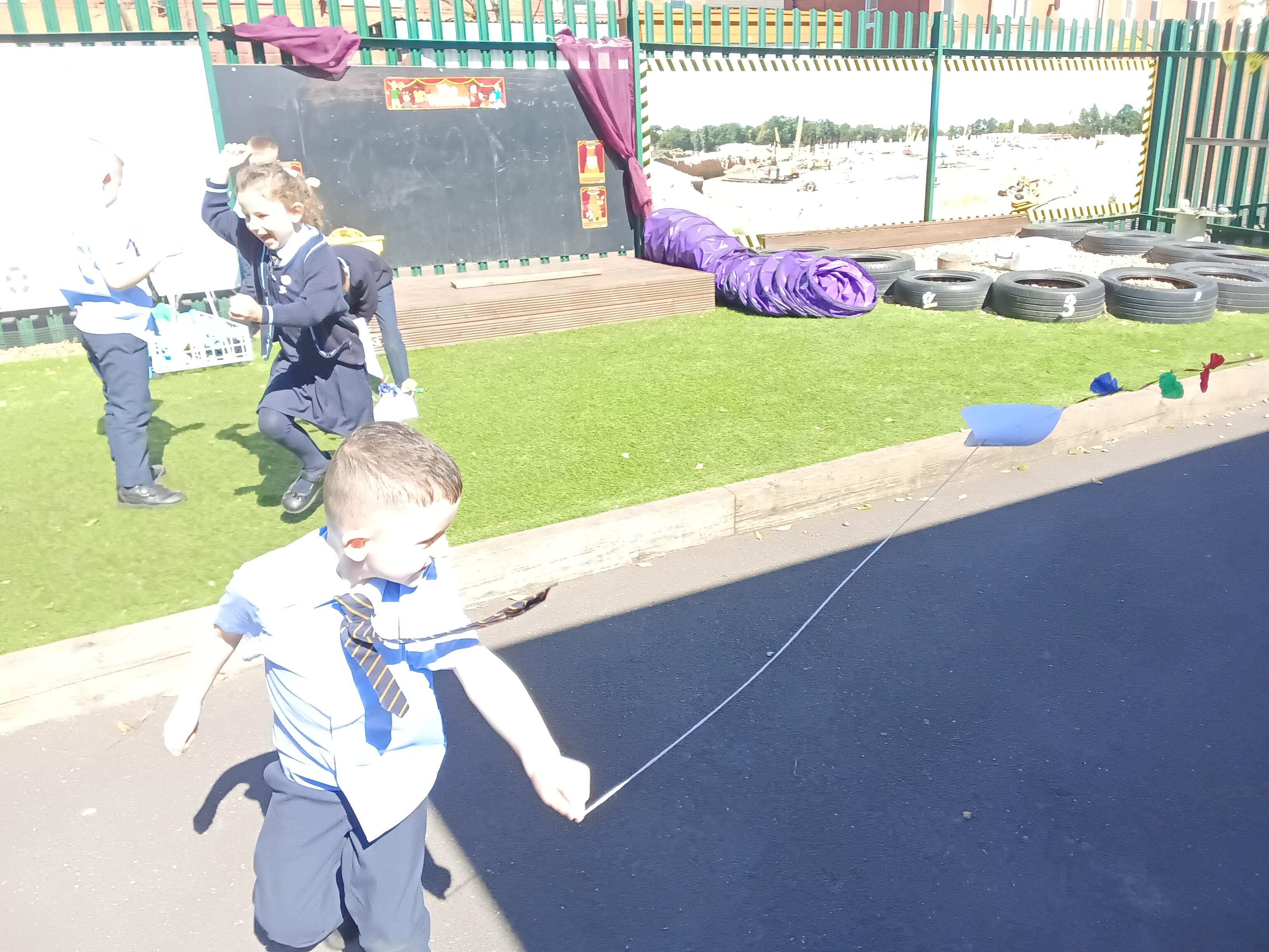 Exploring the Holy Spirit- We ran in the wind with our bubbles to celebrate the Holy Spirit. You can't see it but you can feel it!