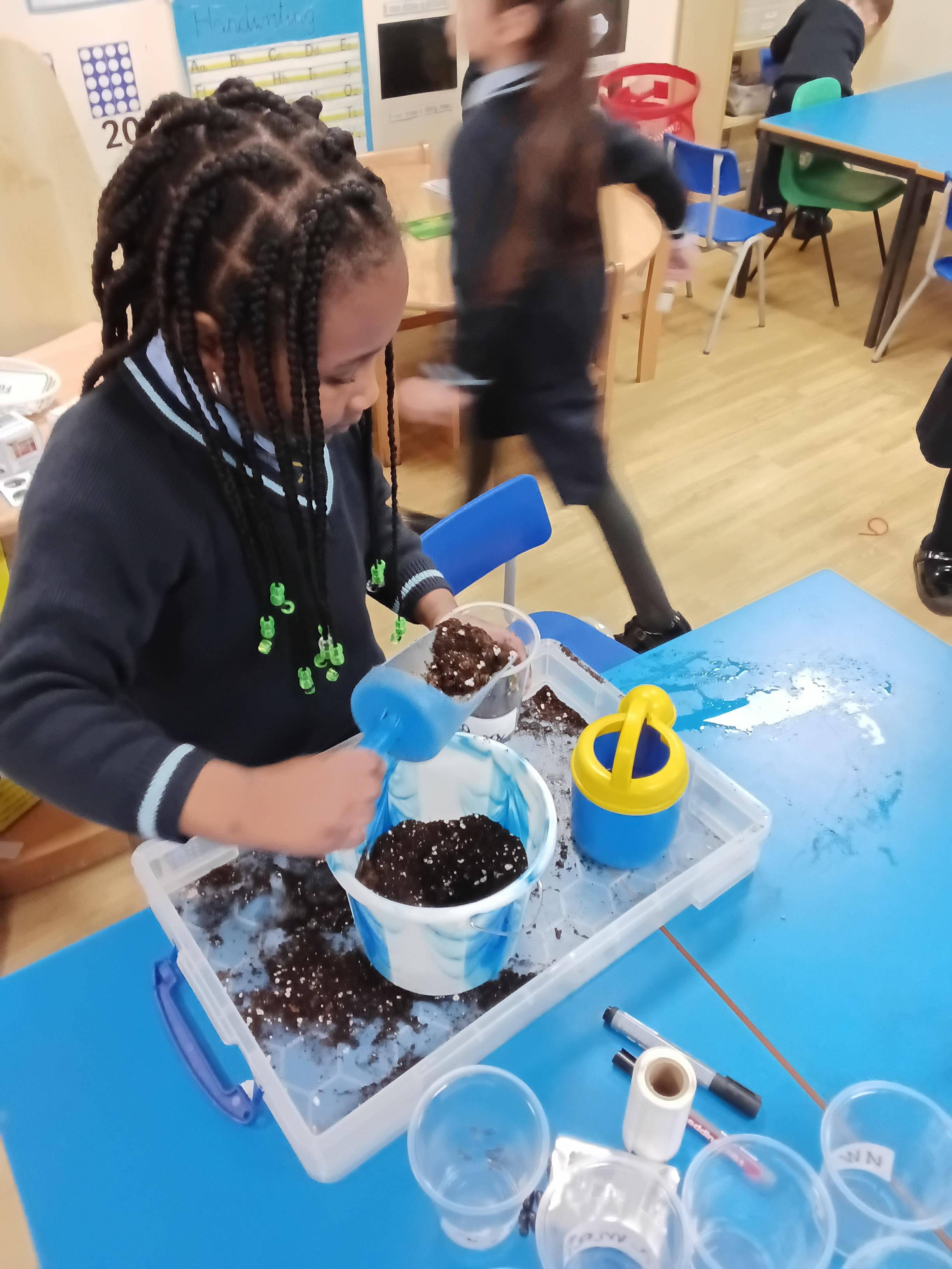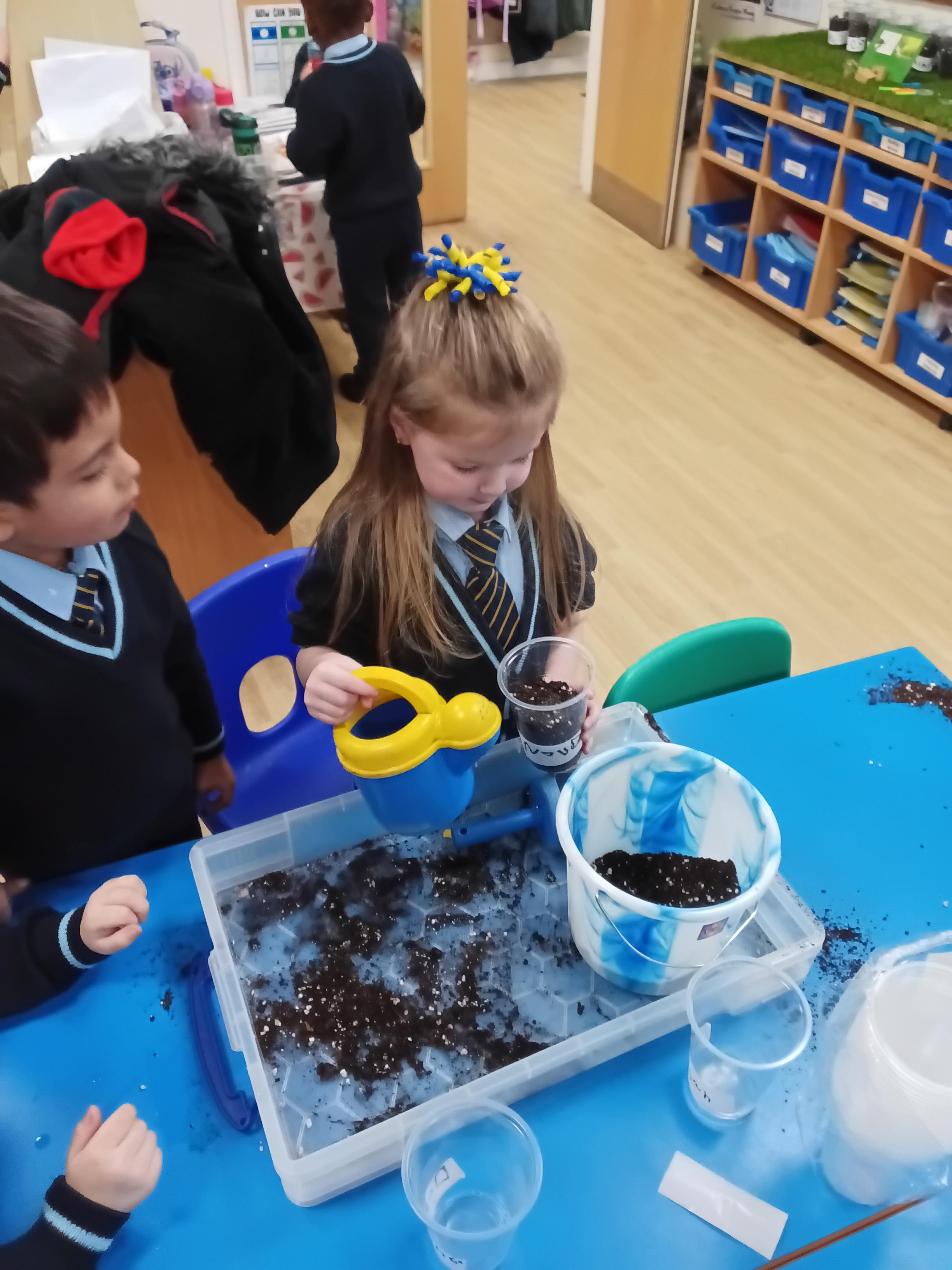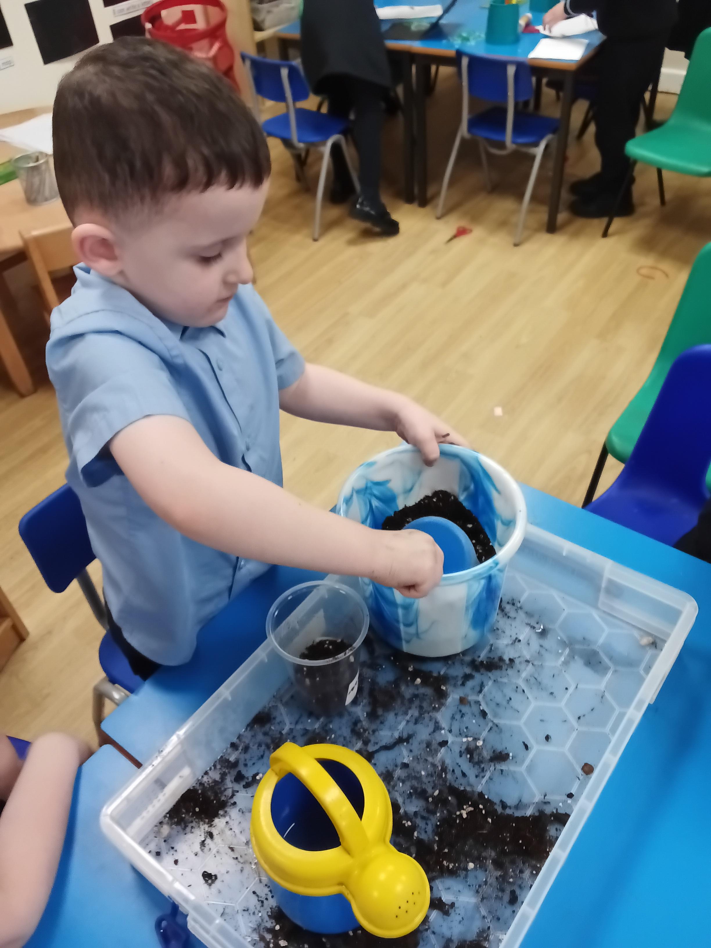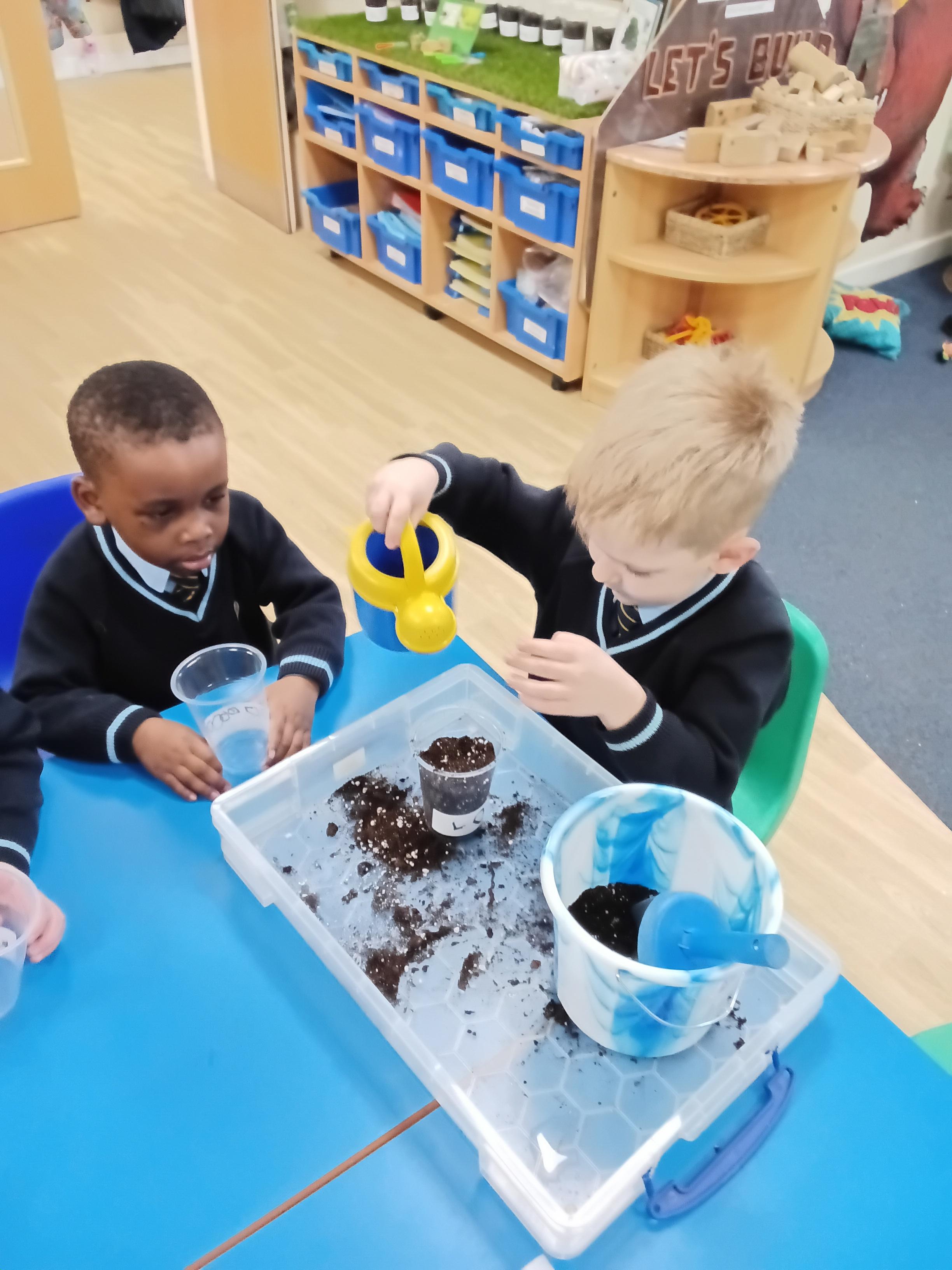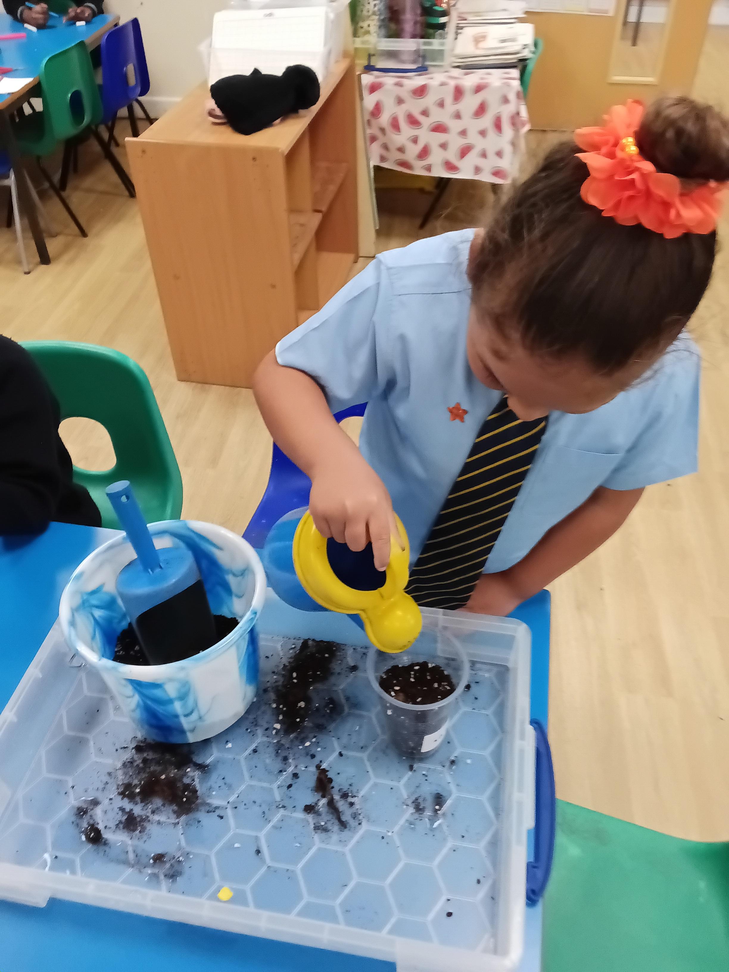 Reception have been learning about Jack and the beanstalk, and we have planted our own bean plants. We have explored different parts of the plant and the stages of its growth! We have been looking after our plants and watering them everyday, to watch the stages of growth come to life!