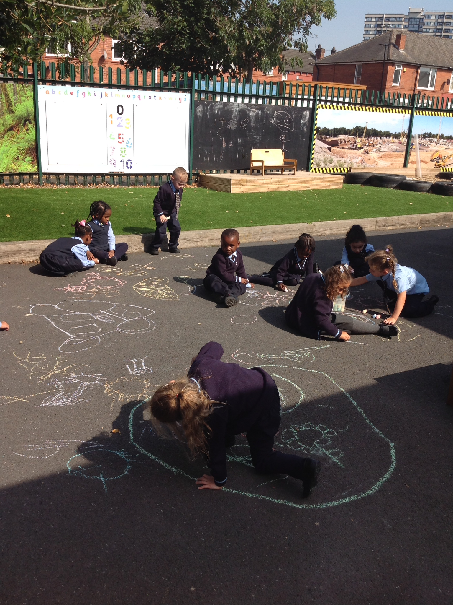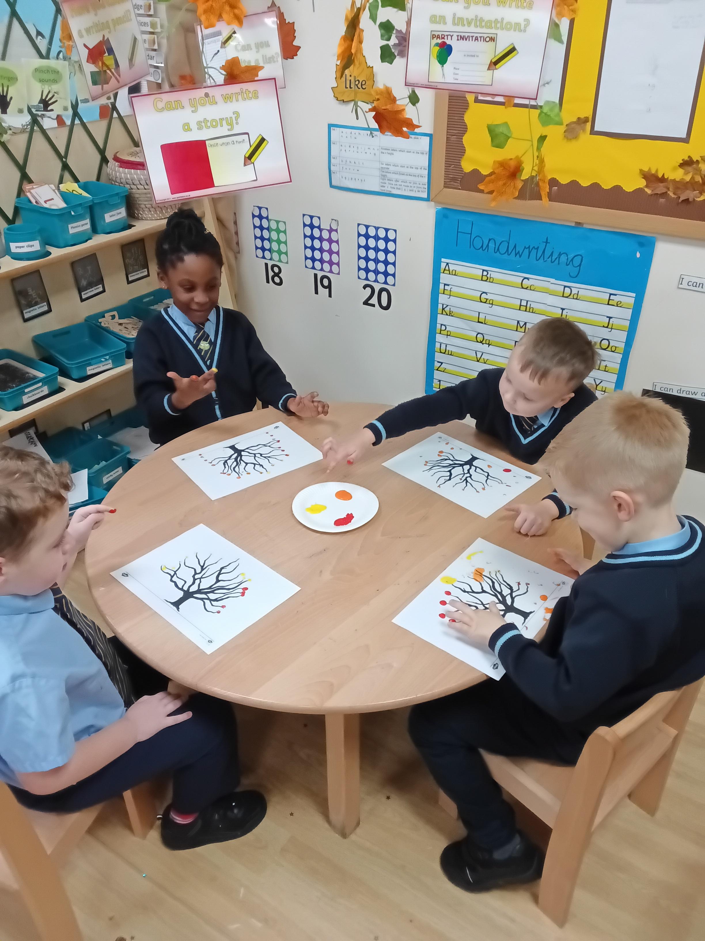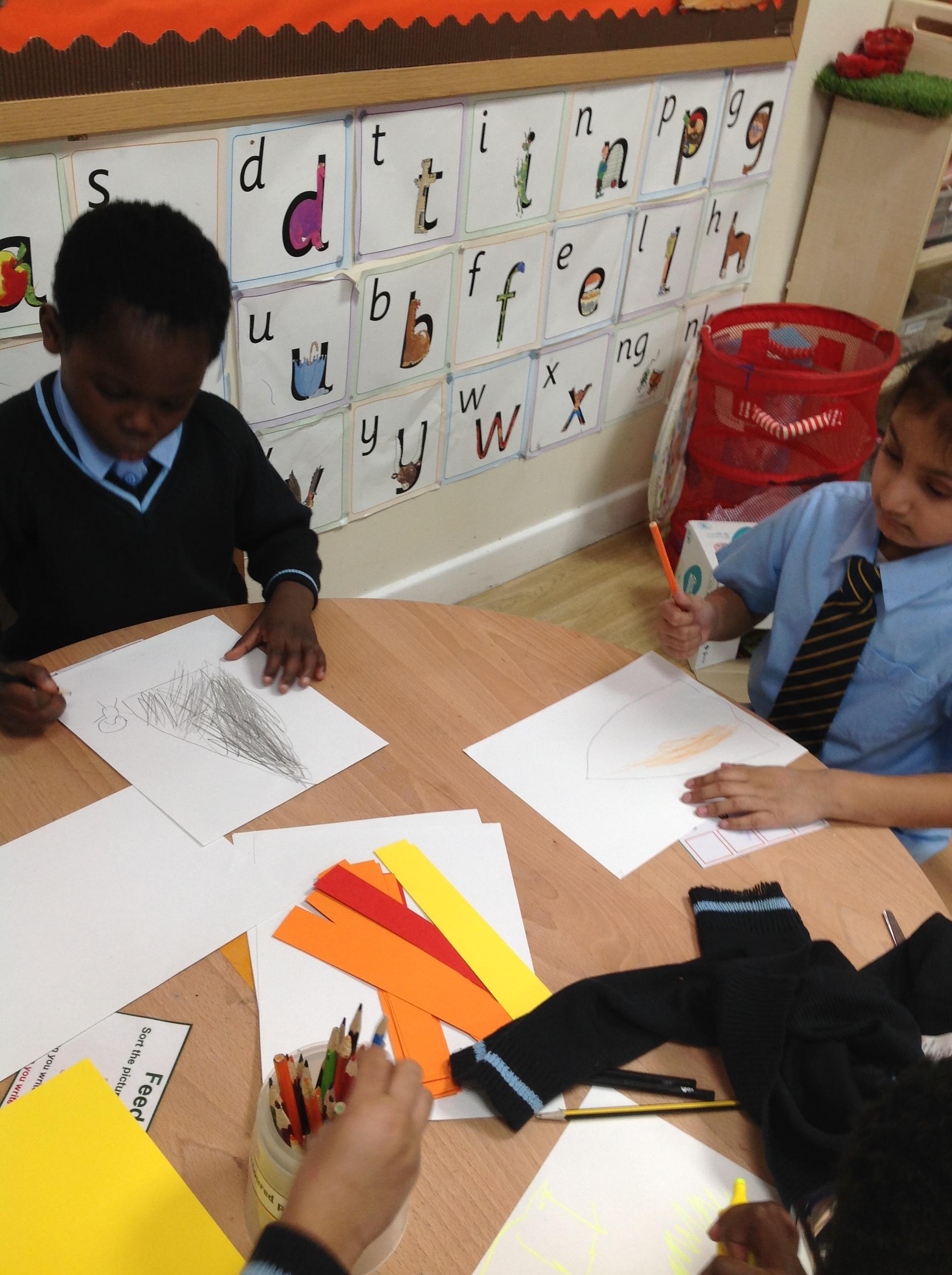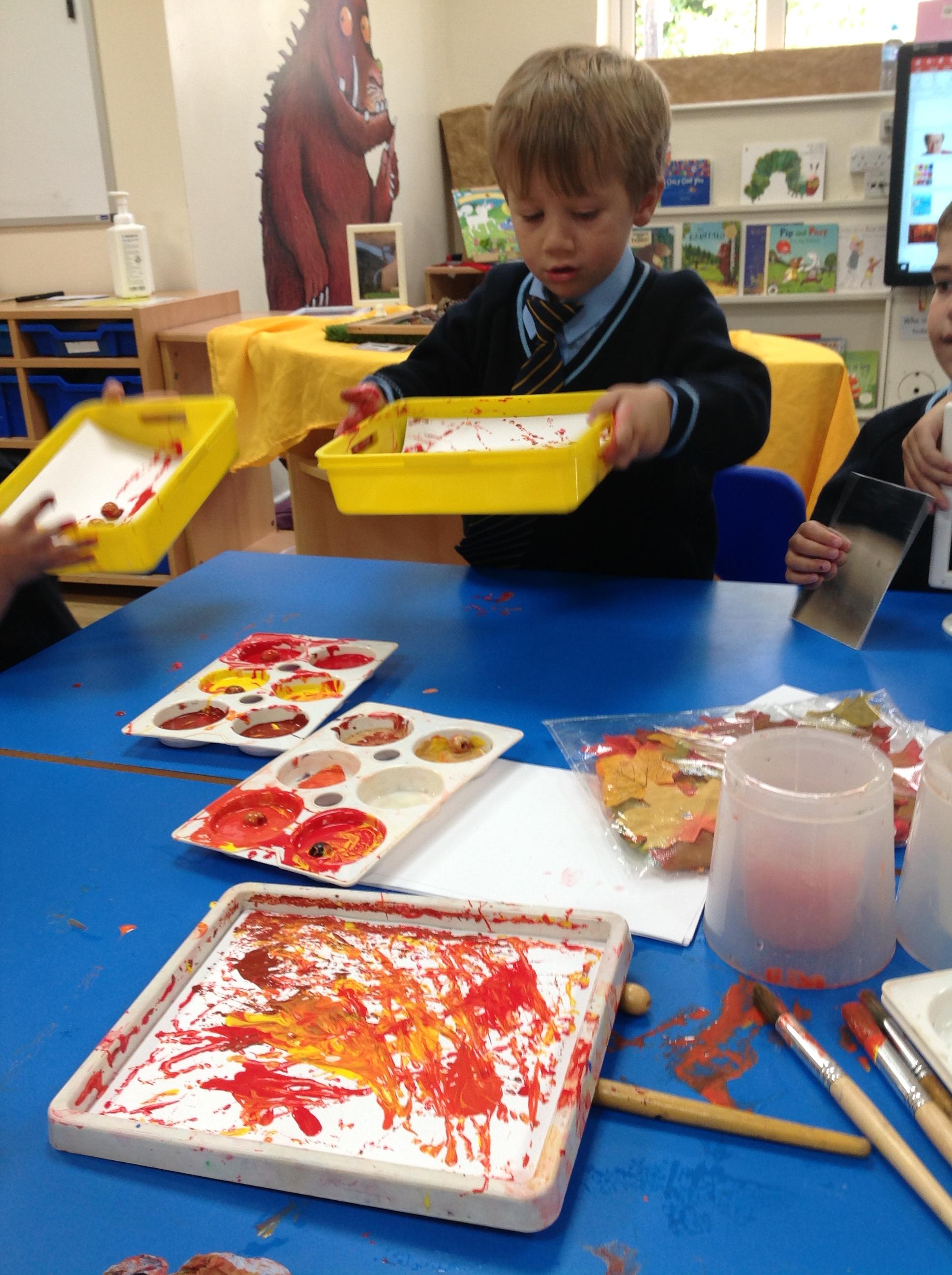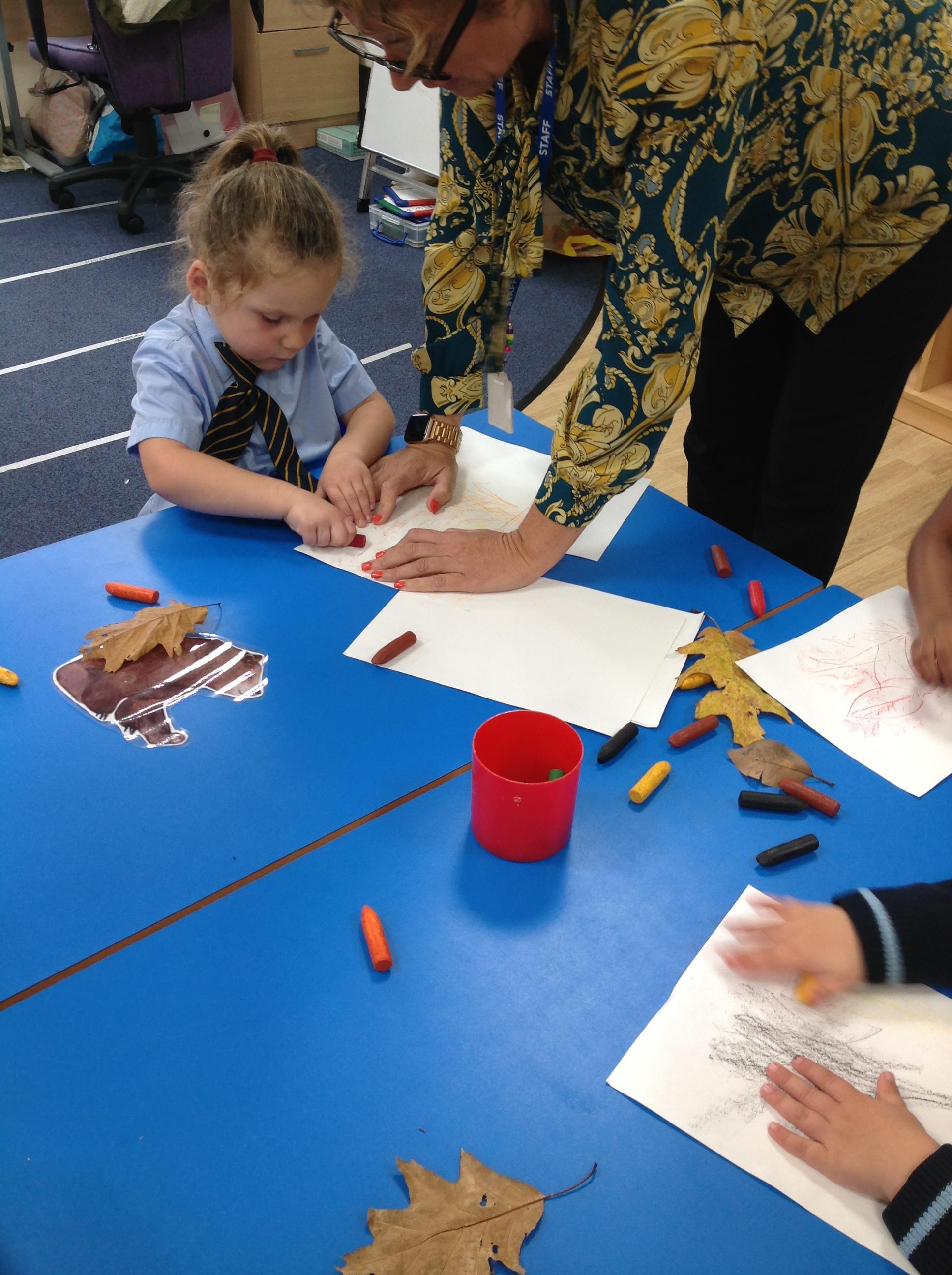 Autumnal Art - Reception children have been exploring using pastel crayons to make autumnal pictures of leaves! Children enjoyed collecting the leaves and using them in their art.