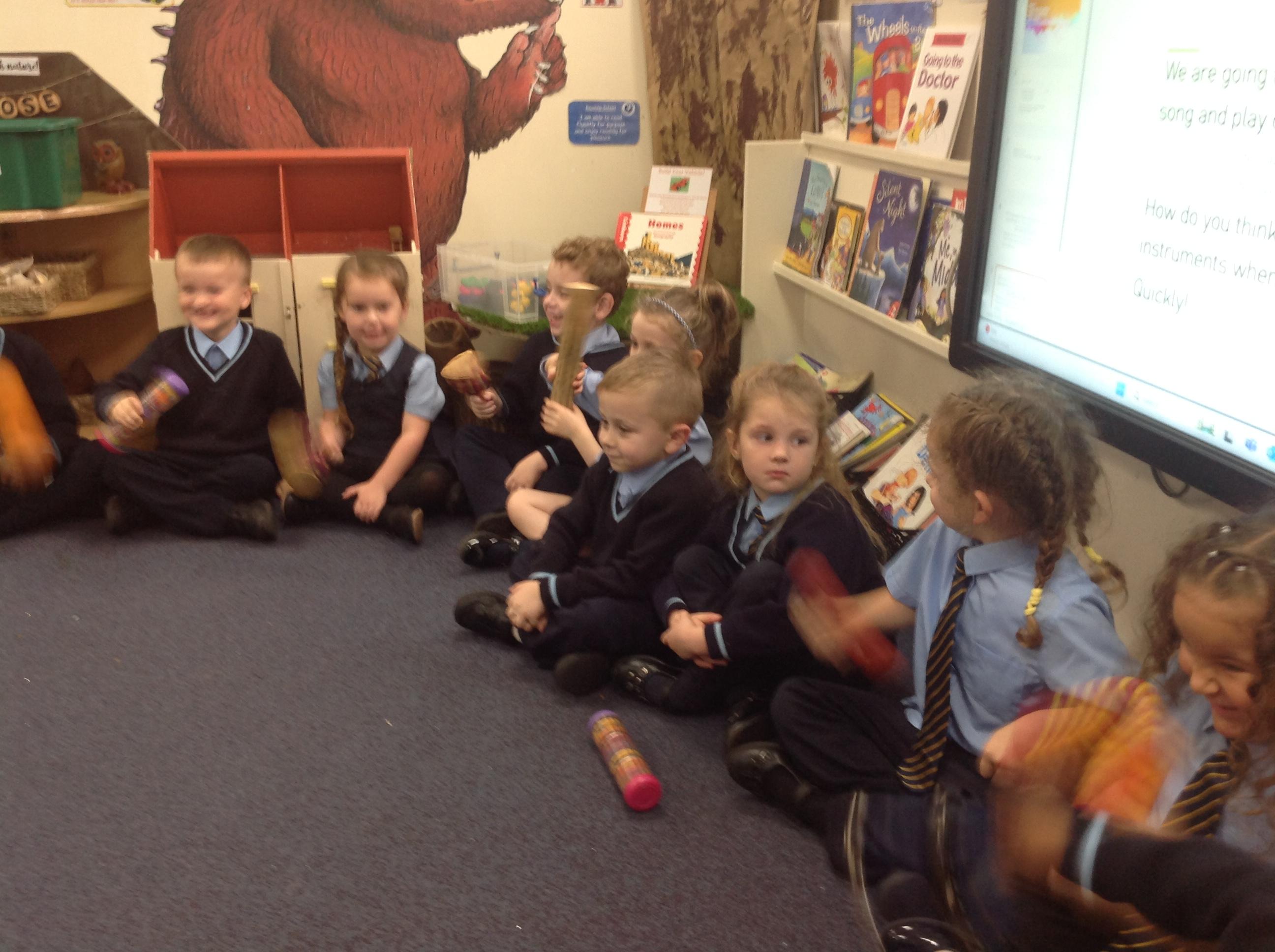 Making music everywhere! Today children have been using different instruments and have been exploring the musical term tempo. Children played the instruments very fast and also very slow!