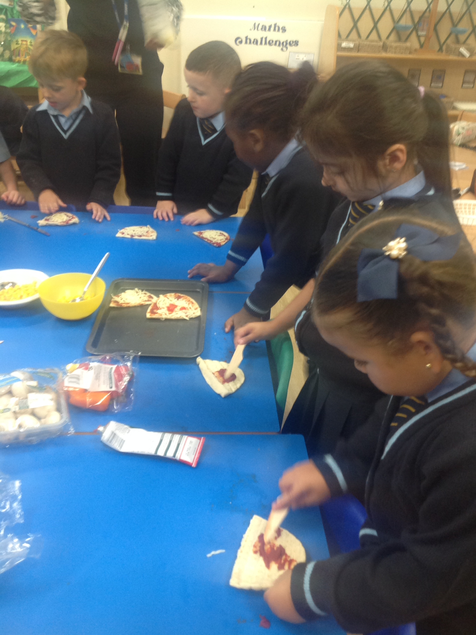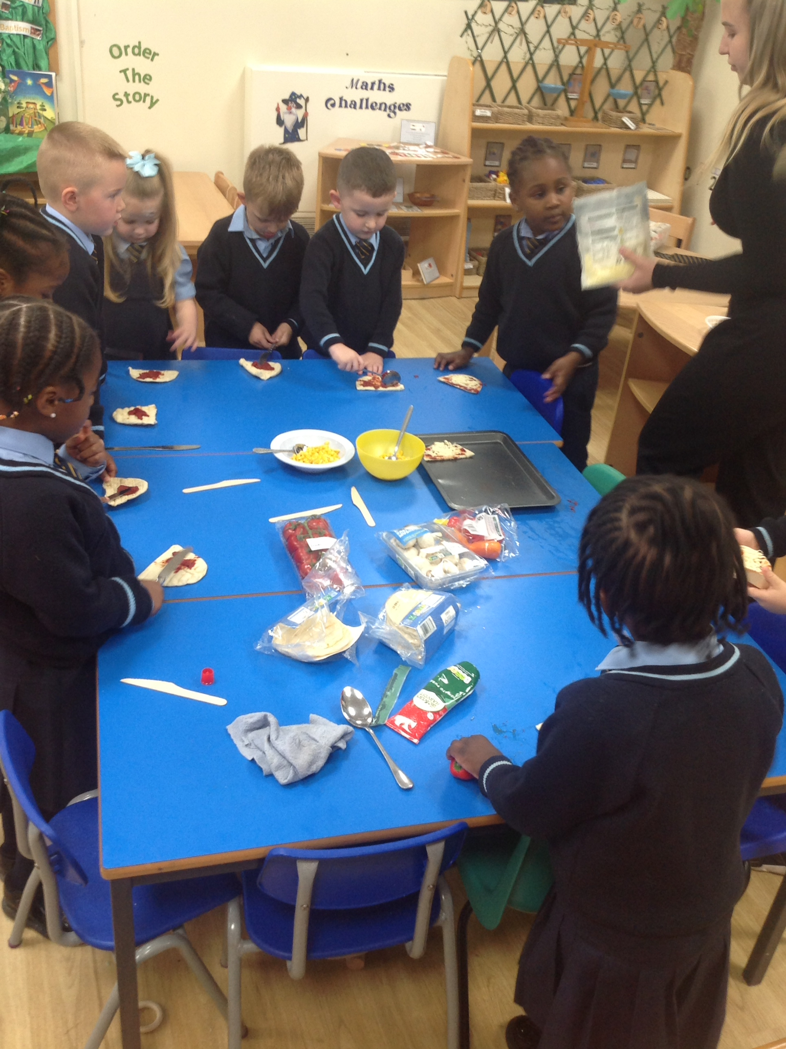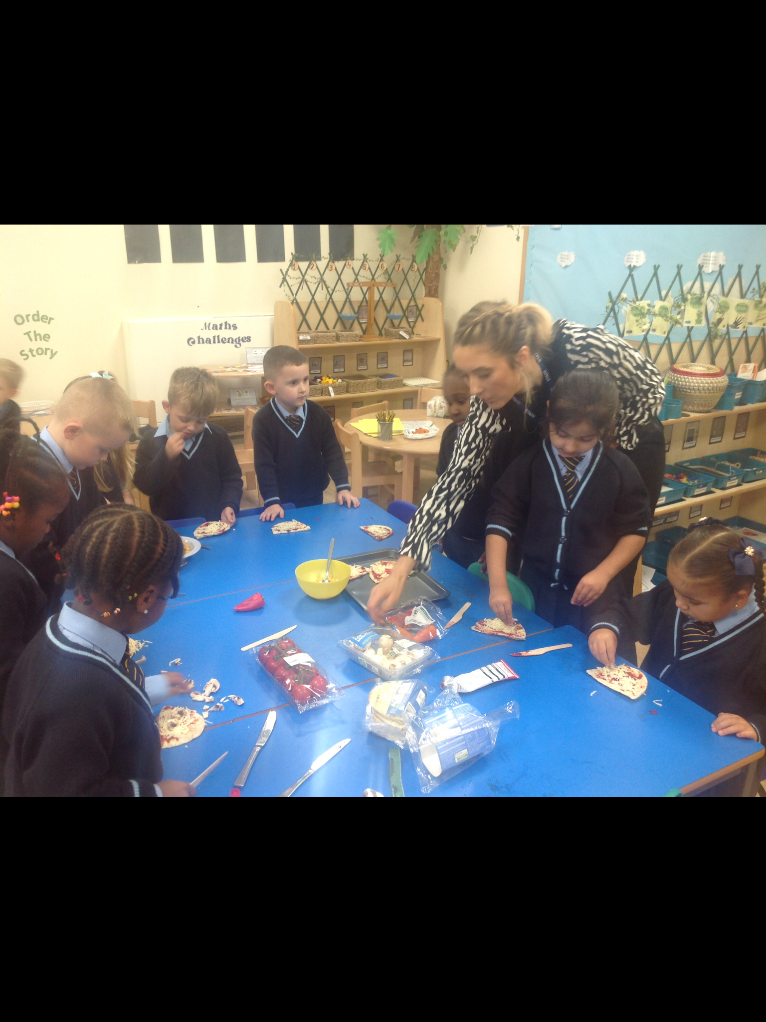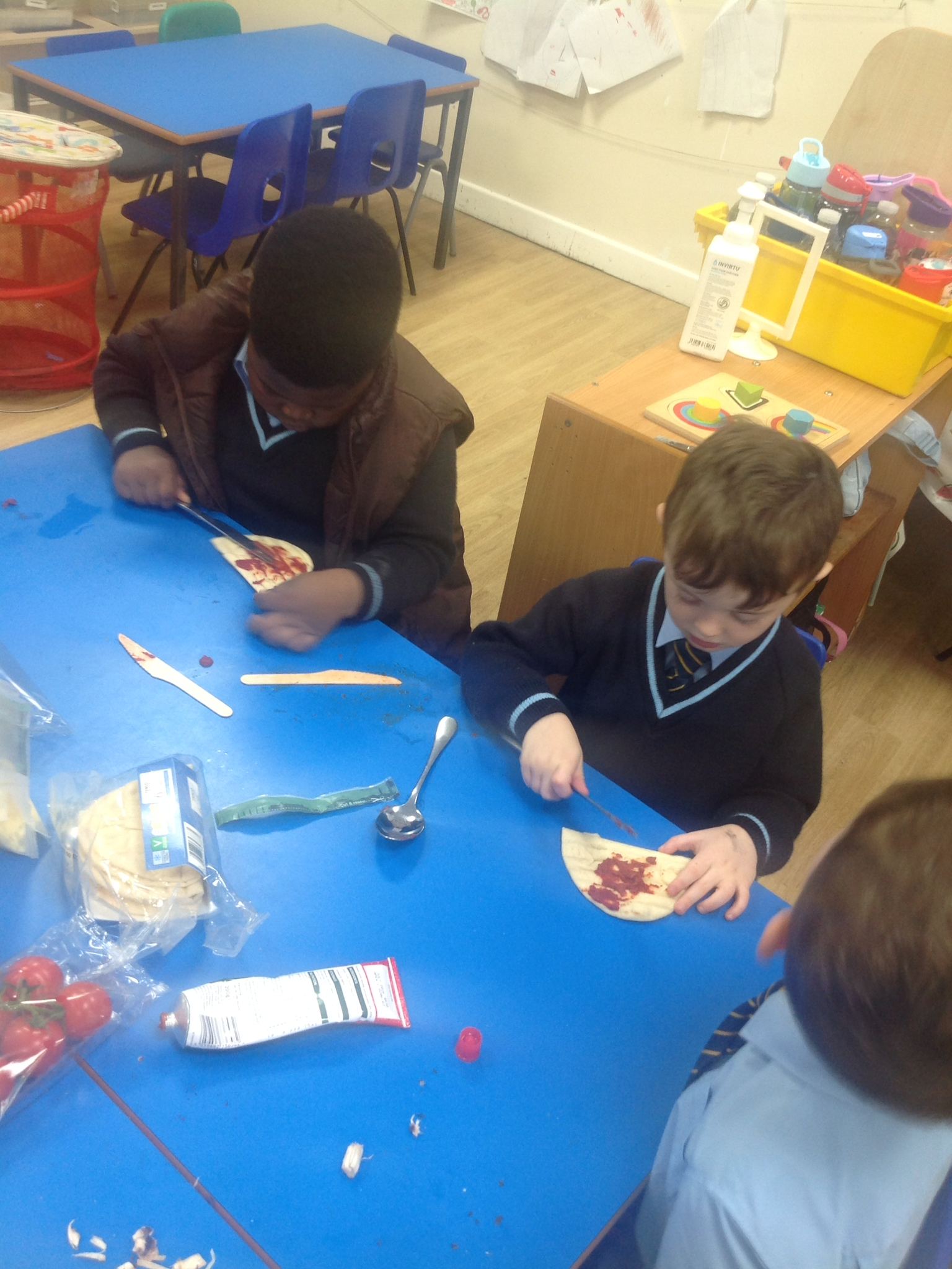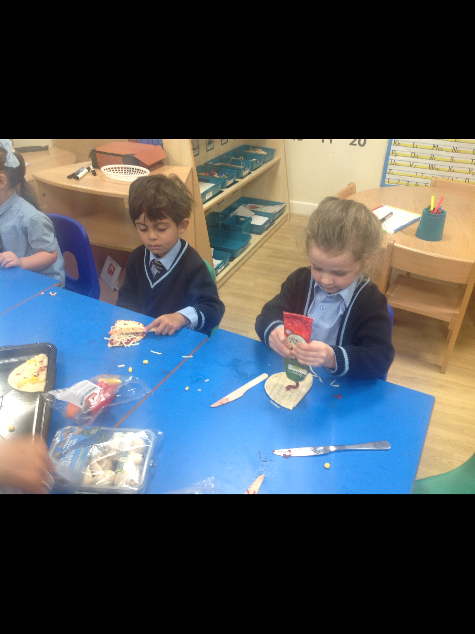 We have had lot's of fun today making pizzas to feed the big bad wolf, so we can help to save the three little pigs!