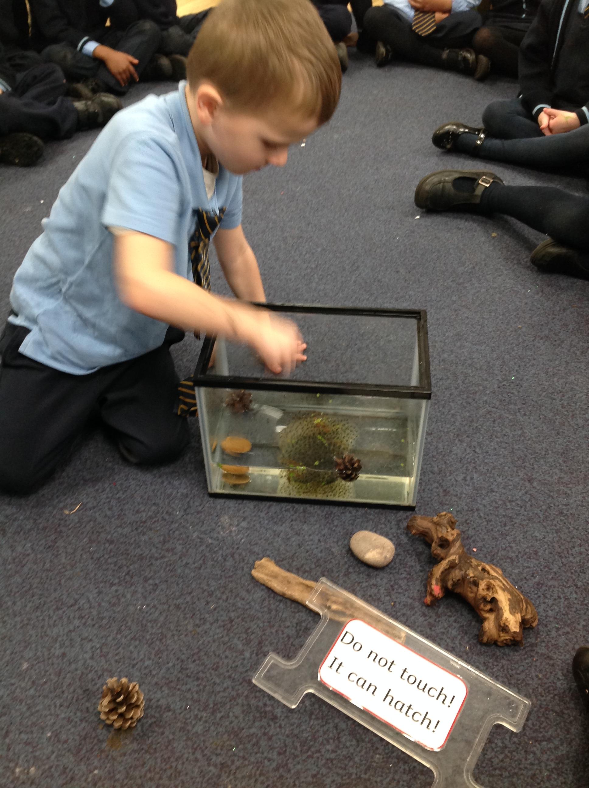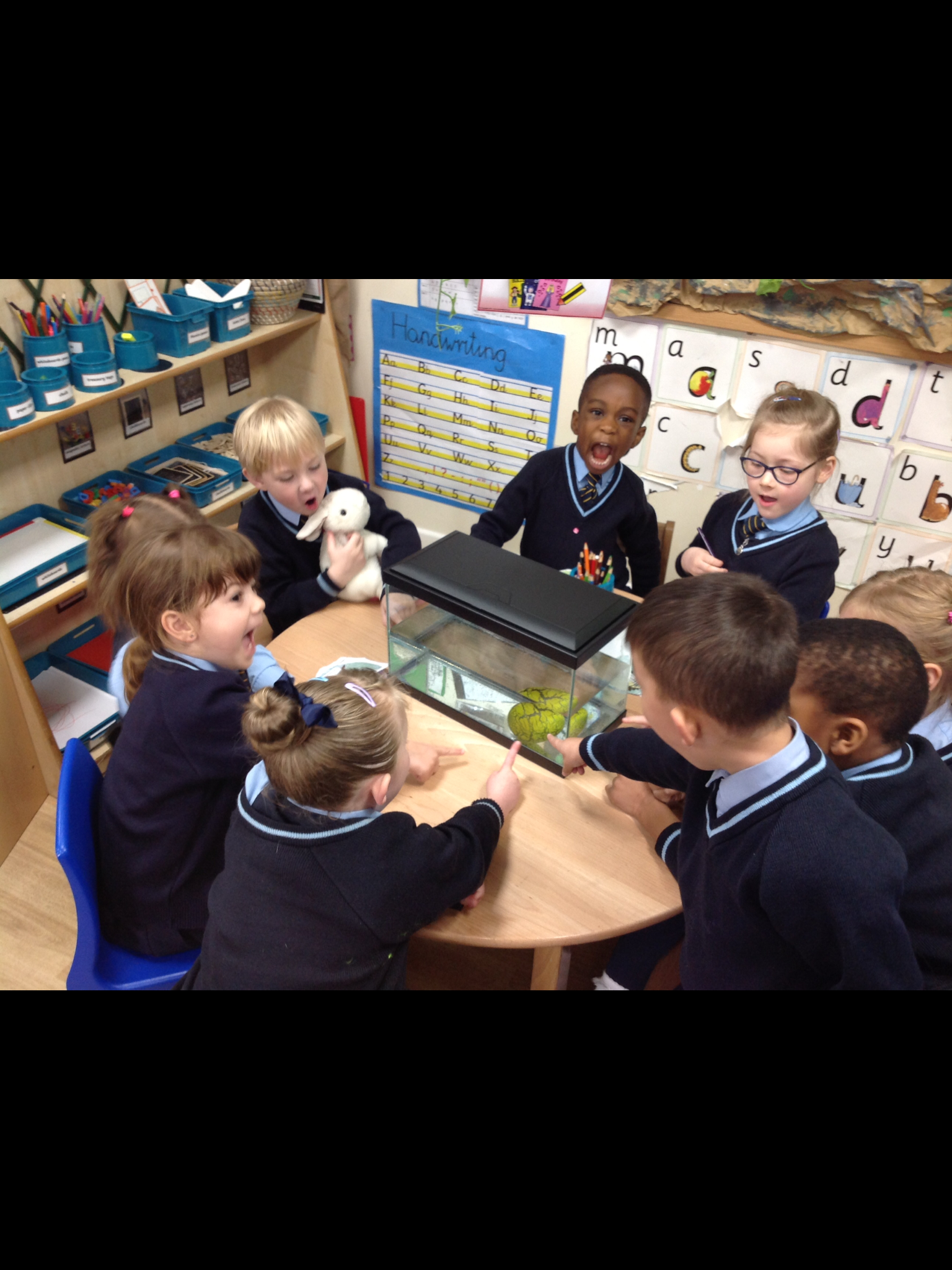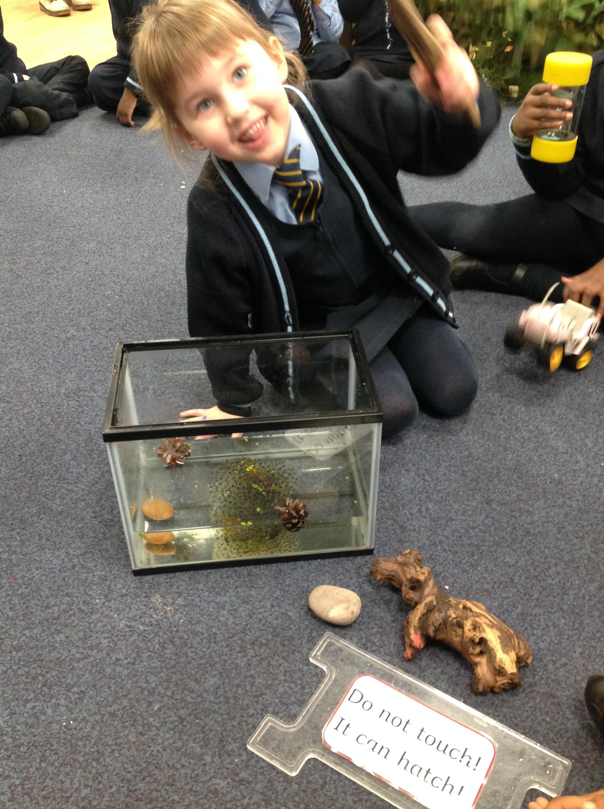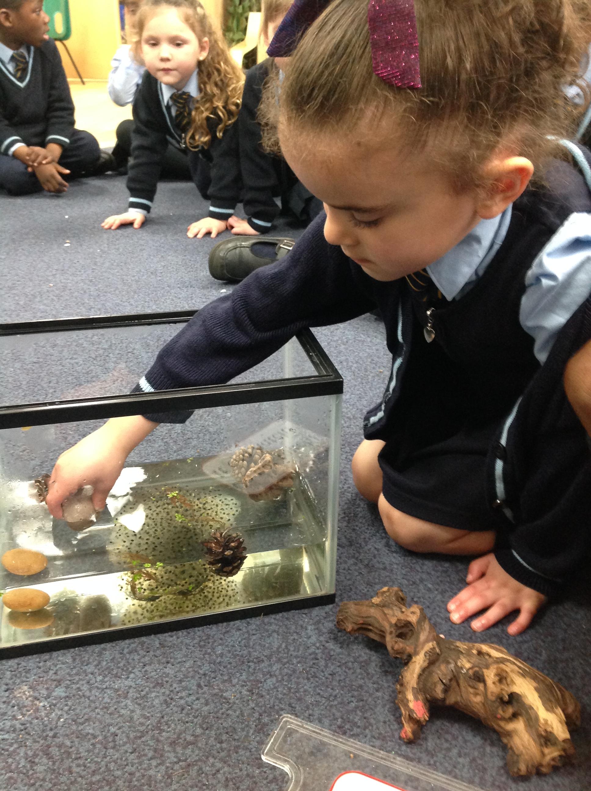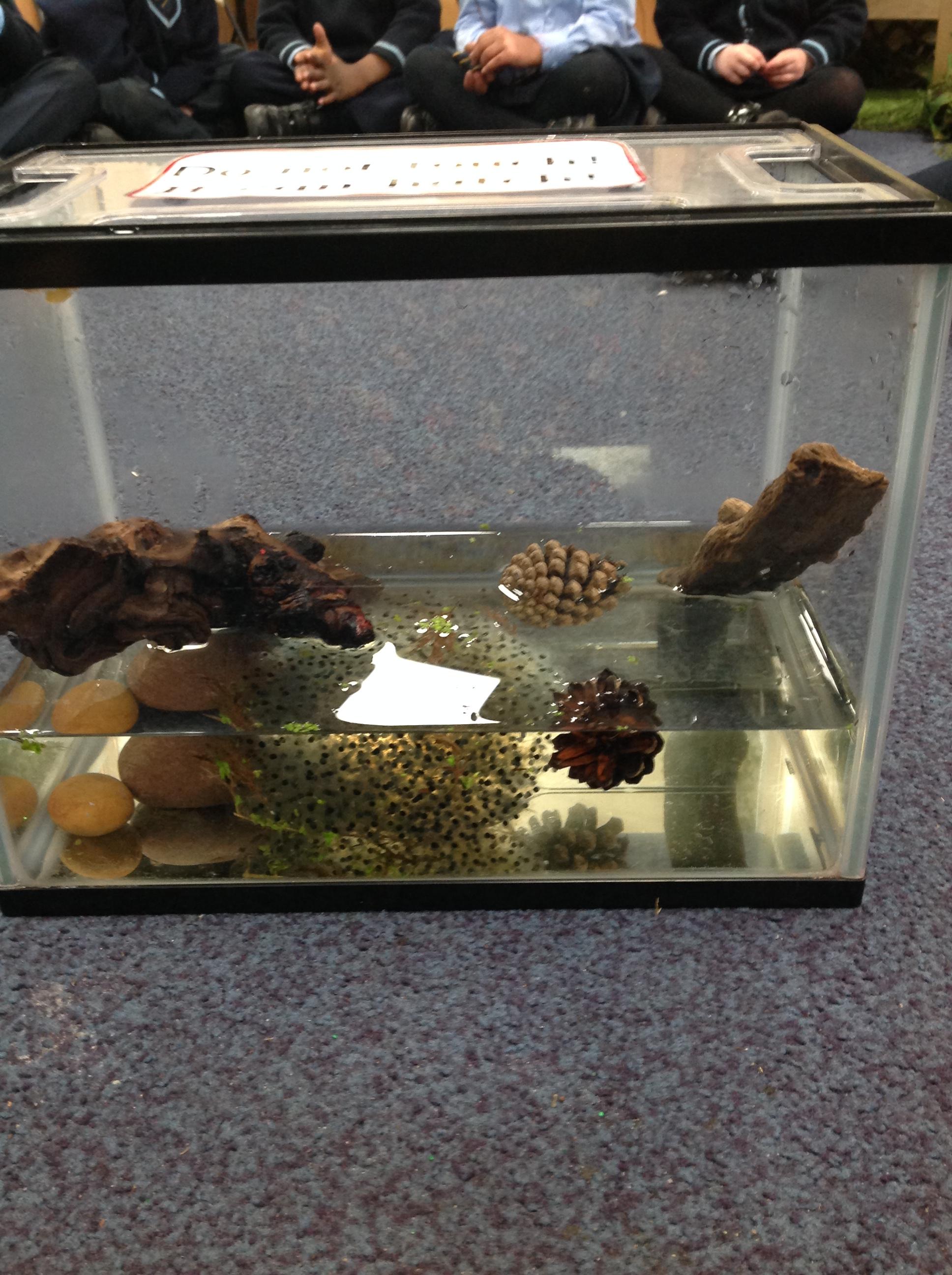We were very excited to discover the frogspawn in our classroom! We talked about the life cycle of a frog and created a habitat to help them survive.