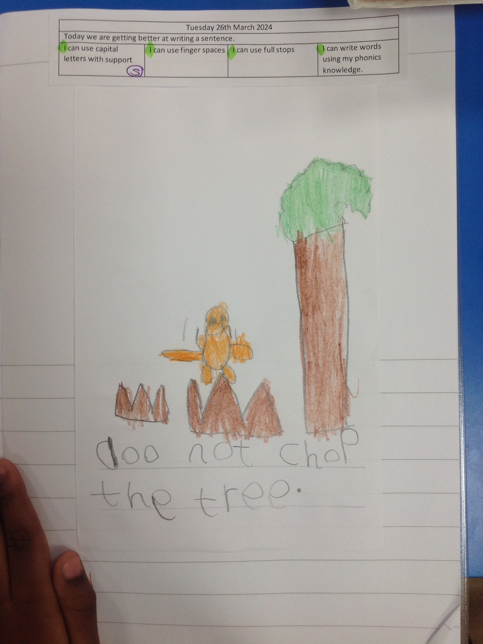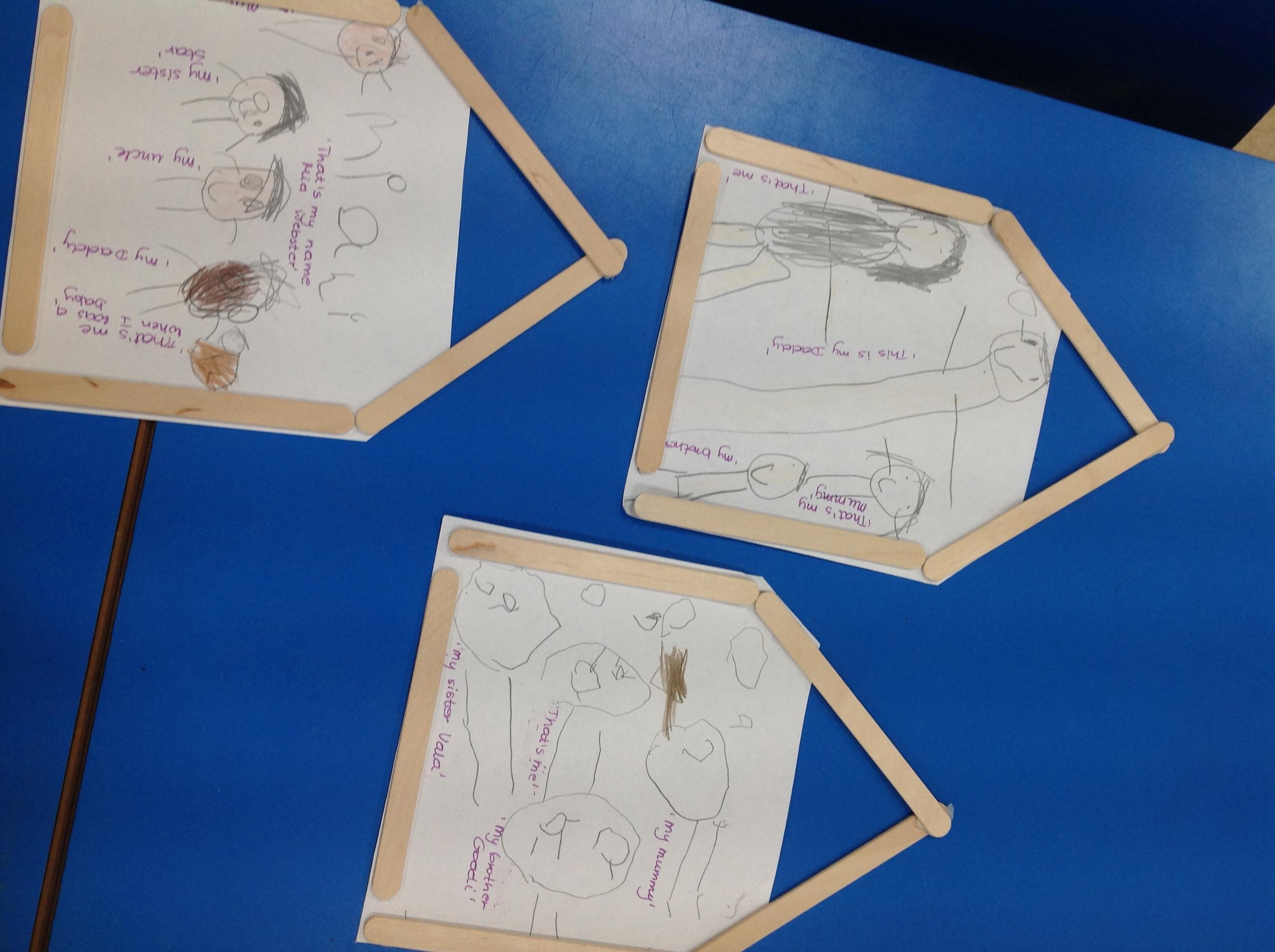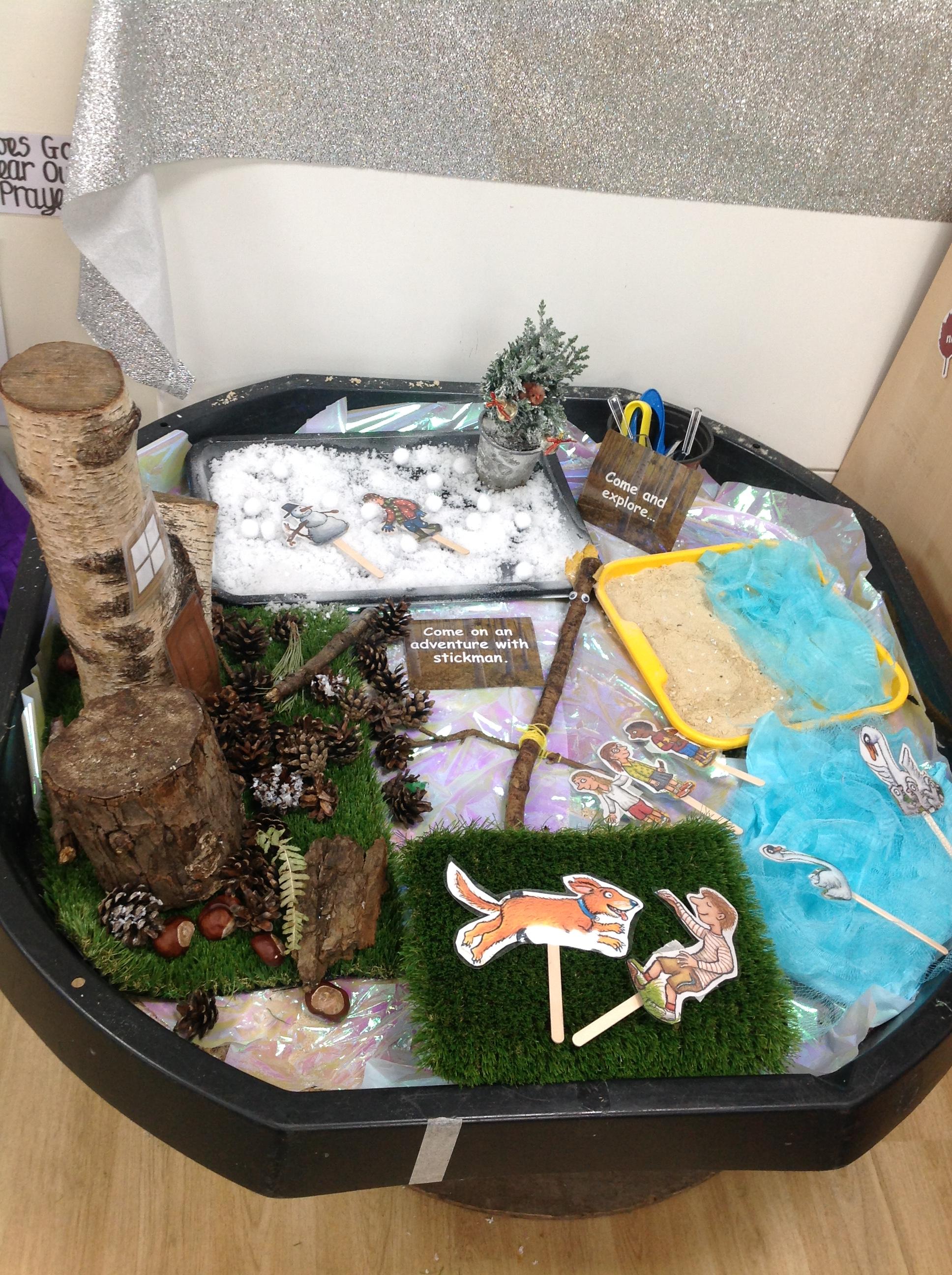 I'm Stick Man, I'm Stick Man, I'M STICK MAN, that's me...This week we have been bringing our story to life by creating the characters, acting out the story and writing signs to help the stickman find his family tree!