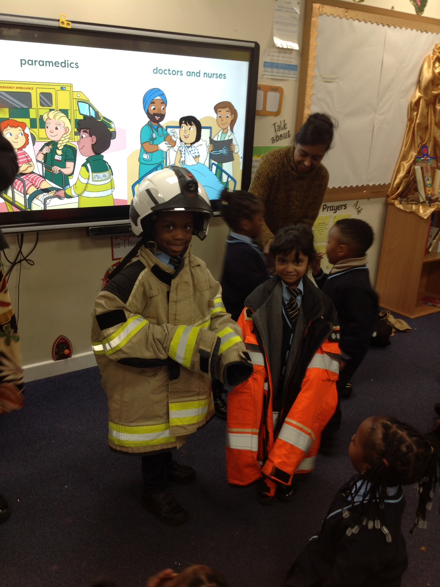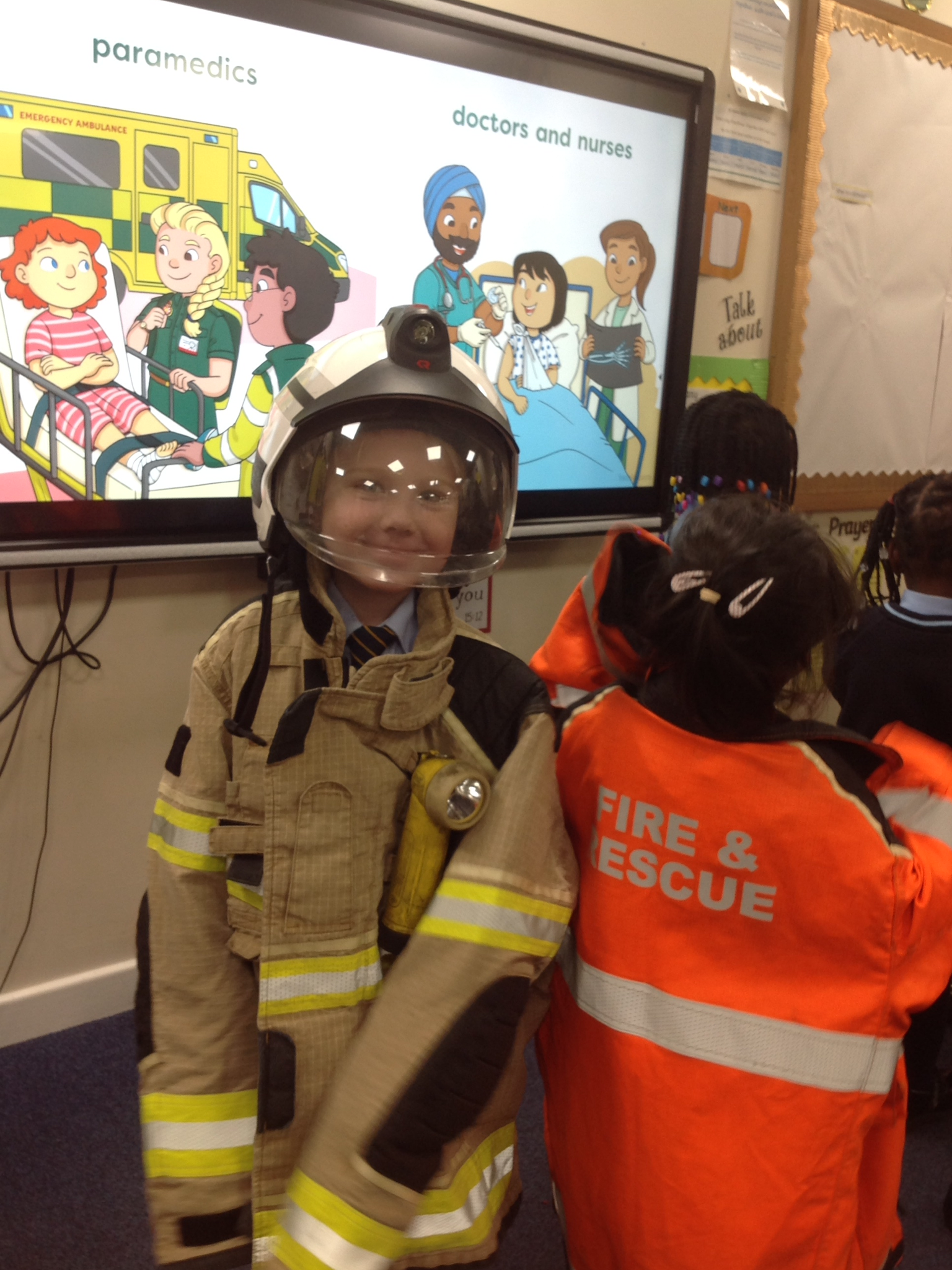 Today, we learnt about all of the other things they do to help us. We even got to try on their uniform!