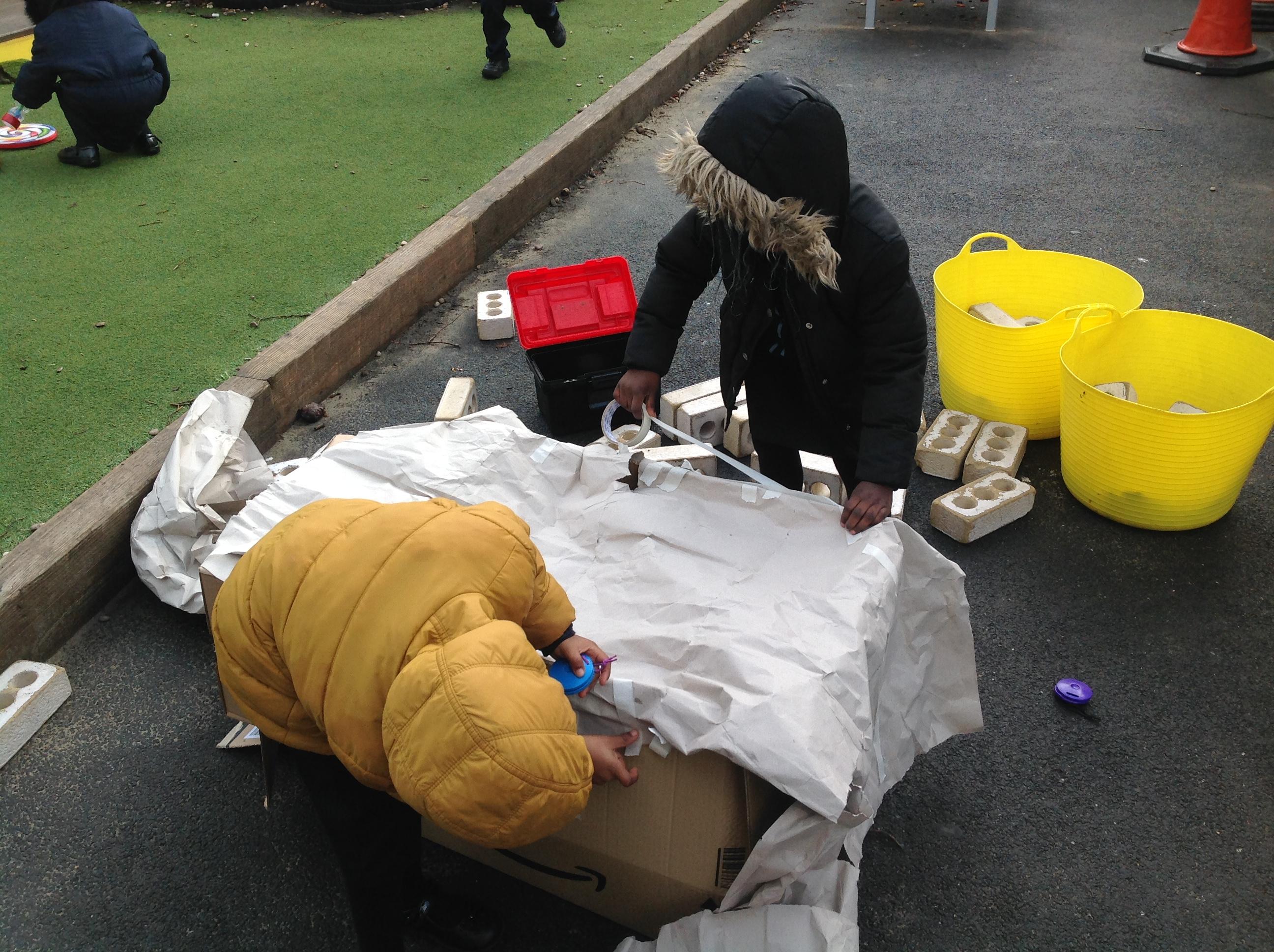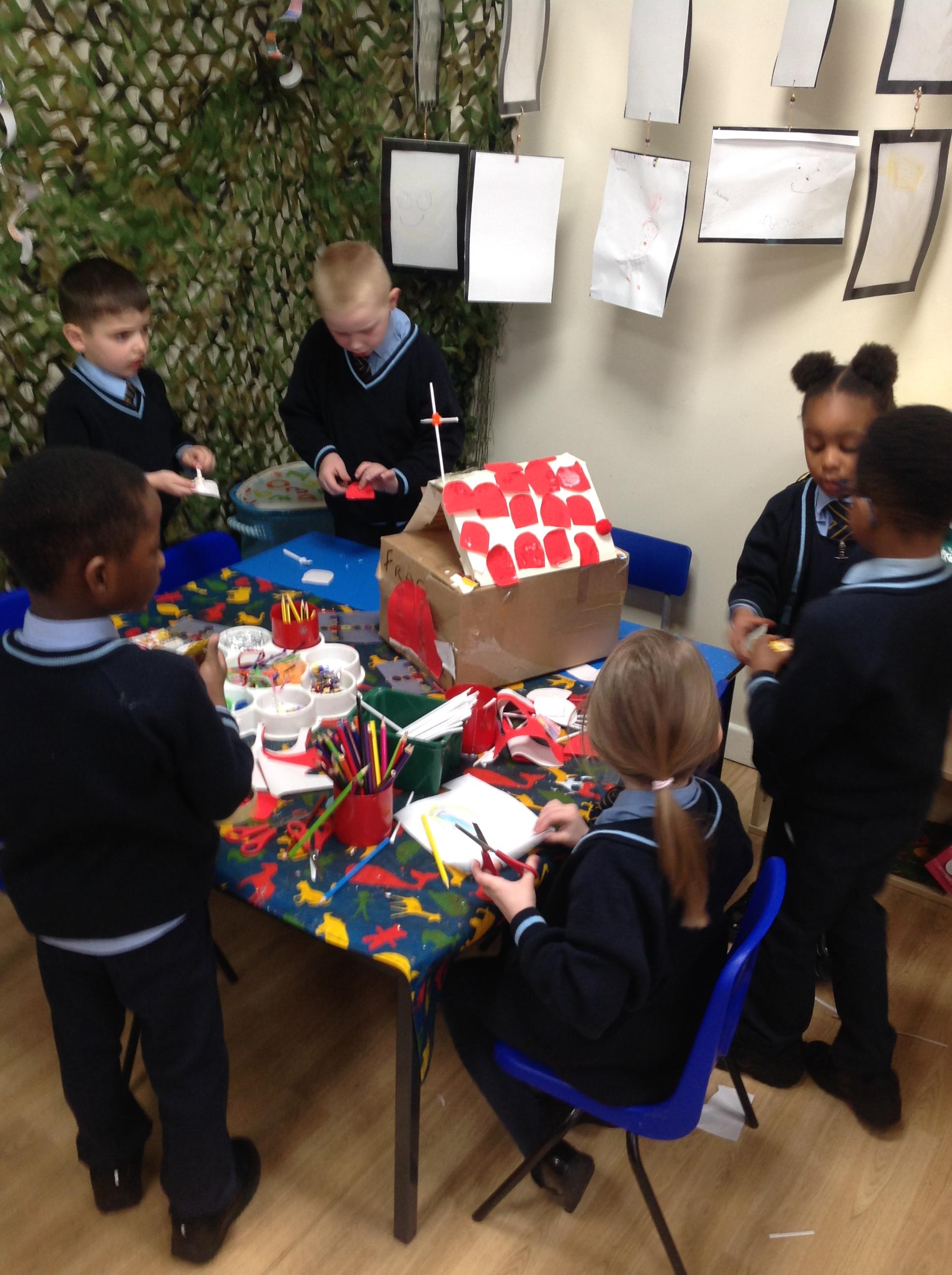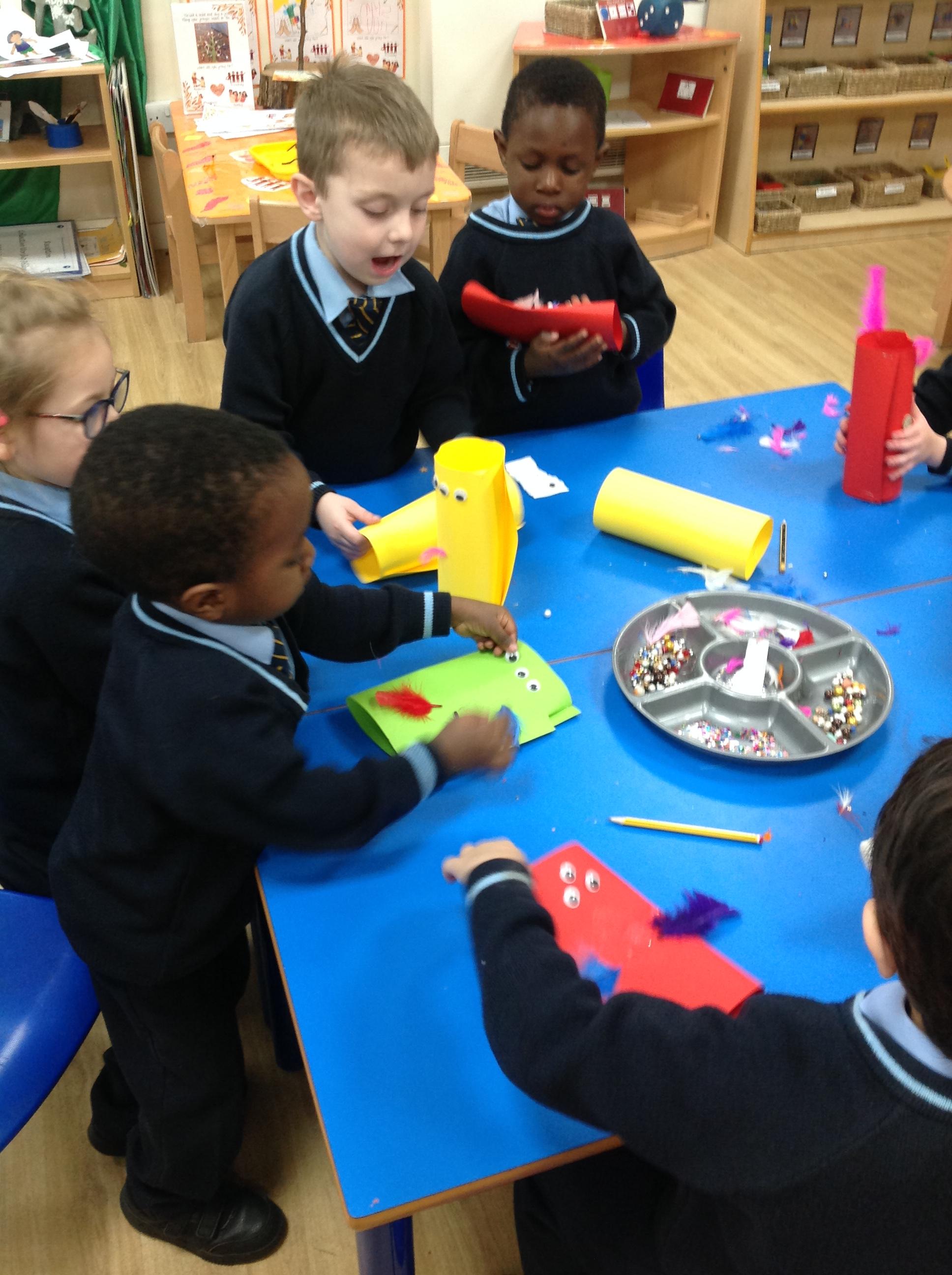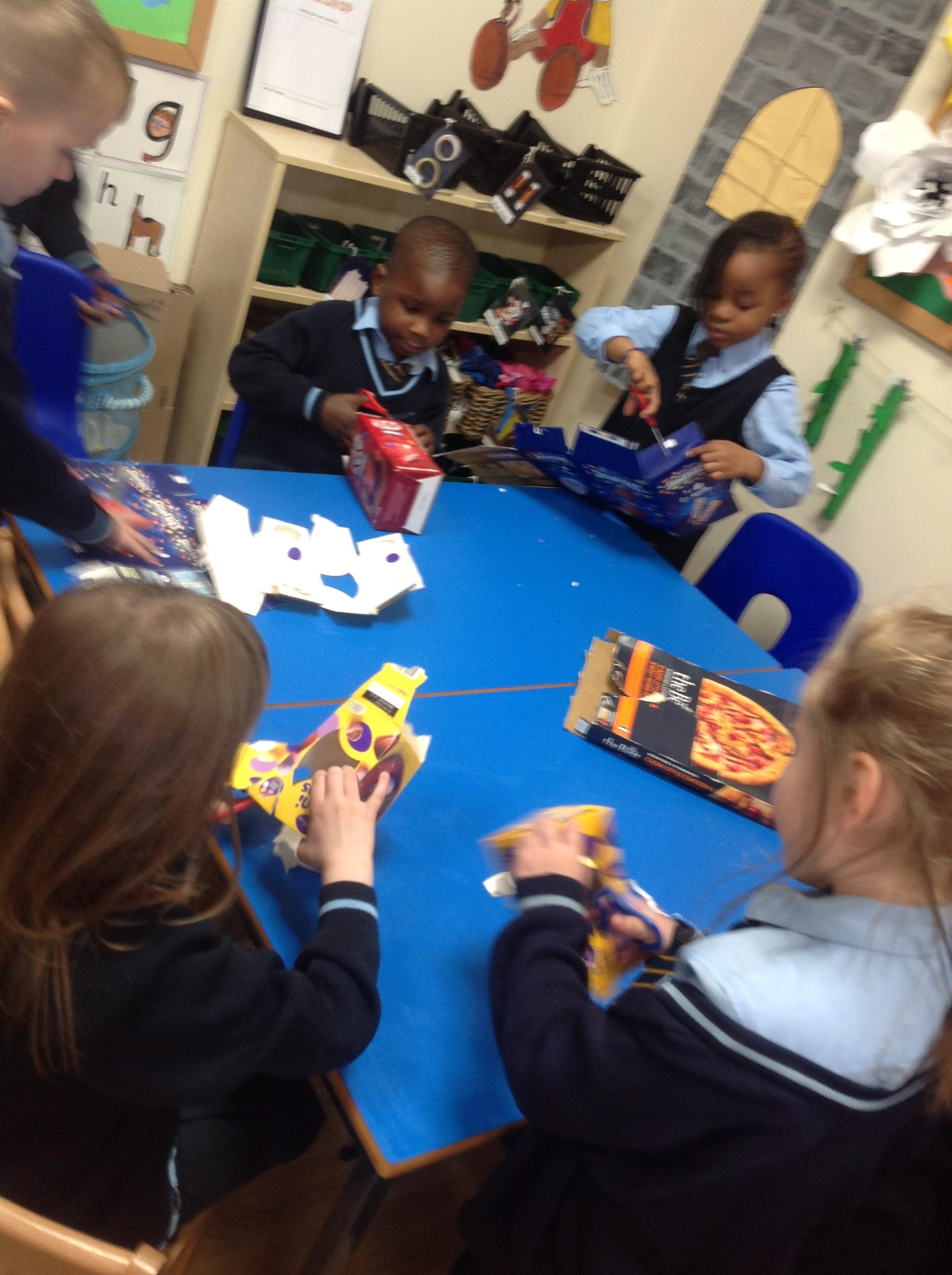 Bear Snores On - Reception children have enjoyed learning about the story Bear Snores On. Children have been acting out the story using the puppets and cardboard boxes!