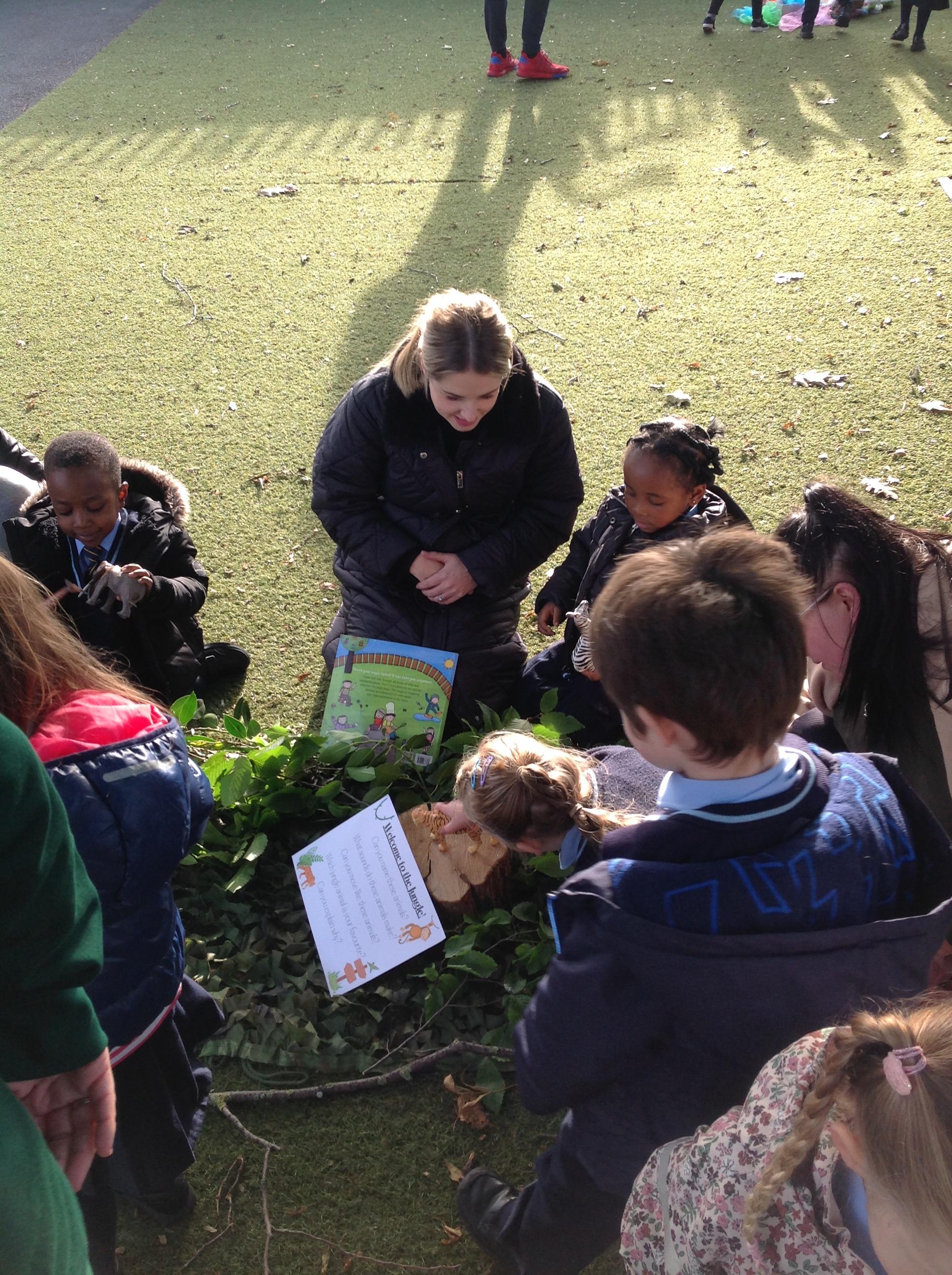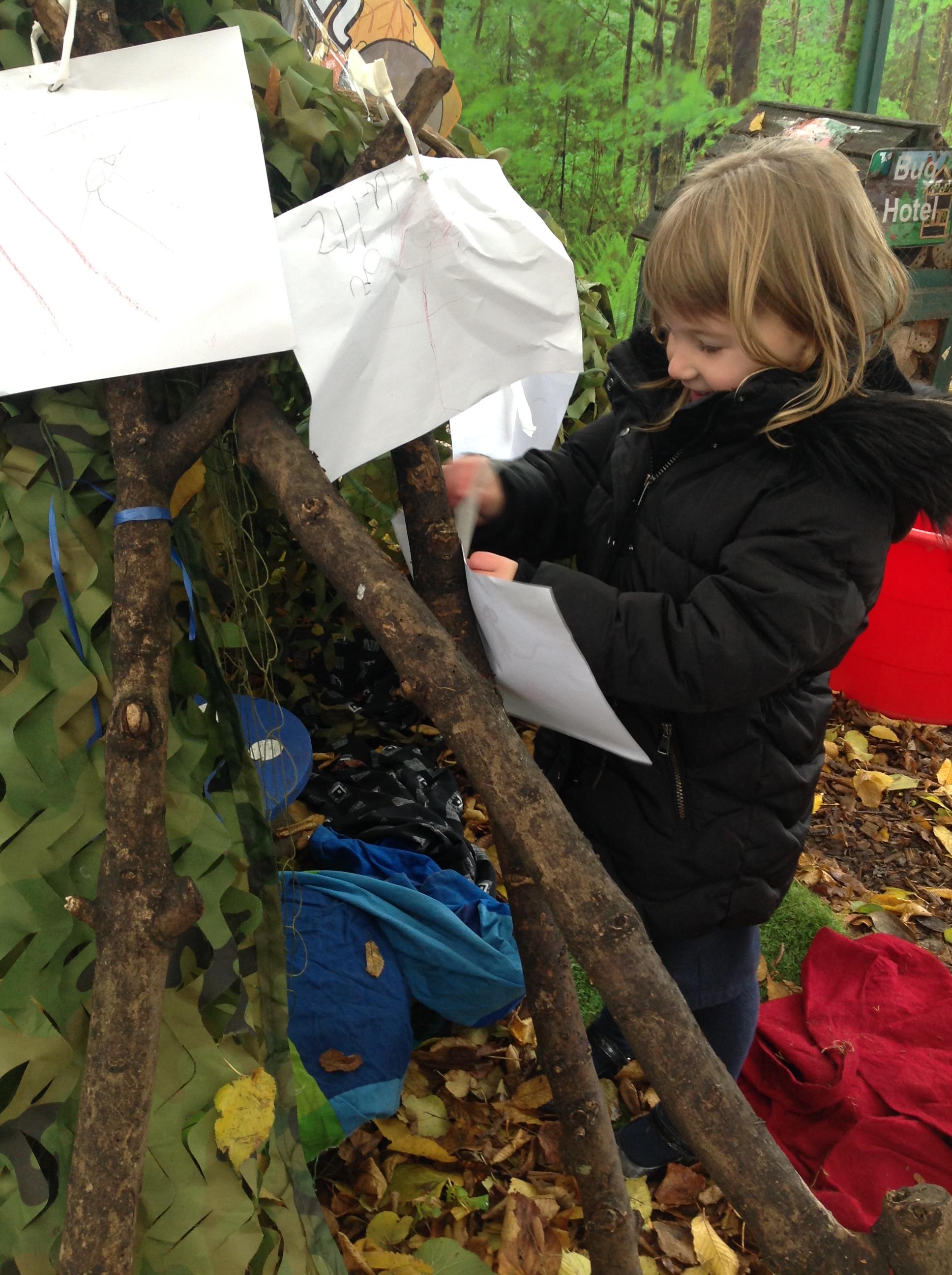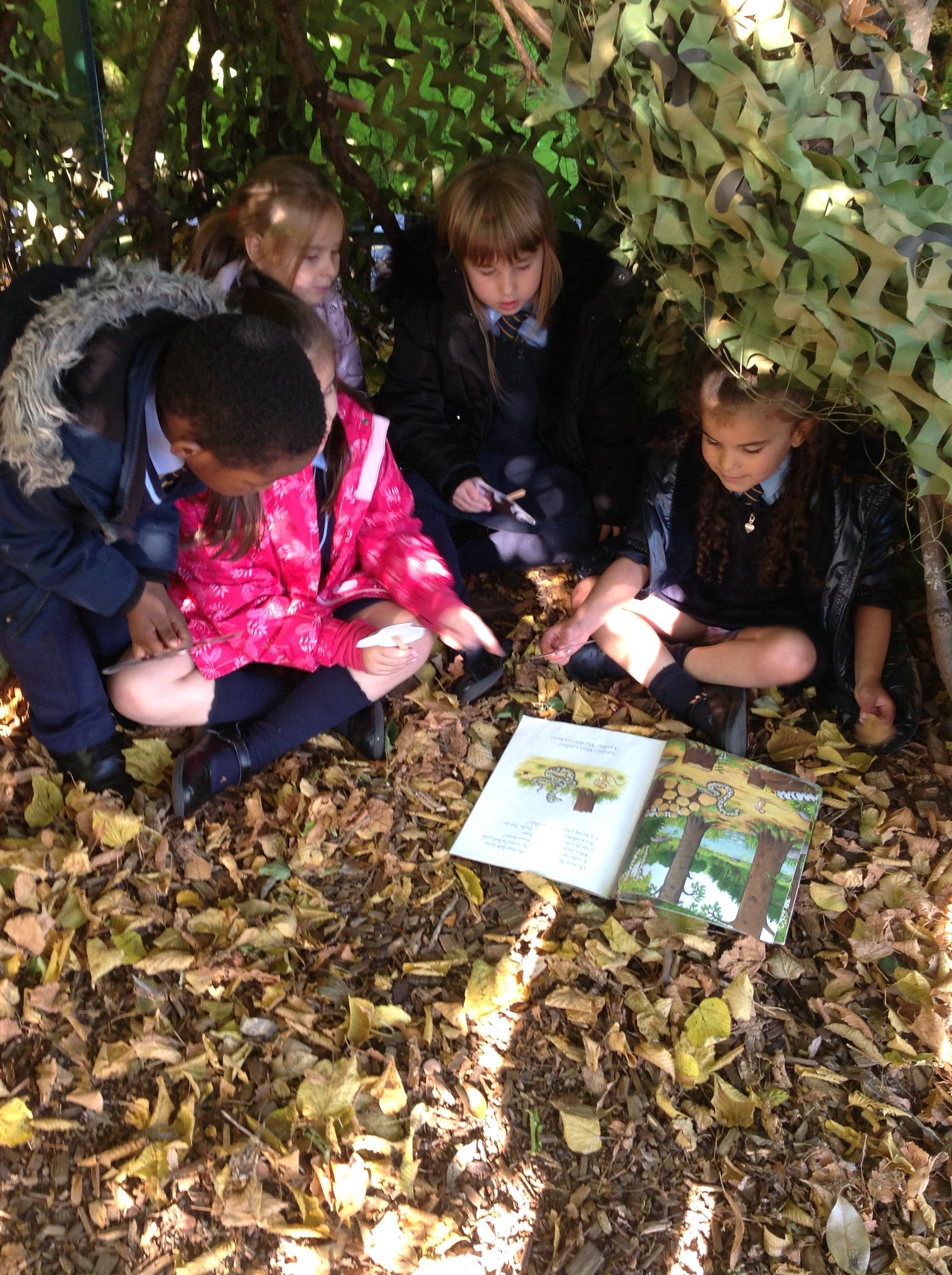 Today children have been sat in our cosy den outside reading our story The Gruffalo! Children enjoyed pointing out their favourite characters.