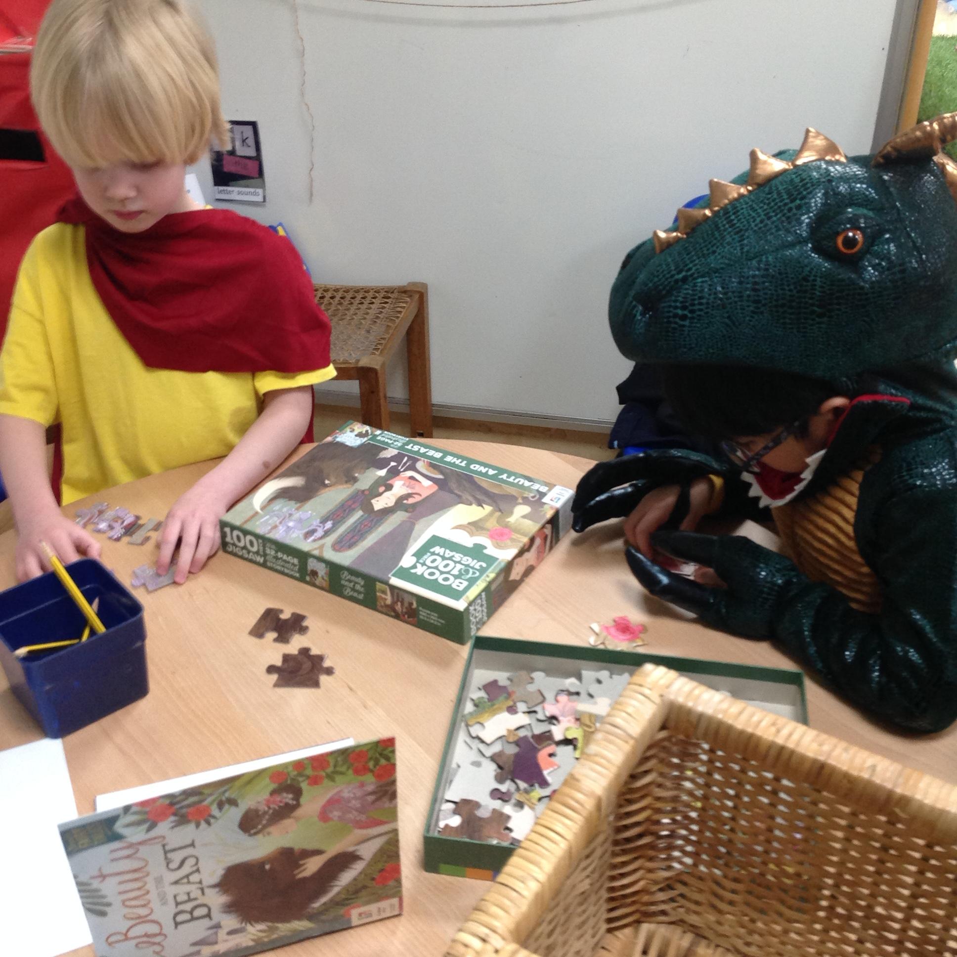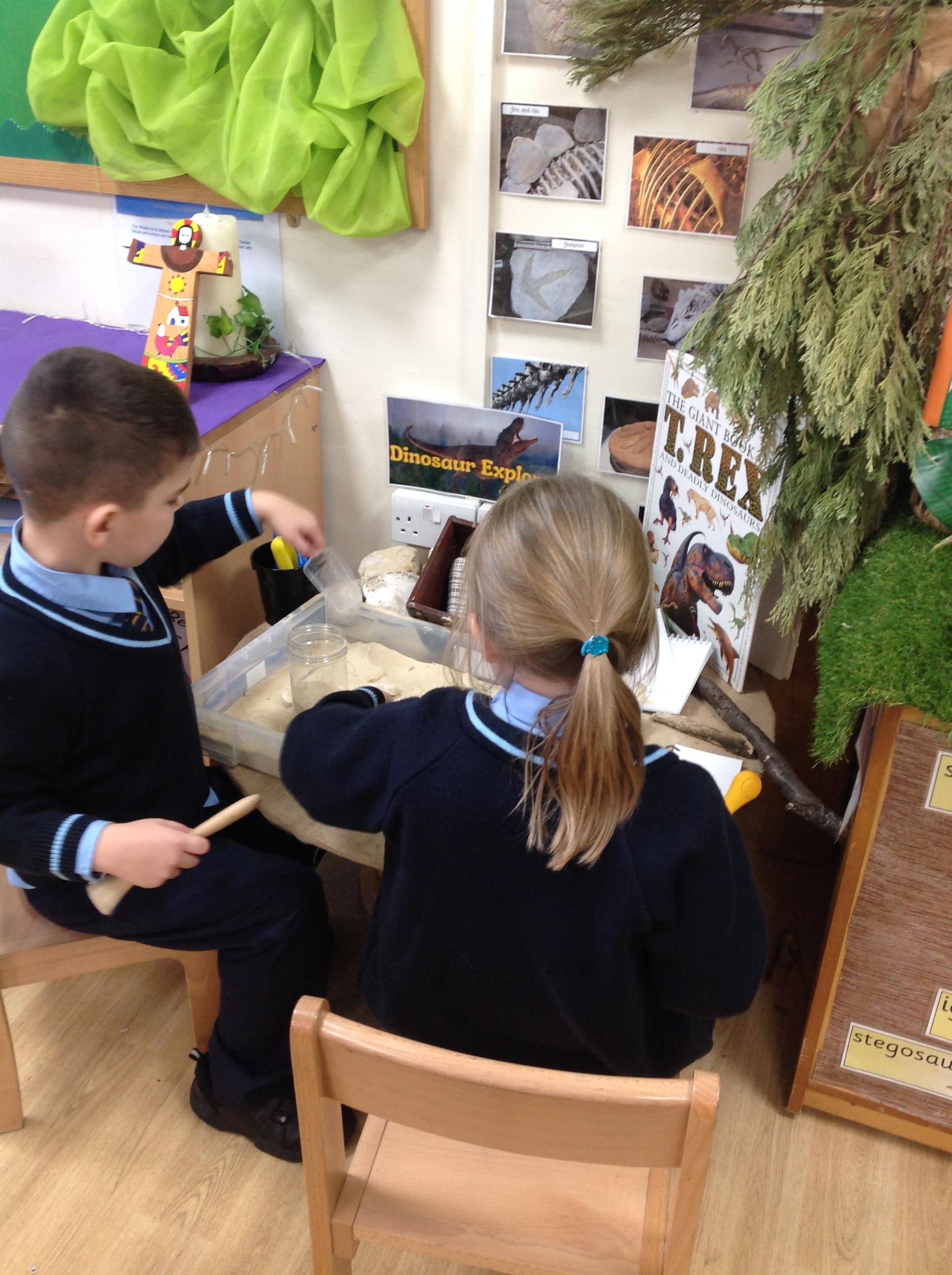 This week, we started our new topic: Chomp, Stomp, ROAR! We have been using our small world to retell stories and create our own. Inspired by our text: The Girl and the Dinosaur, some children have also become paleontologists!