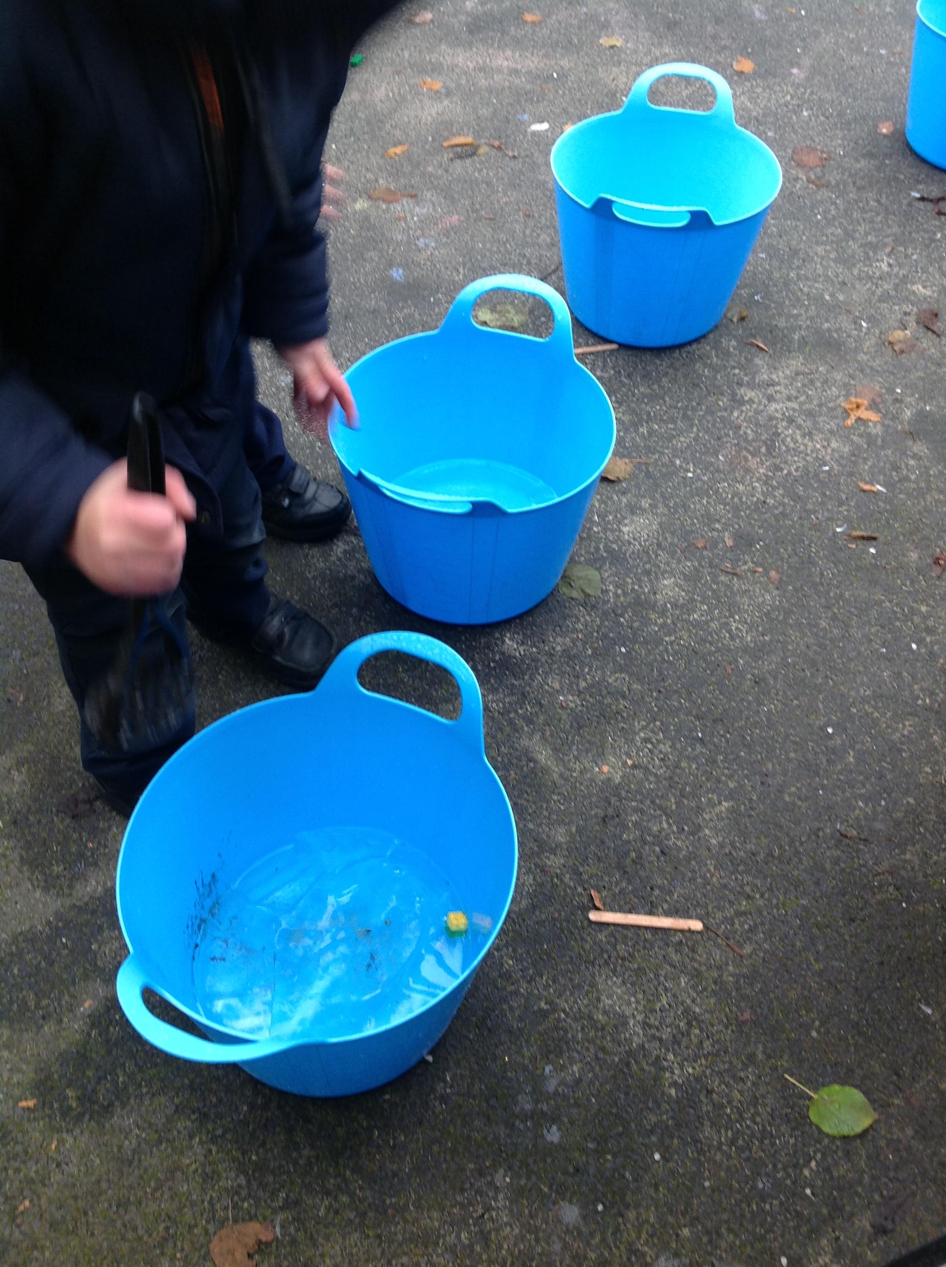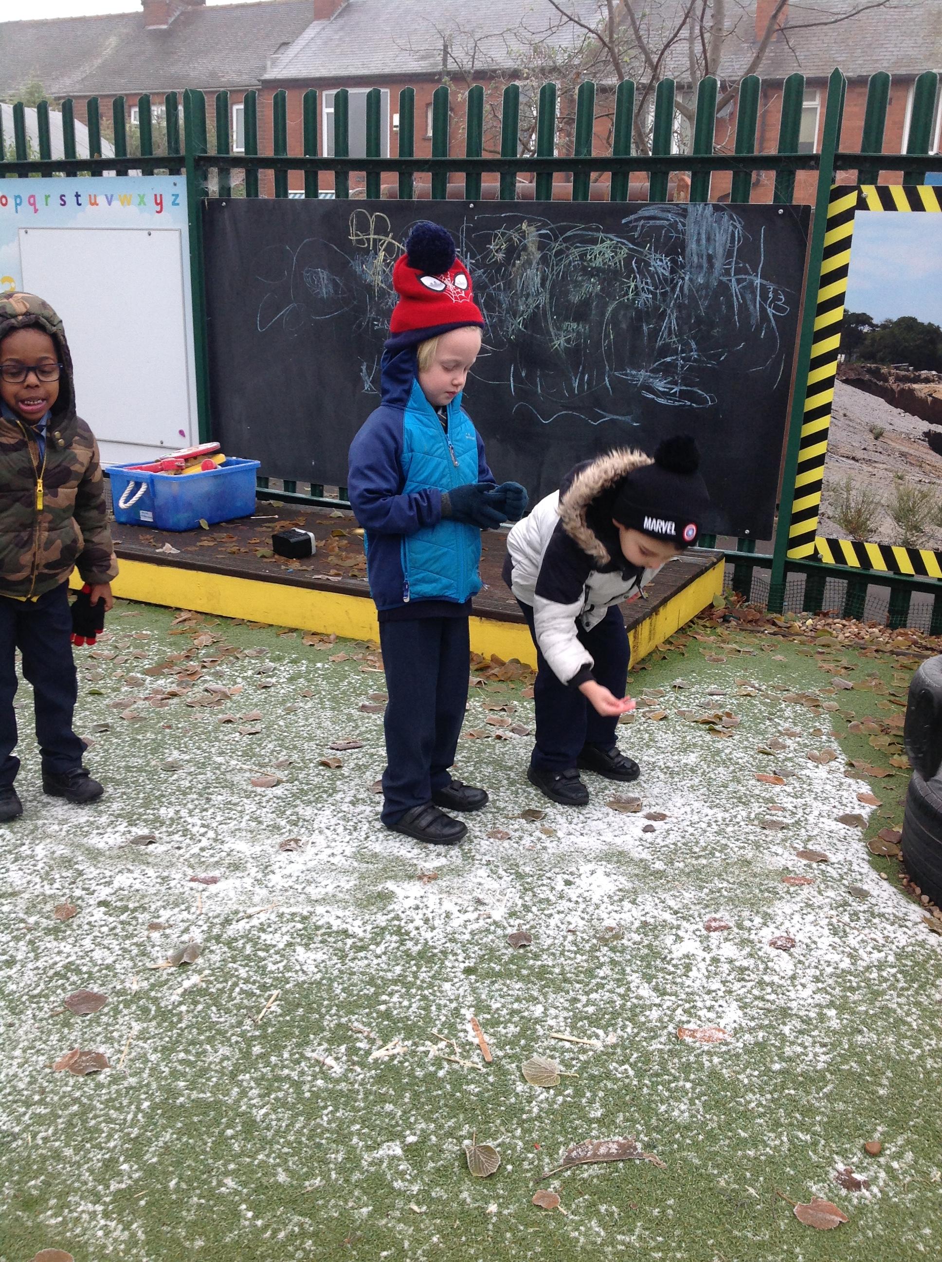 Today we explored our frozen playground. We talked about why water turns solid and how it melts. We also discovered some beautiful cobwebs which had frozen.