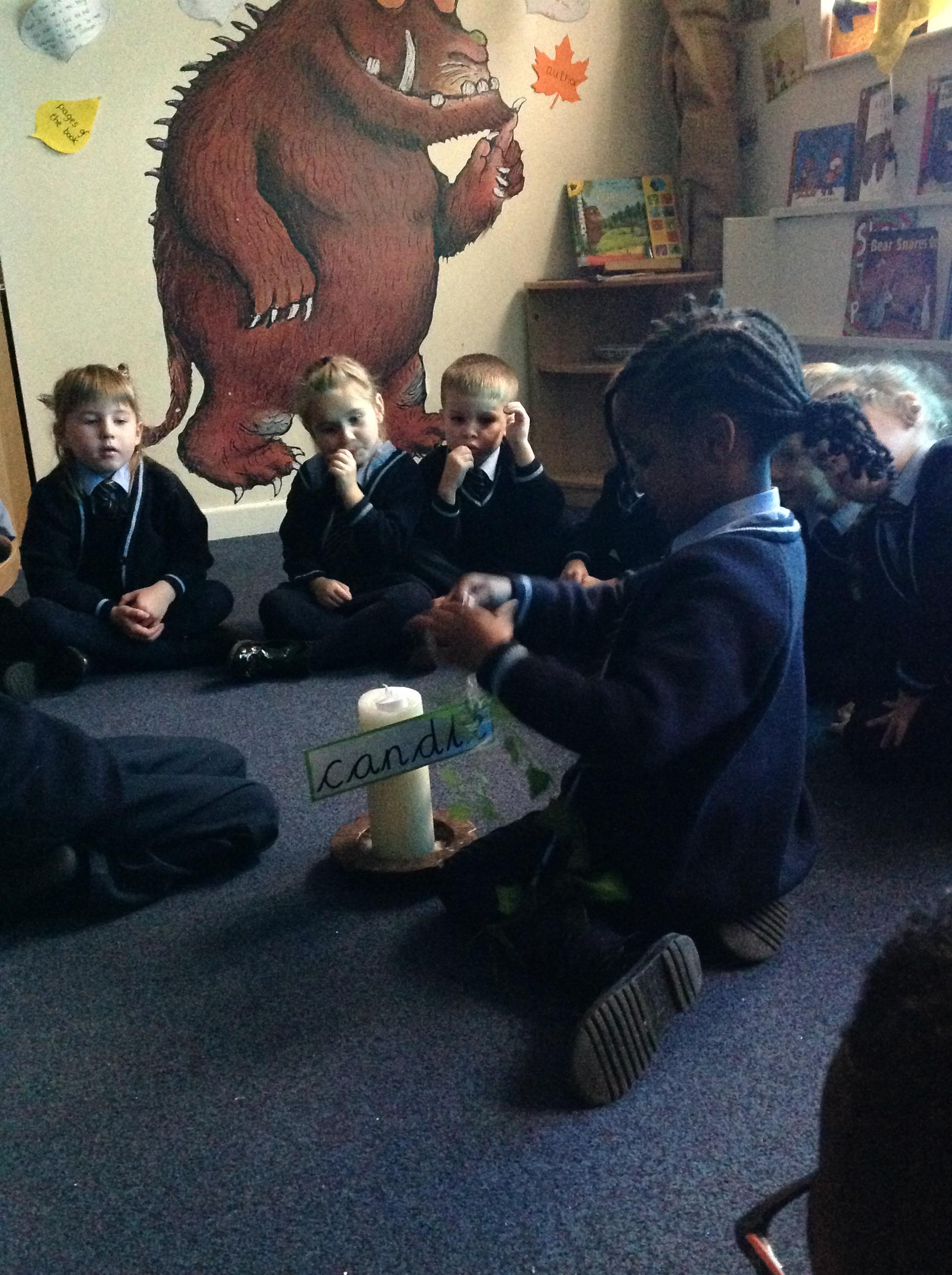 Today in RE children helped set up for our RE lesson! Children enjoyed the independence. In our lesson we talked about Hannukah and children had lots of questions. Children learnt about the oil that helped keep the menorah candles burning!
