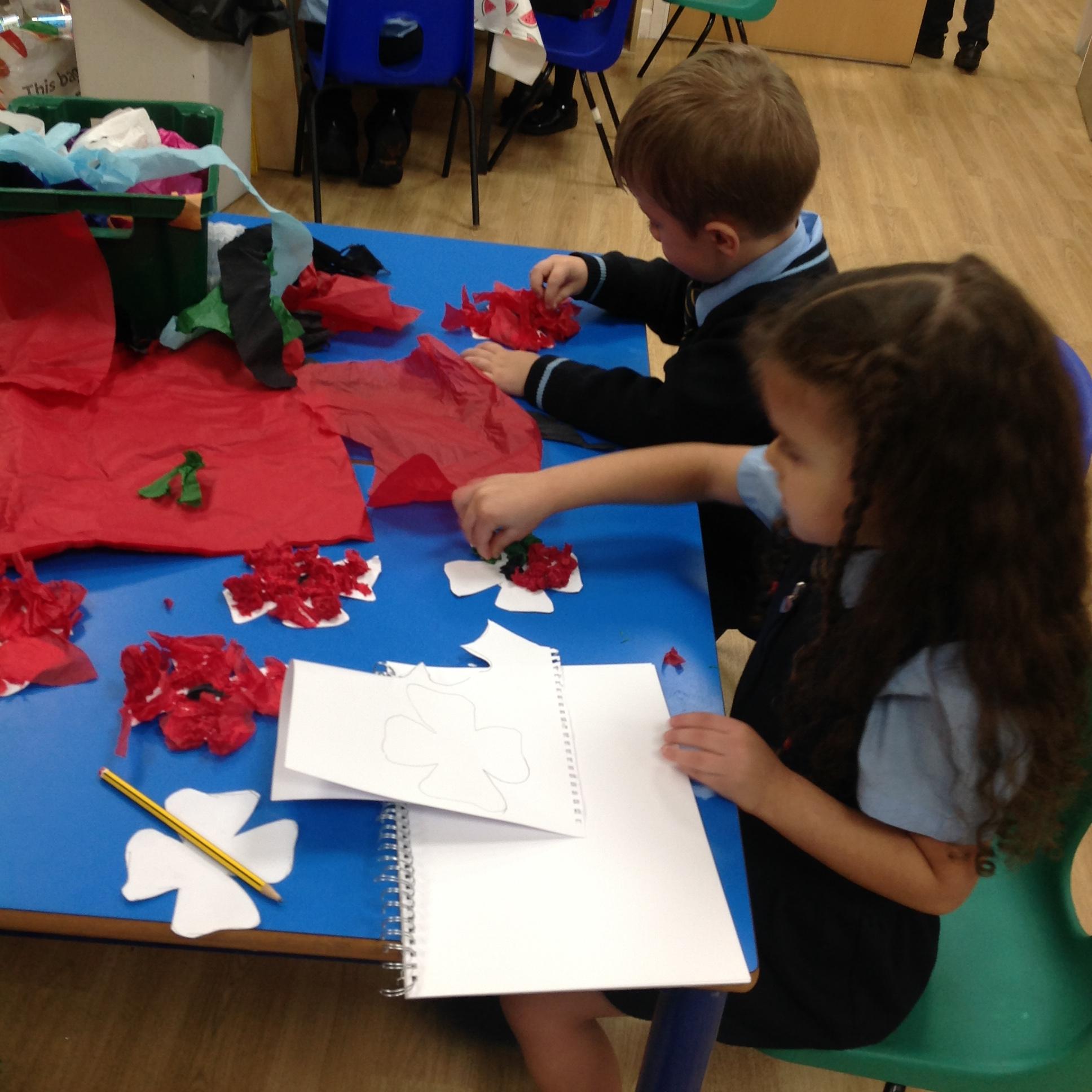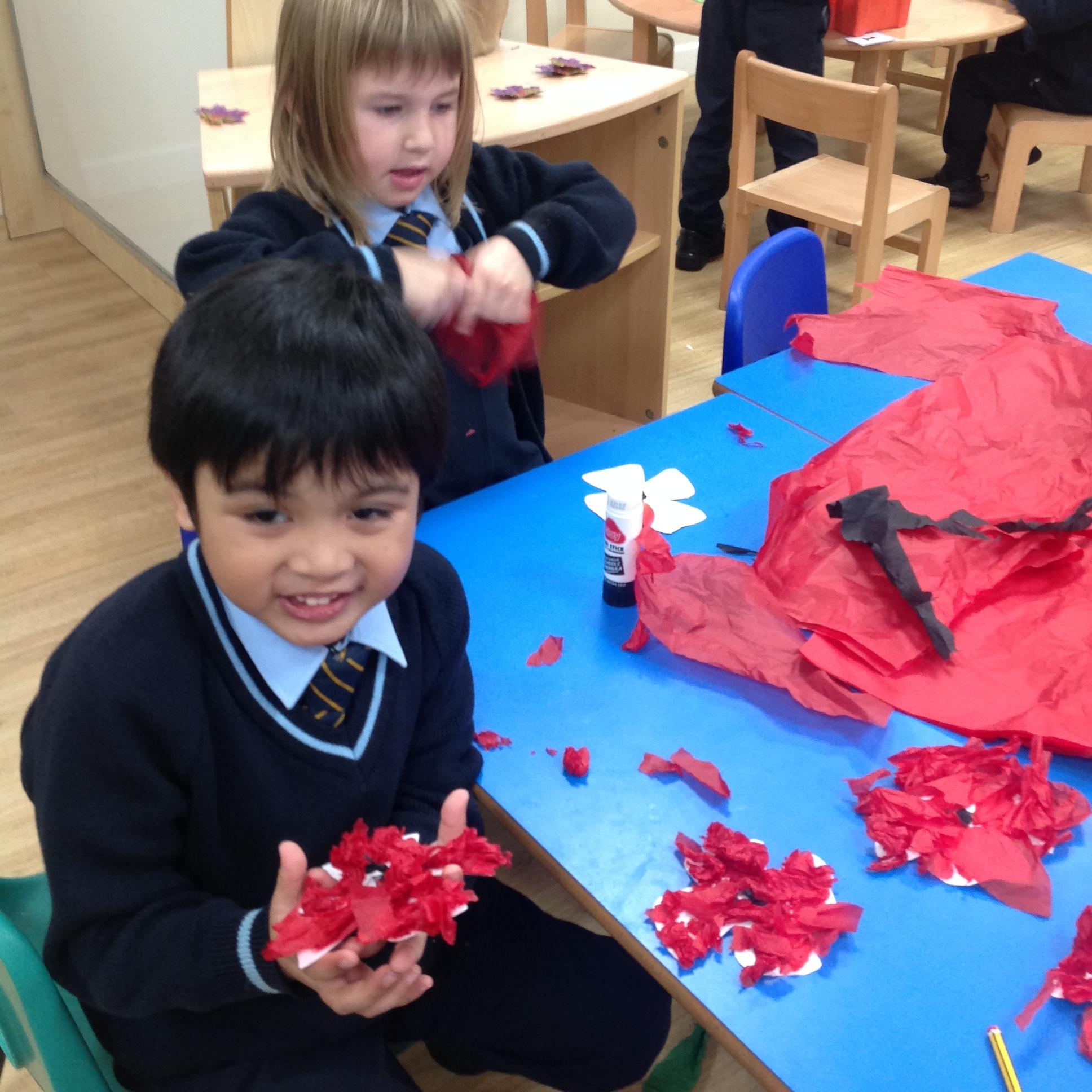 Remembrance Day - Children created their own poppies, which they held during the 2 minutes silence with the whole school! Children then made more poppies using tissues paper! Children remembered everyone who had fought for our country and were so grateful for all they had done!