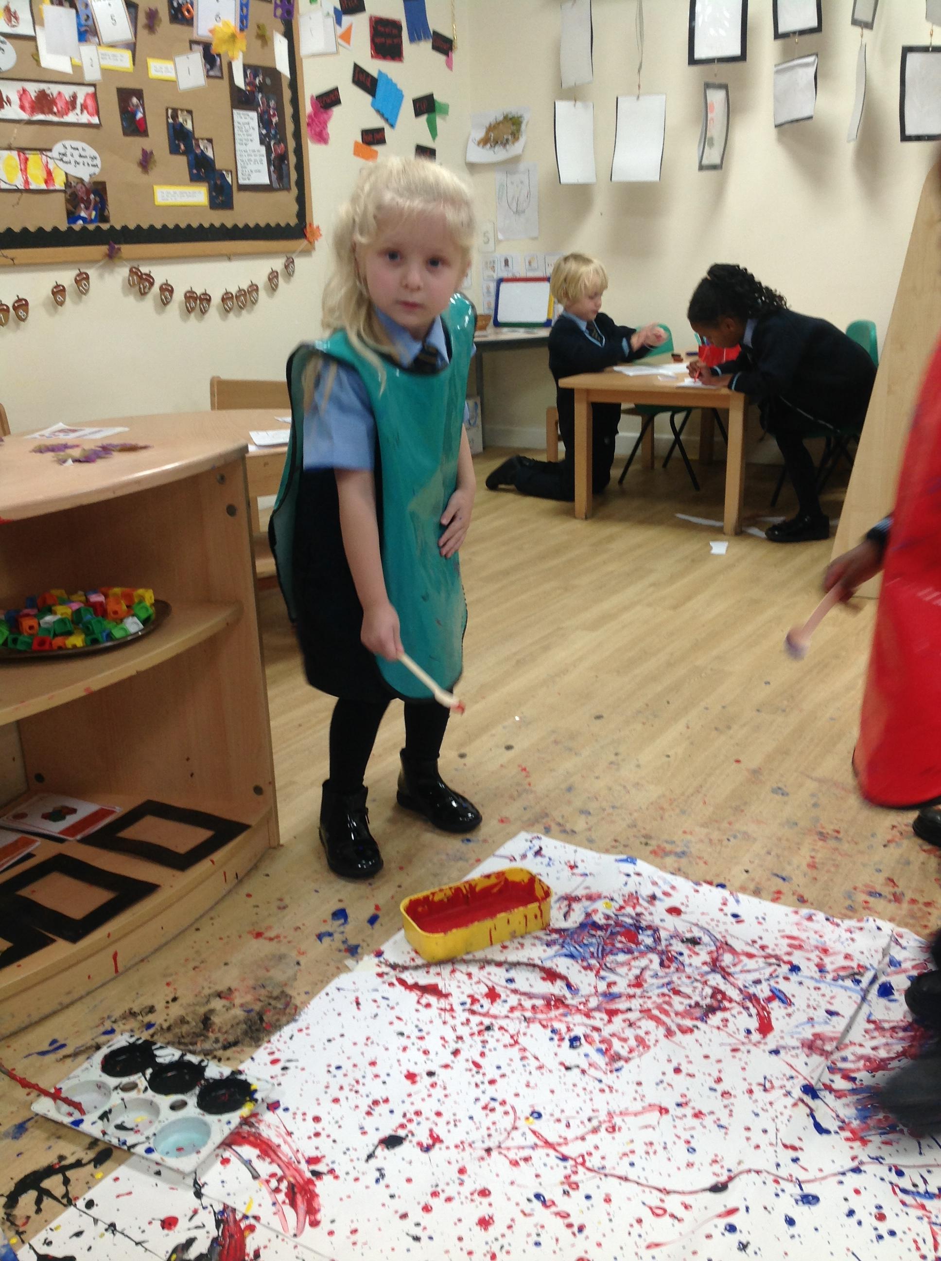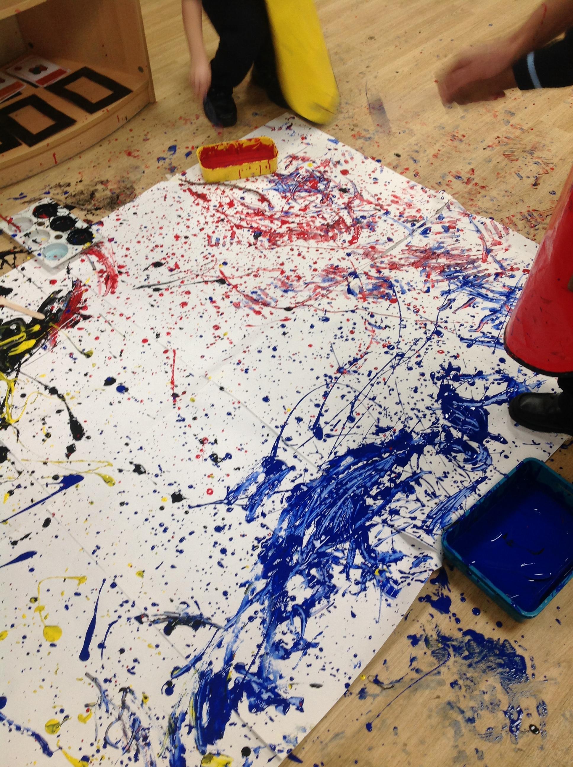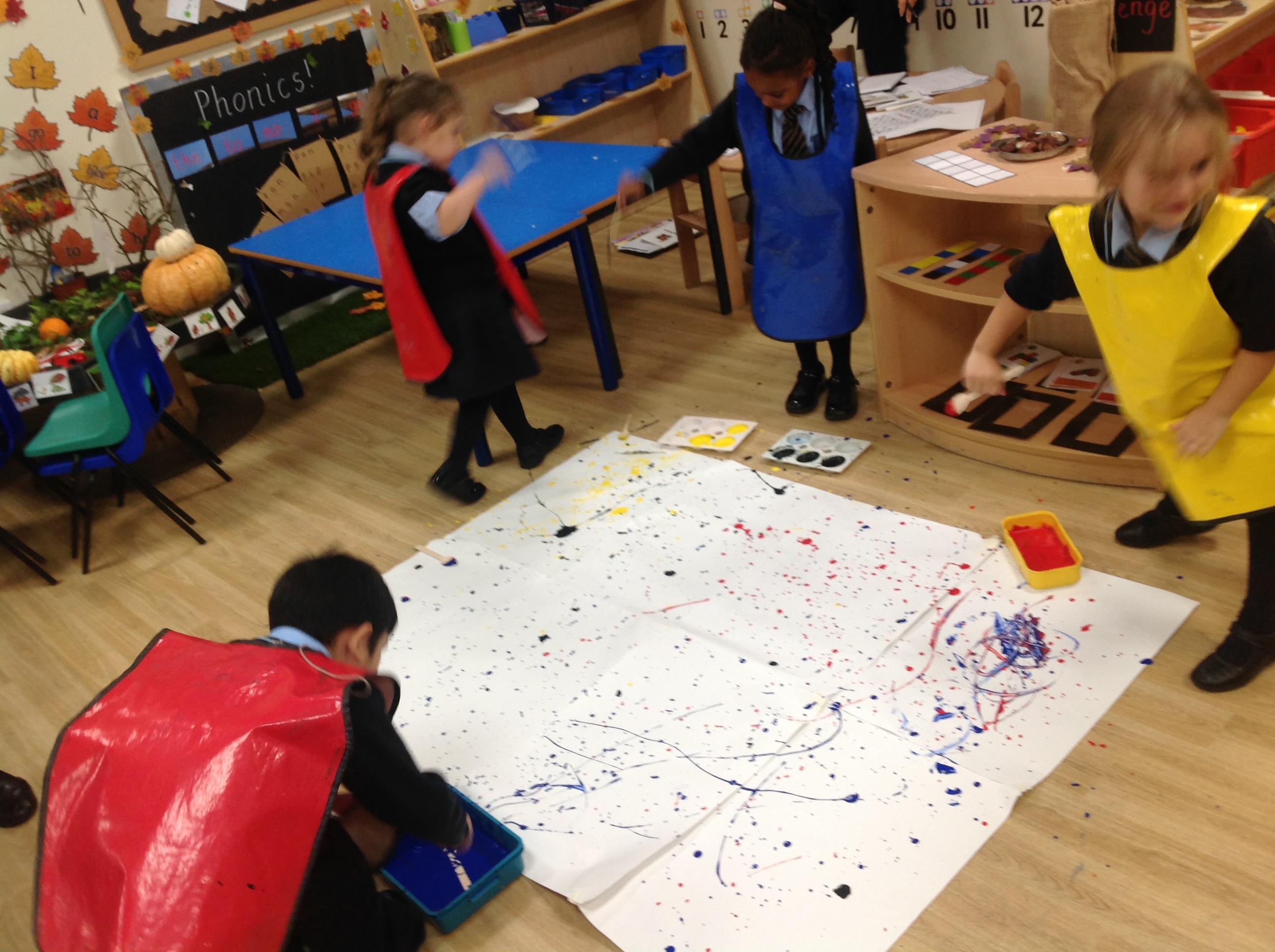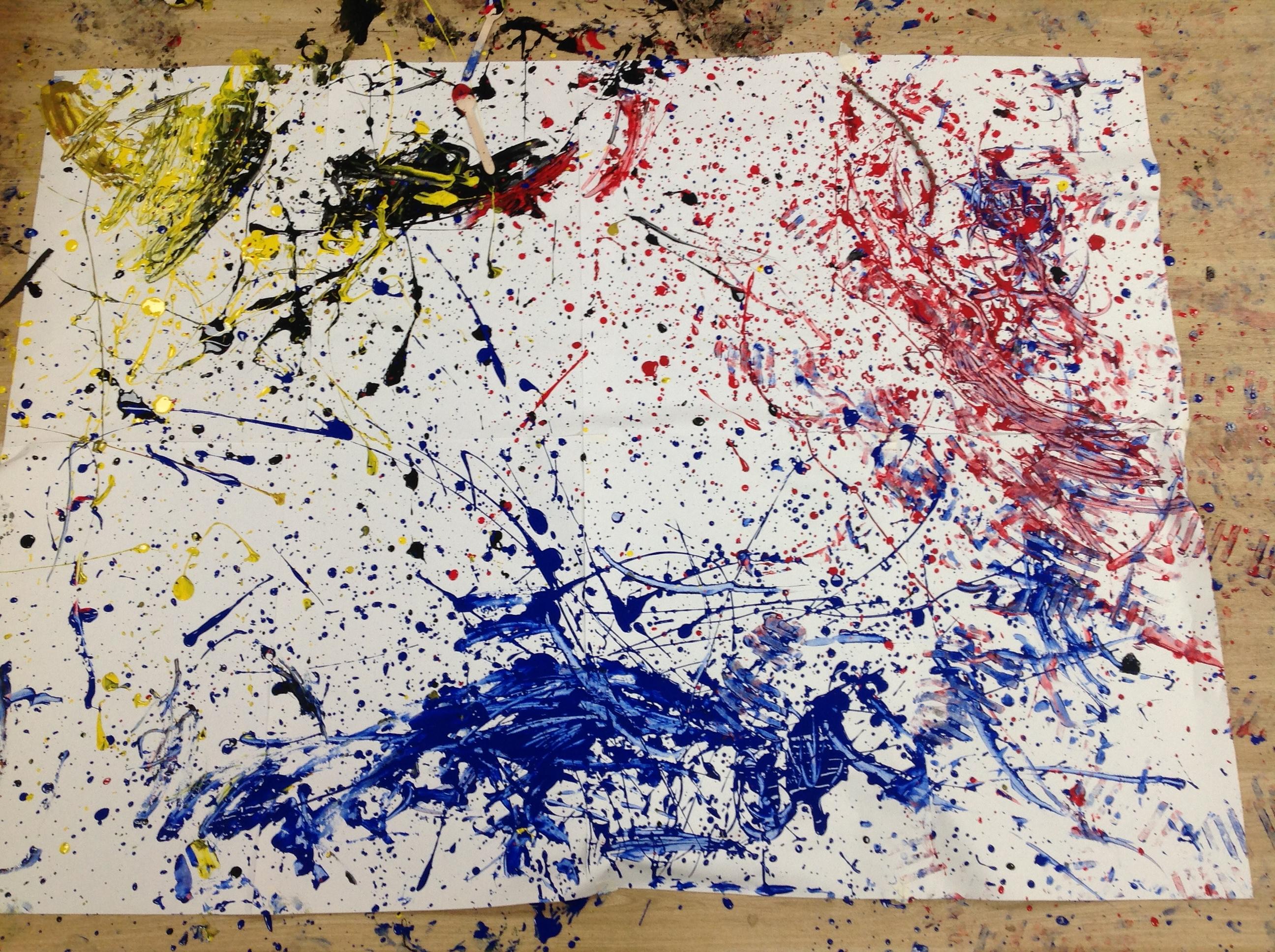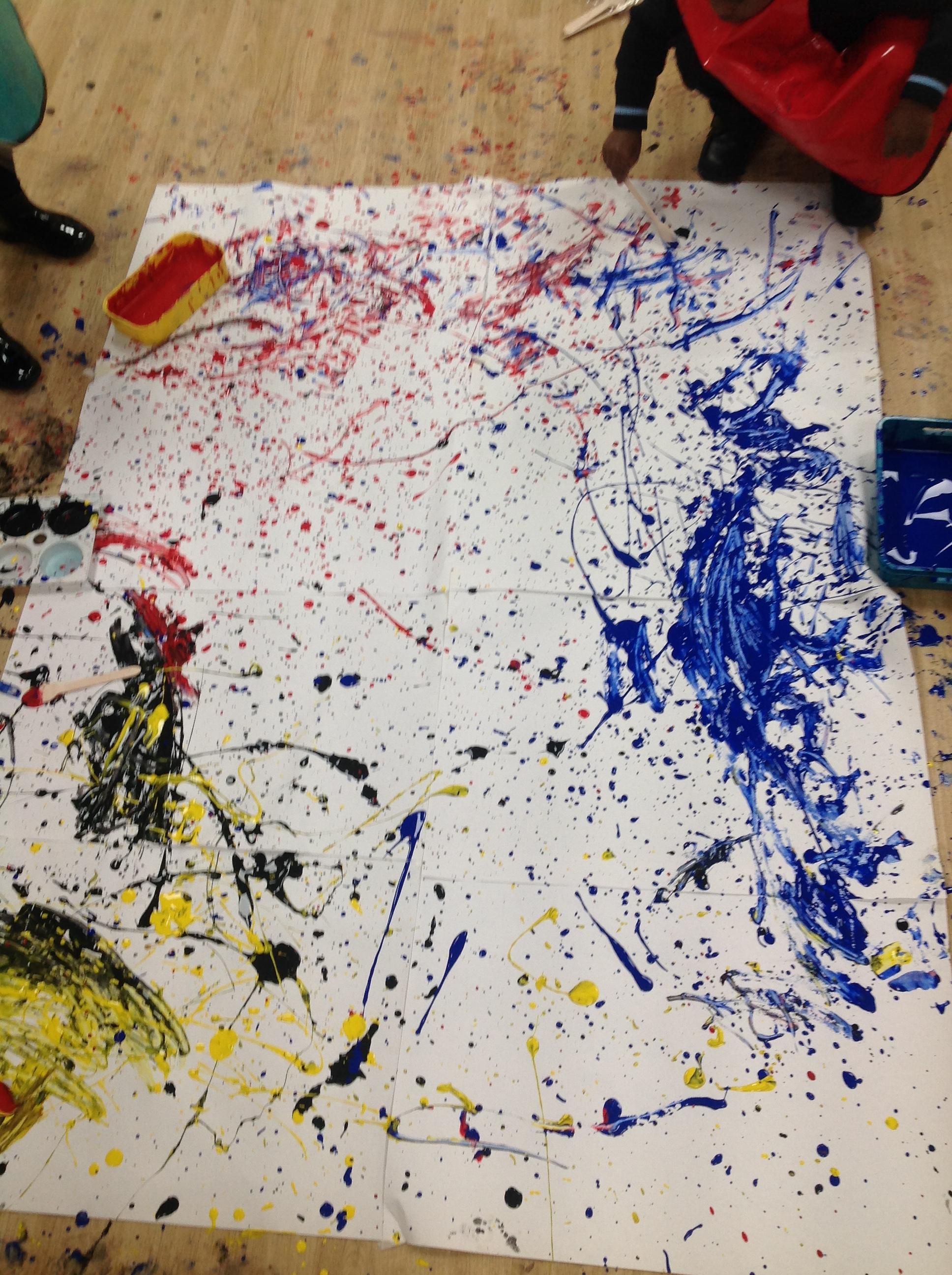 Messy Art with Jackson Pollock! Reception children have been looking at the artwork of Jackson Pollock and created their own Jackson Pollock inspired art using paint, spoons and sticks!