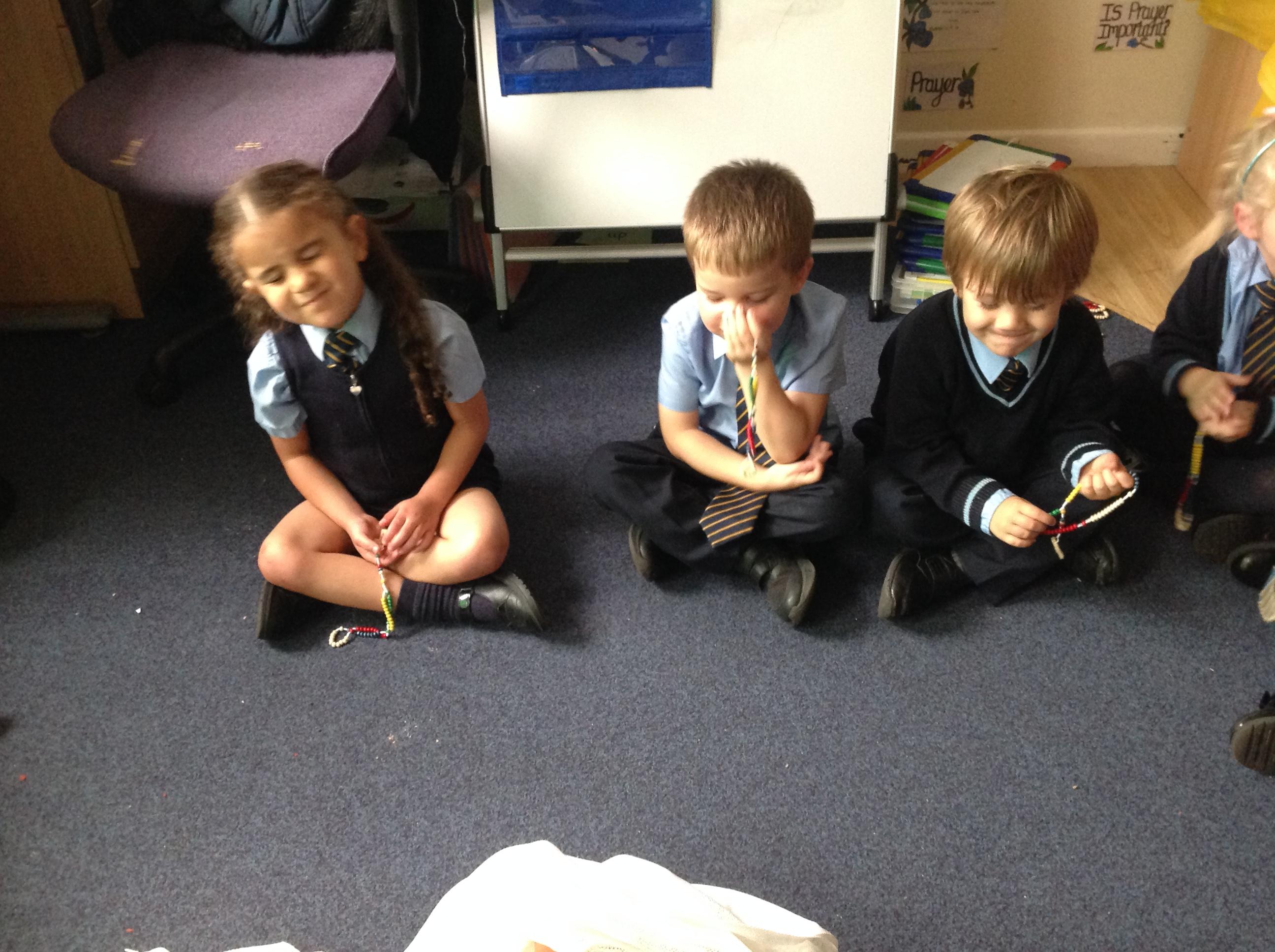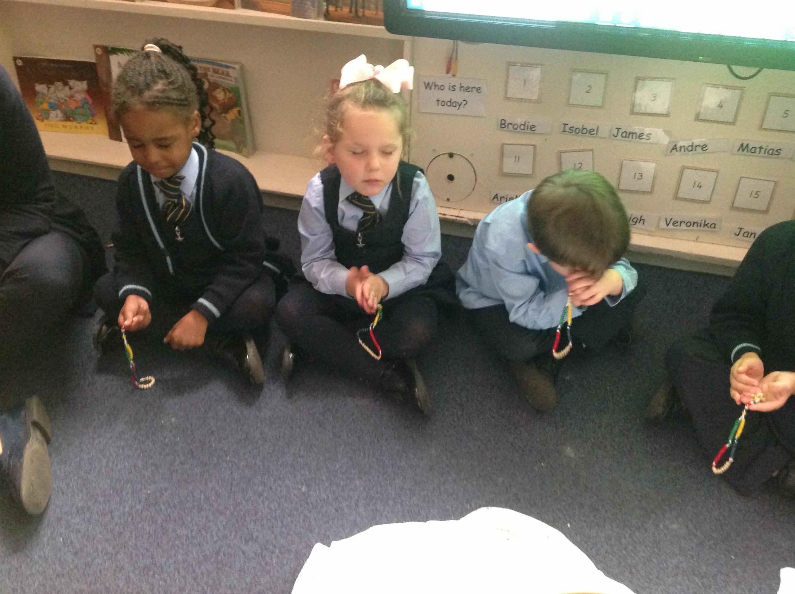 October - Month of the Rosary! During today's collective worship, children were given rosary beads to hold while they were praying. Children learnt all about rosary beads and were able to ask questions!