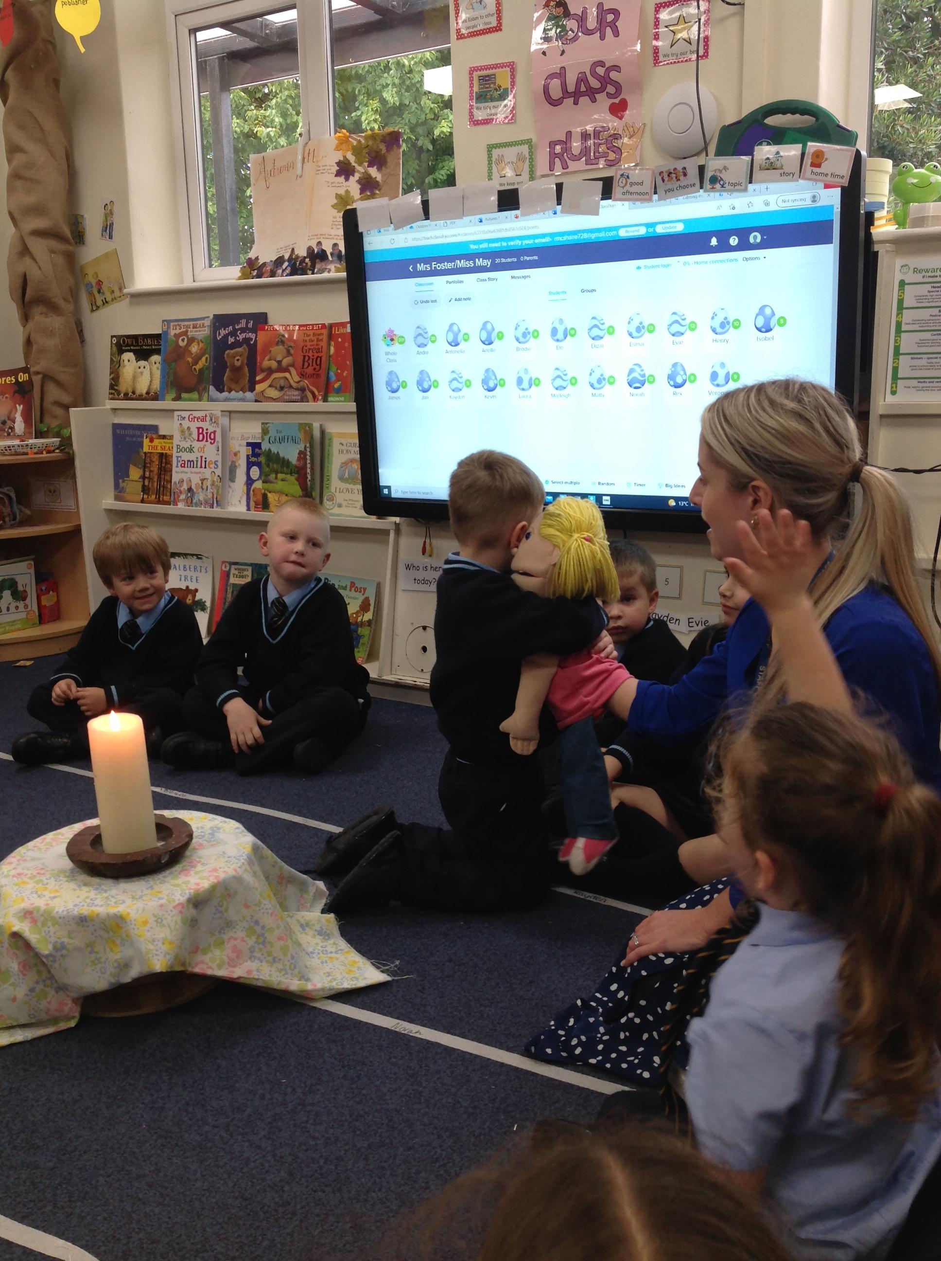 Welcome - In RE reception have been talking about how we would welcome someone new into our class. Our children loved meeting our new friend and giving them lots of hugs!