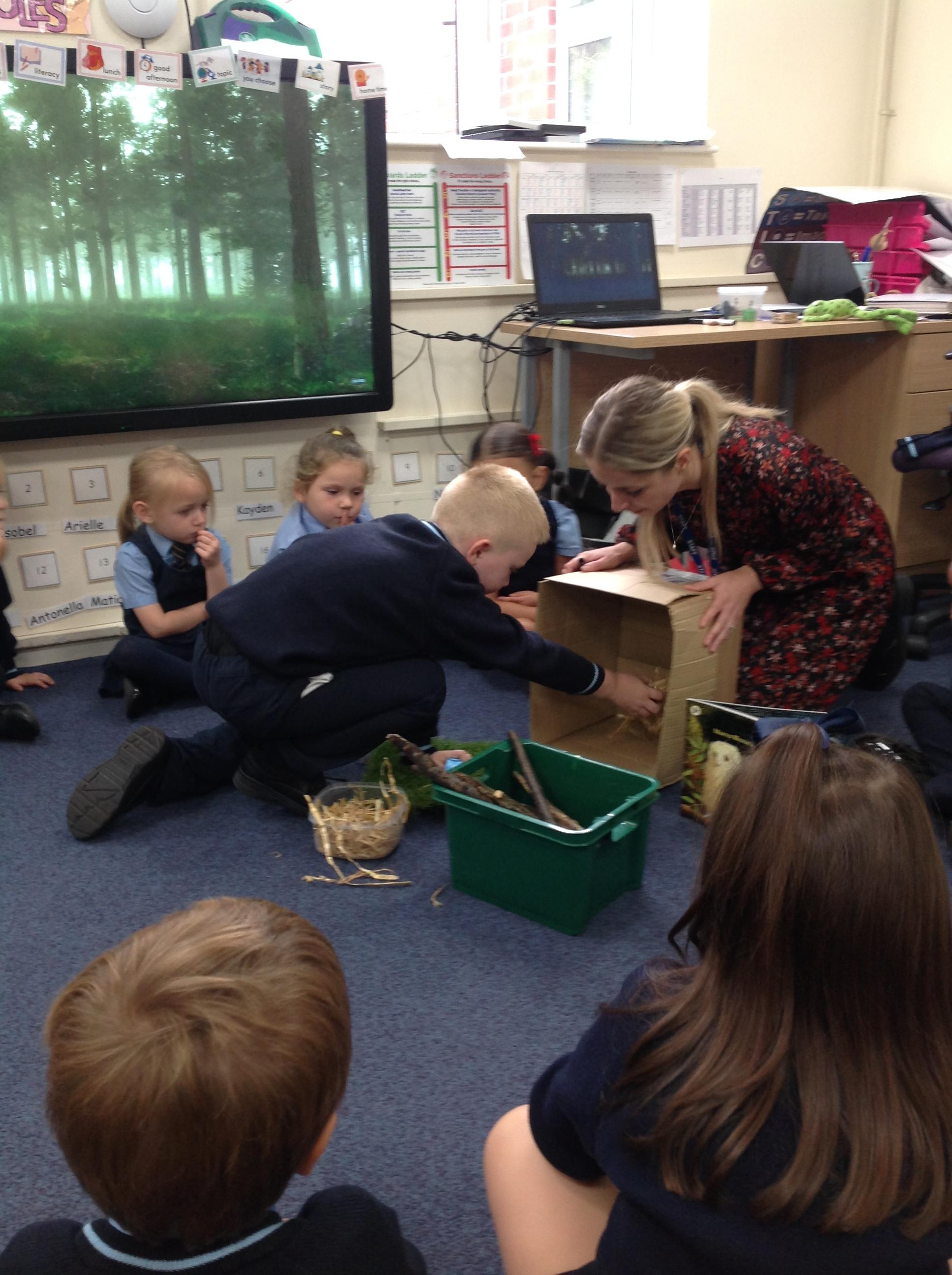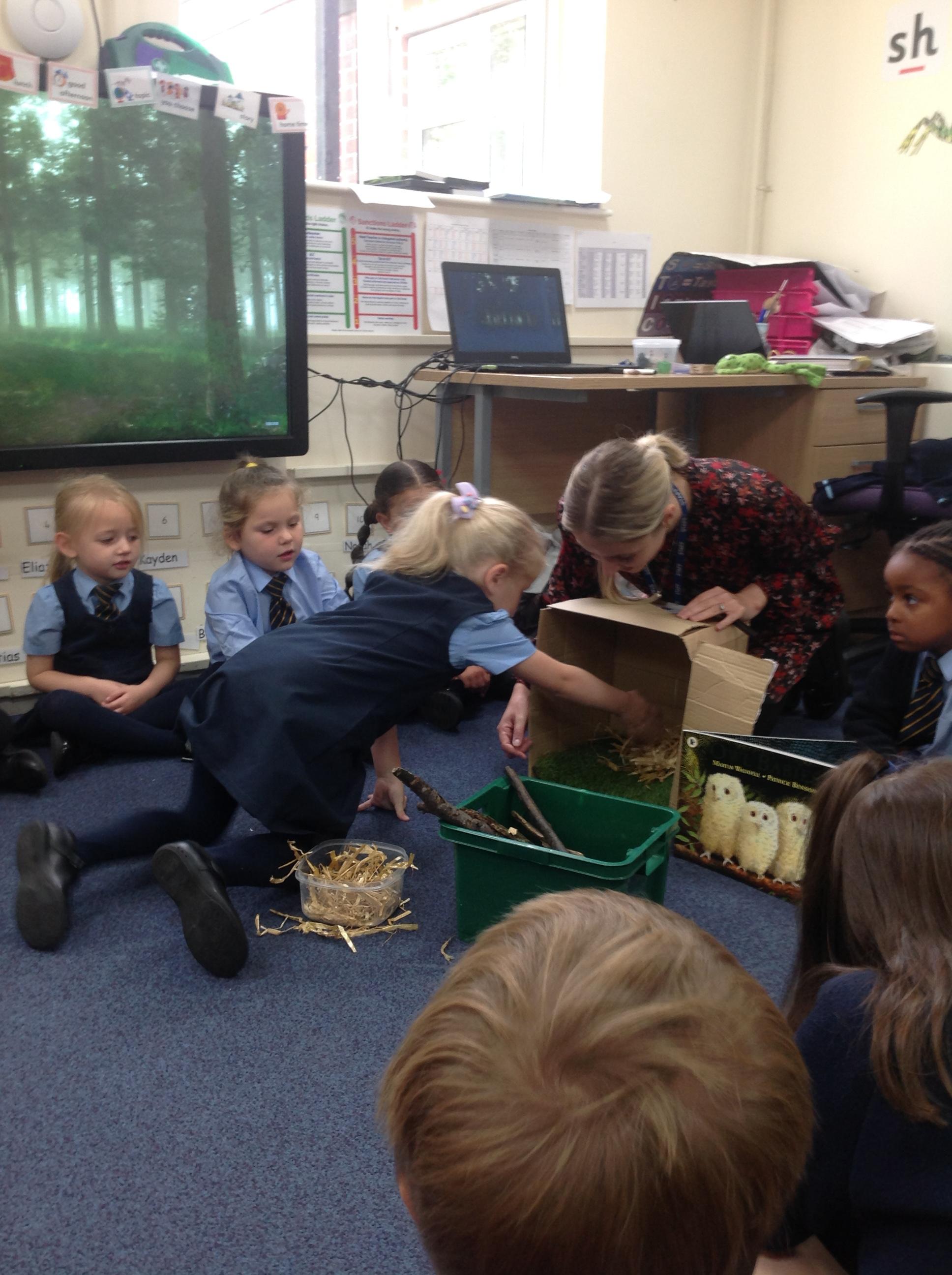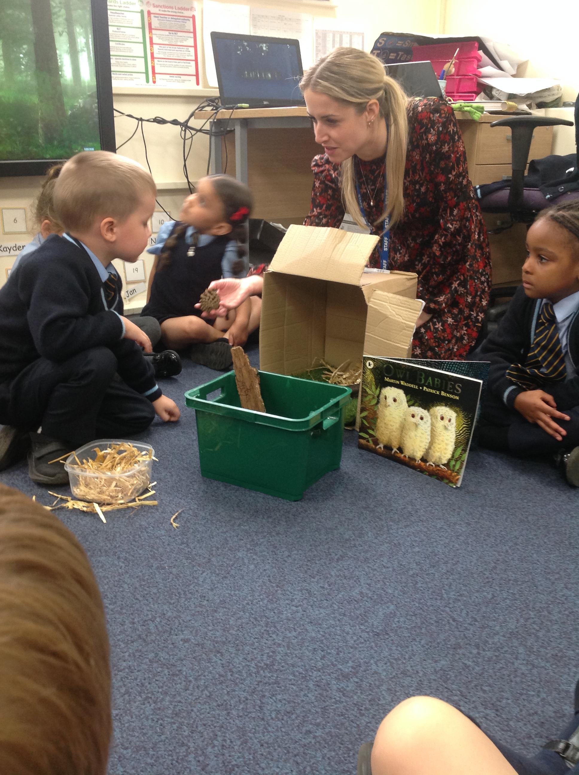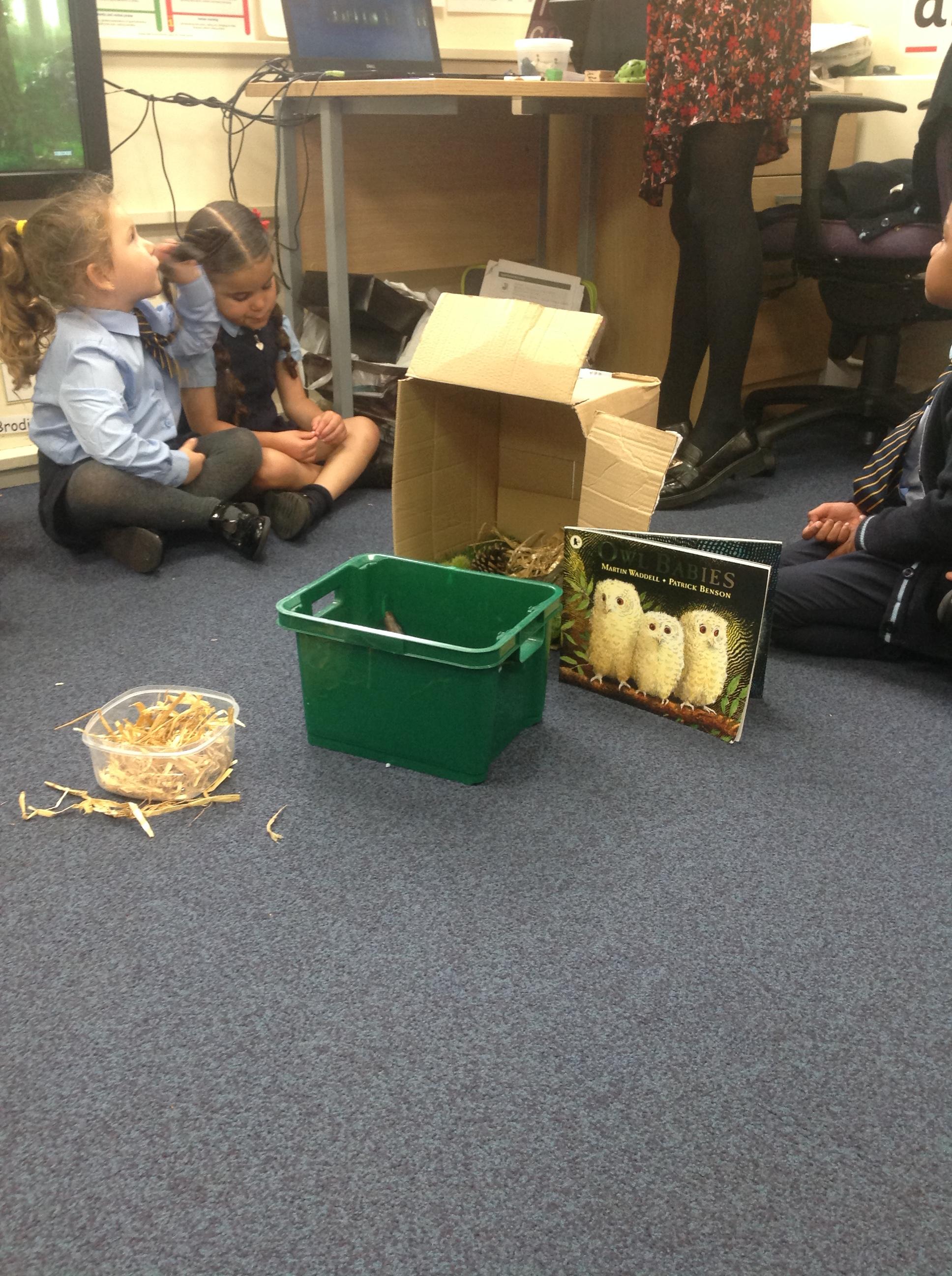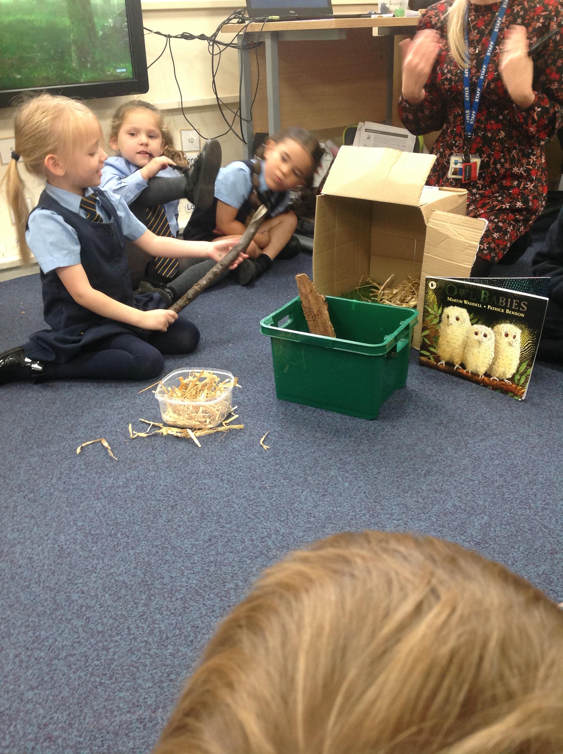 Owl babies everywhere! Children have been enjoying the story Owl Babies. Children have been making sure that they are quiet and gentle when handling the owl babies in the box!