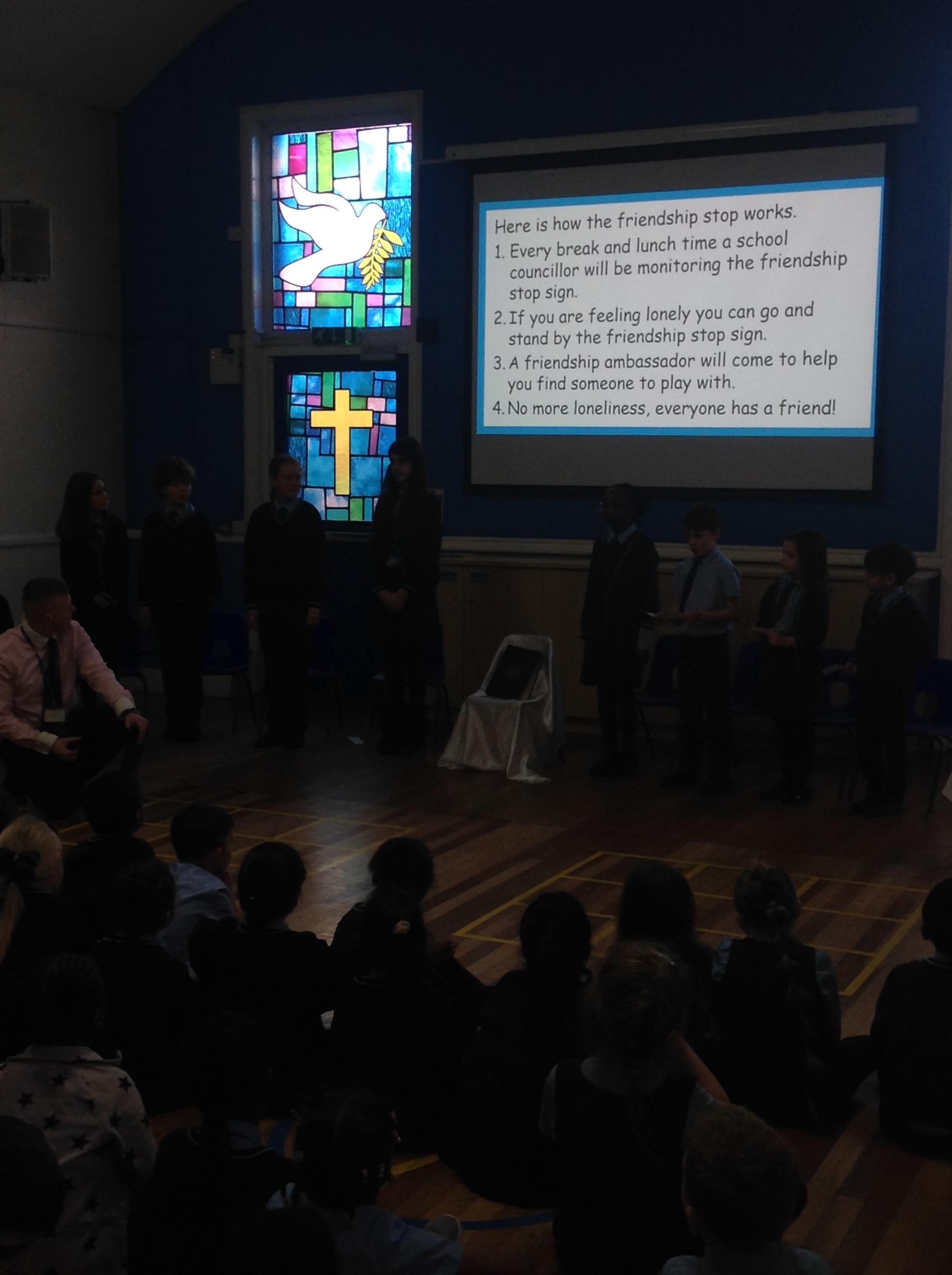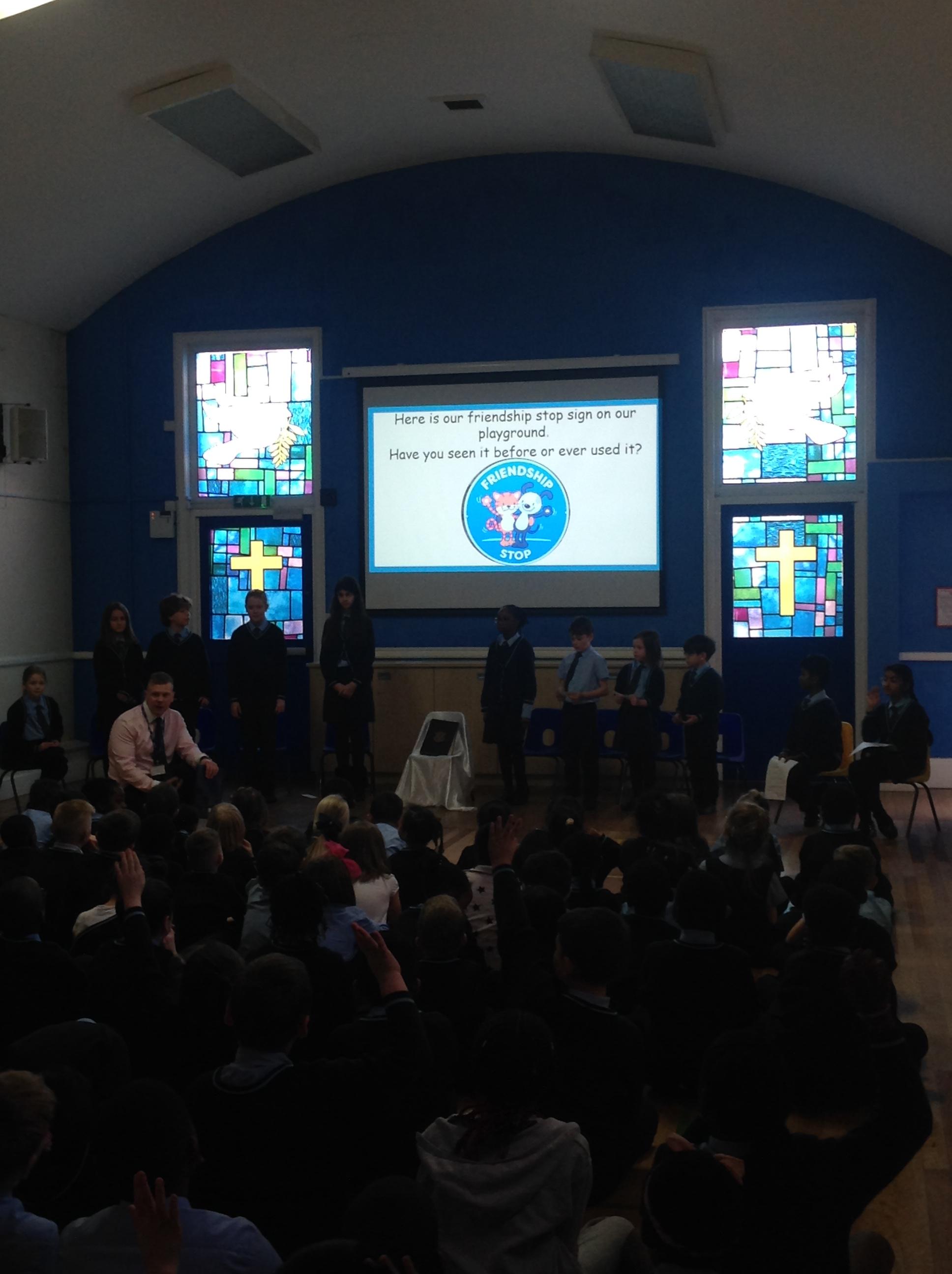 Whole school assembly about friendship stop
