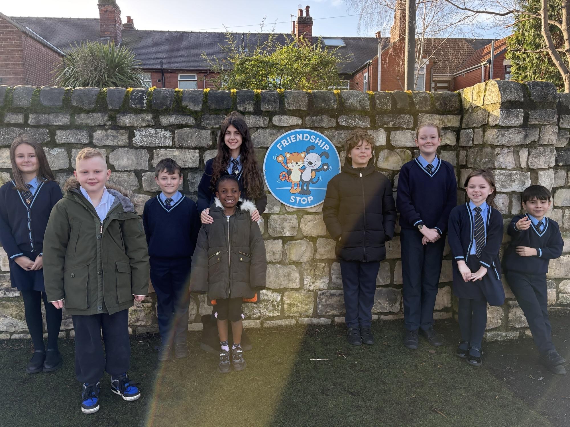 The School Council created the friendship stop/friendship ambassadors to combat loneliness in our school. We introduced the idea to the whole school in Monday's assembly. We went through the friendship stop sign and how the friendship stop works. Finally we created a timetable to ensure a friendship ambassador is monitoring the friendship stop sign at all times on break times and lunch times.