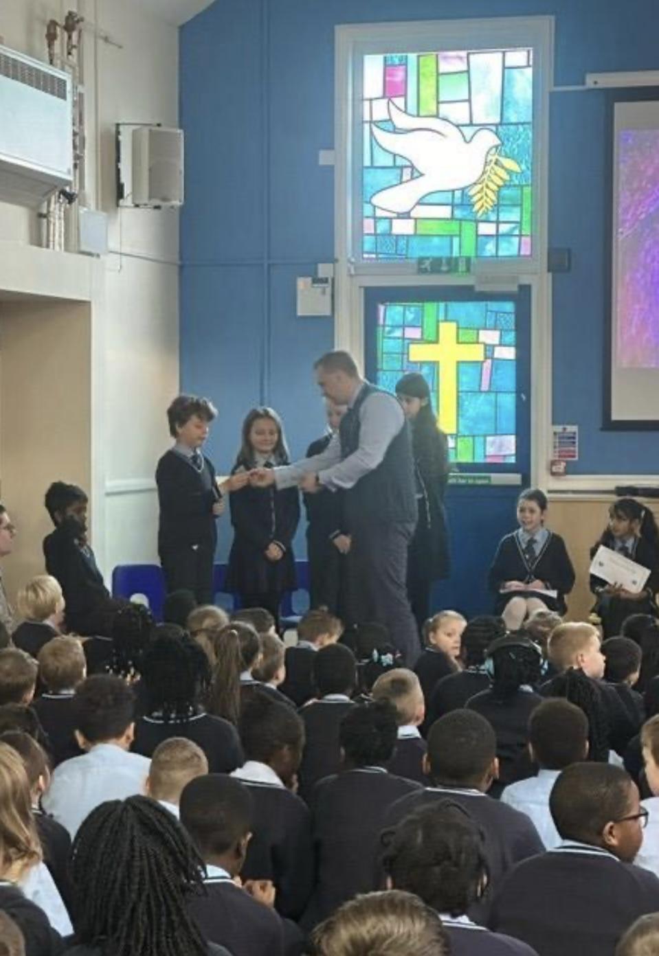 Our school councillors accepting their badges in assembly