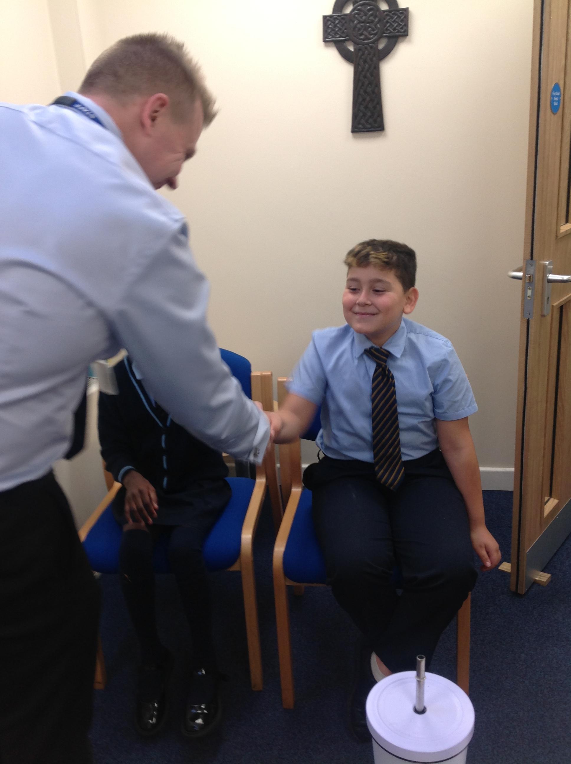 To become a school councillor at St Francis Xavier you need to fill in an application form expressing your interest in the role of being a school councillor. Then Mr Hoyes reviewed the applications and sent out formal letters inviting the successful applications to attend an interview. Mr Hoyes and Miss Langston conducted the interviews and asked the children several important questions to assess if they were the right fit for the job. Once the interview was over Mr Hoyes shook the hands of the successful applicants and welcomed them onto the school council.