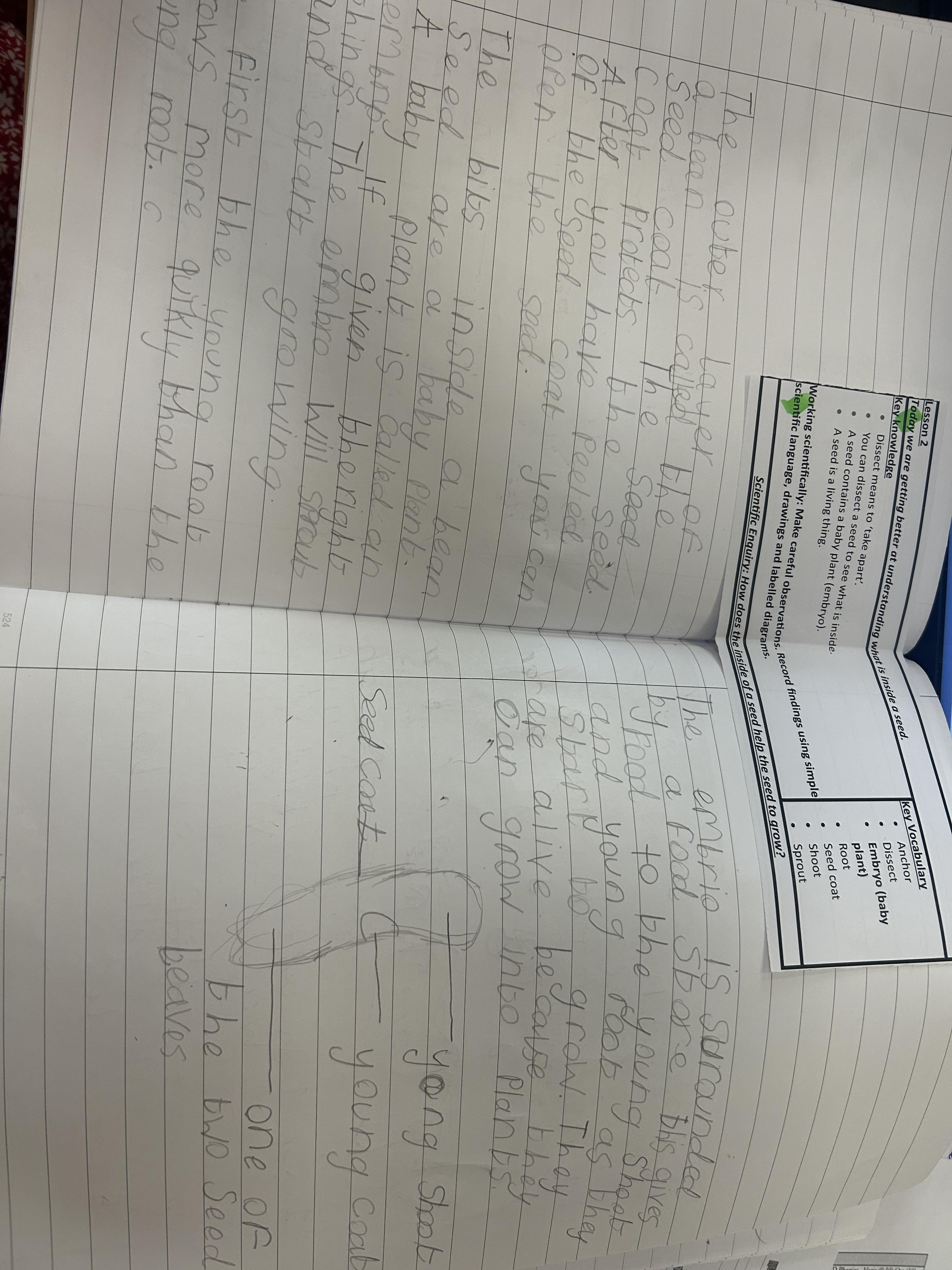 In Science, we have been comparing soaked beans and dry beans. We dissected some runner beans to find out what is inside them.