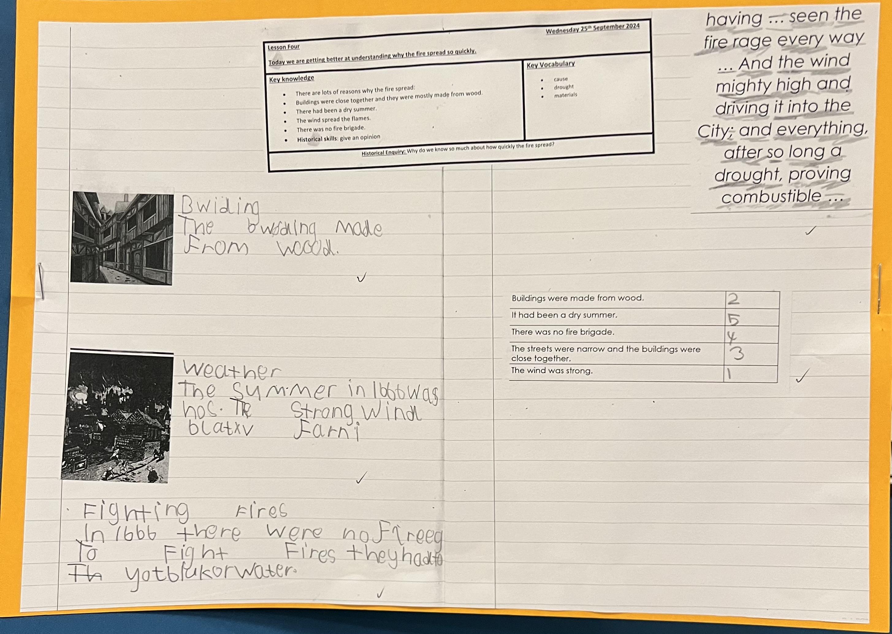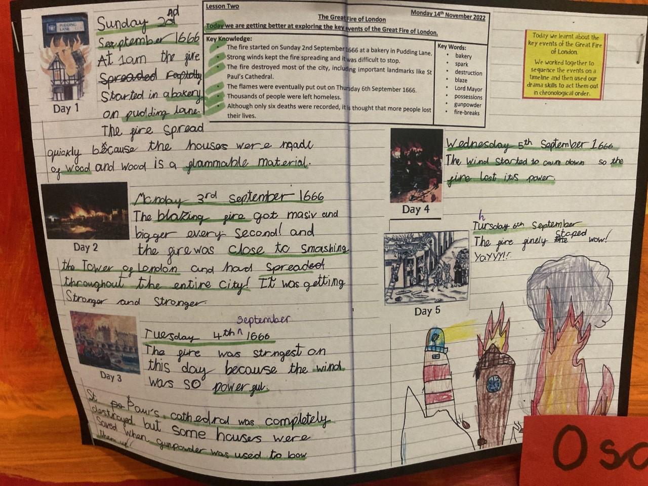 Year 2 have been learning all about the Great Fire of London. They have also been learning about what life was like in 1666. As well as this, they have been learning about how and why the fire started, why is spread so quickly and how life changed as a result of the fire.