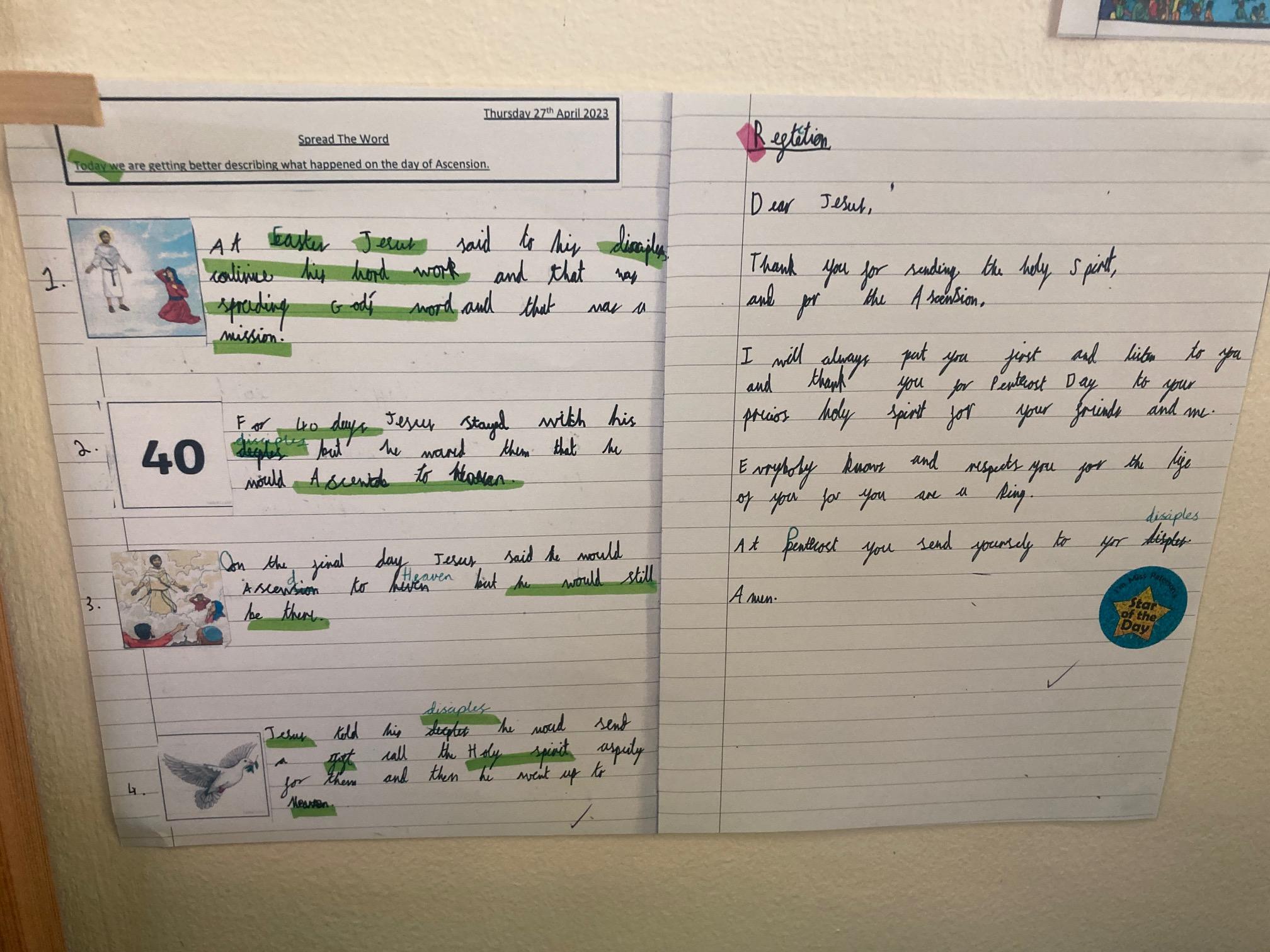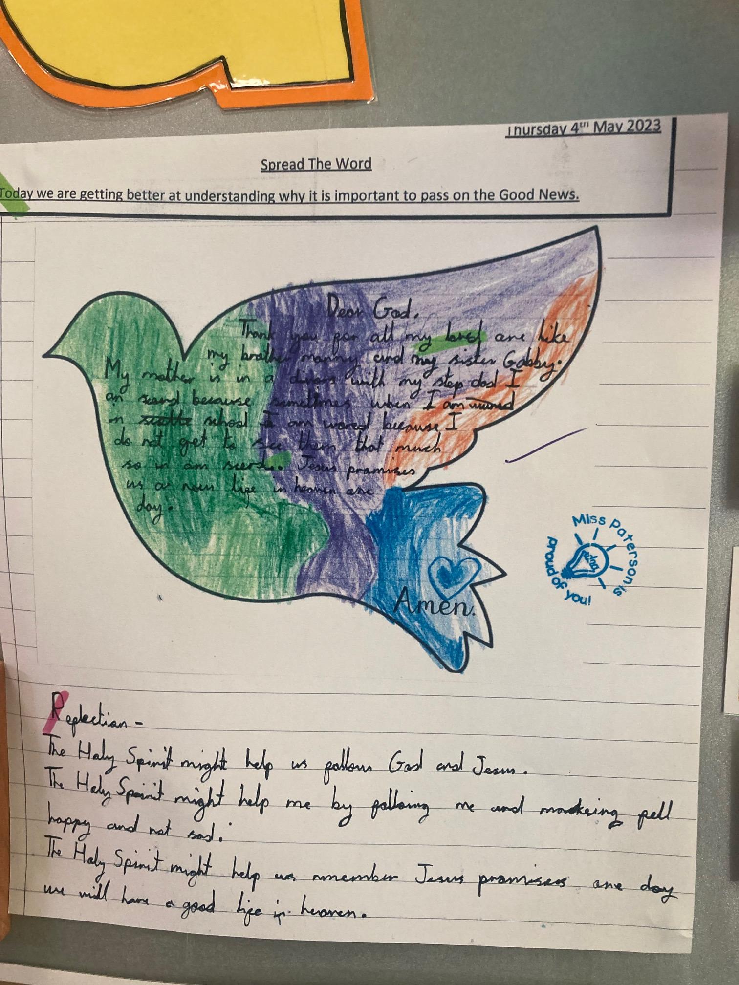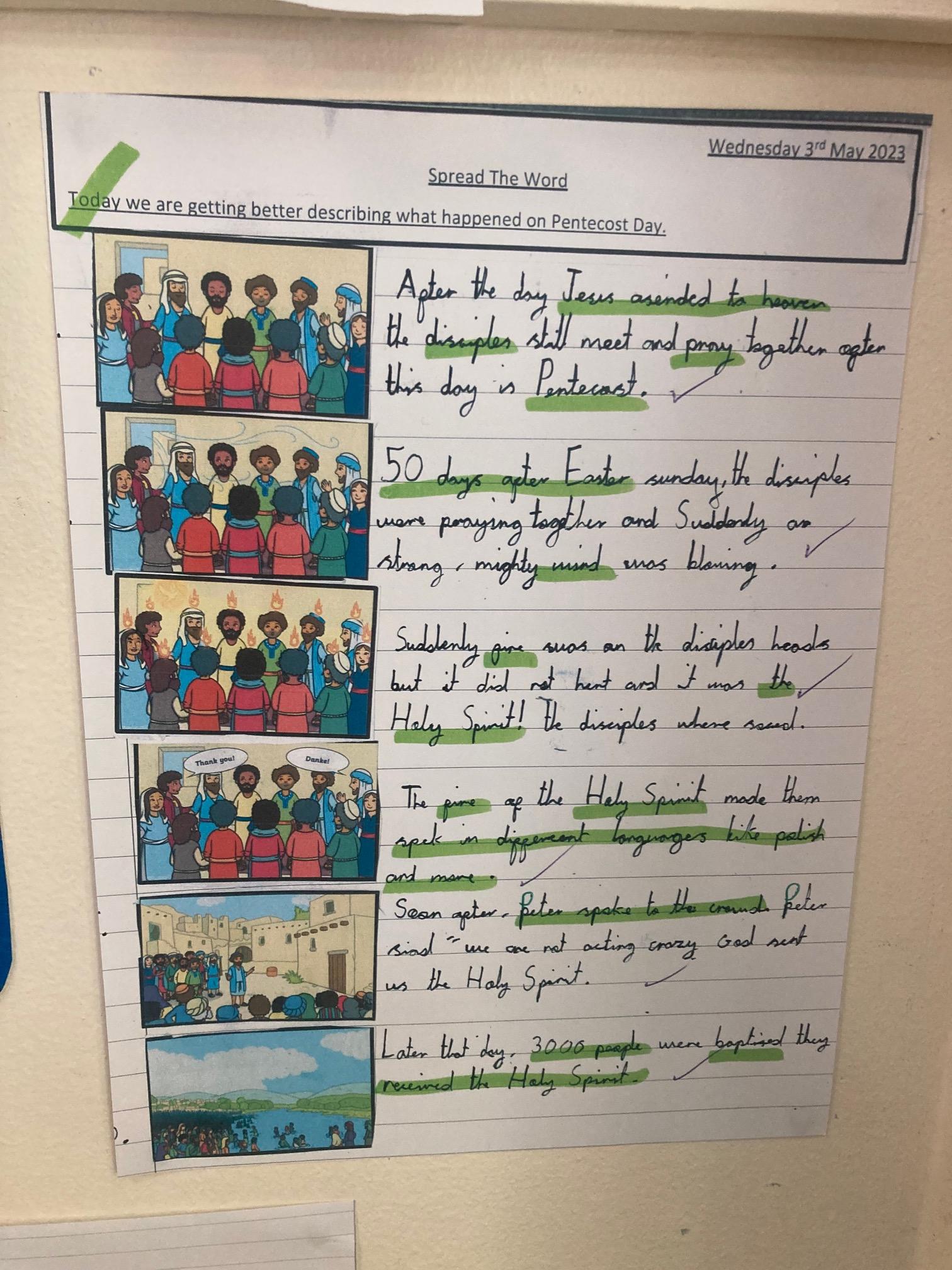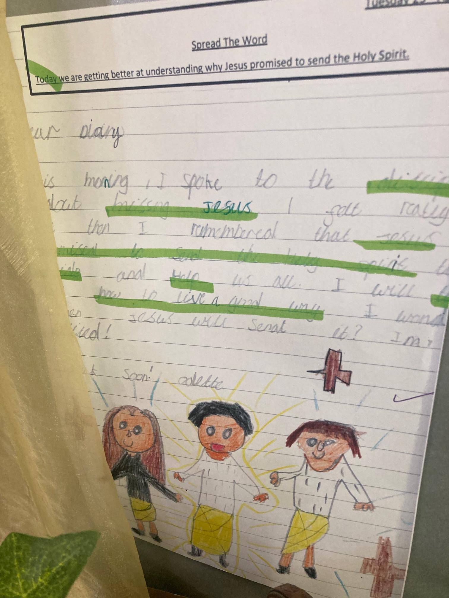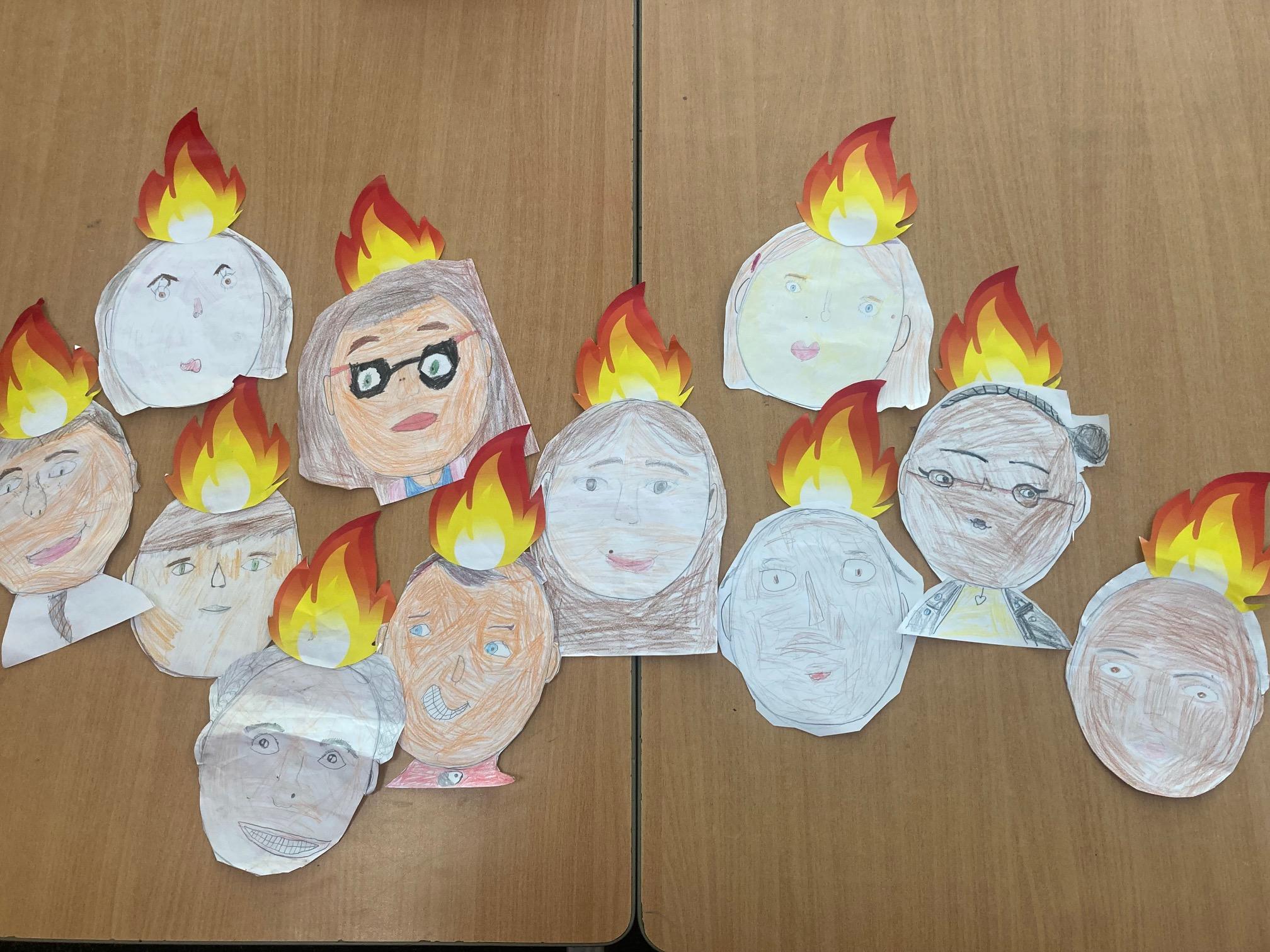Year 2 loved celebrating Pentecost. They used their drawing skills to create a self portrait and then attached flames onto their heads. This symbolised the fact that we are all disciples of Jesus, receiving the gift of the Holy Spirit.