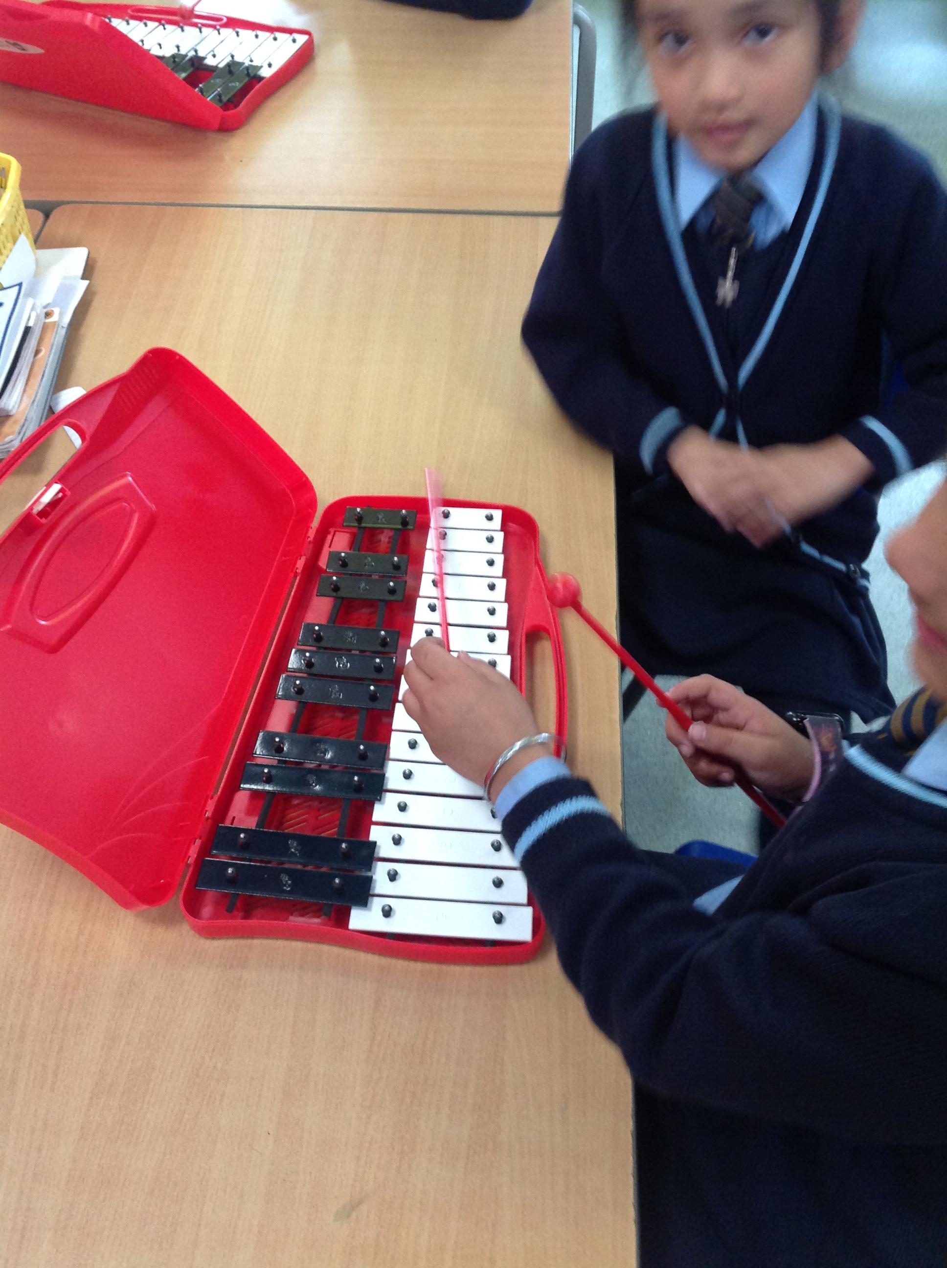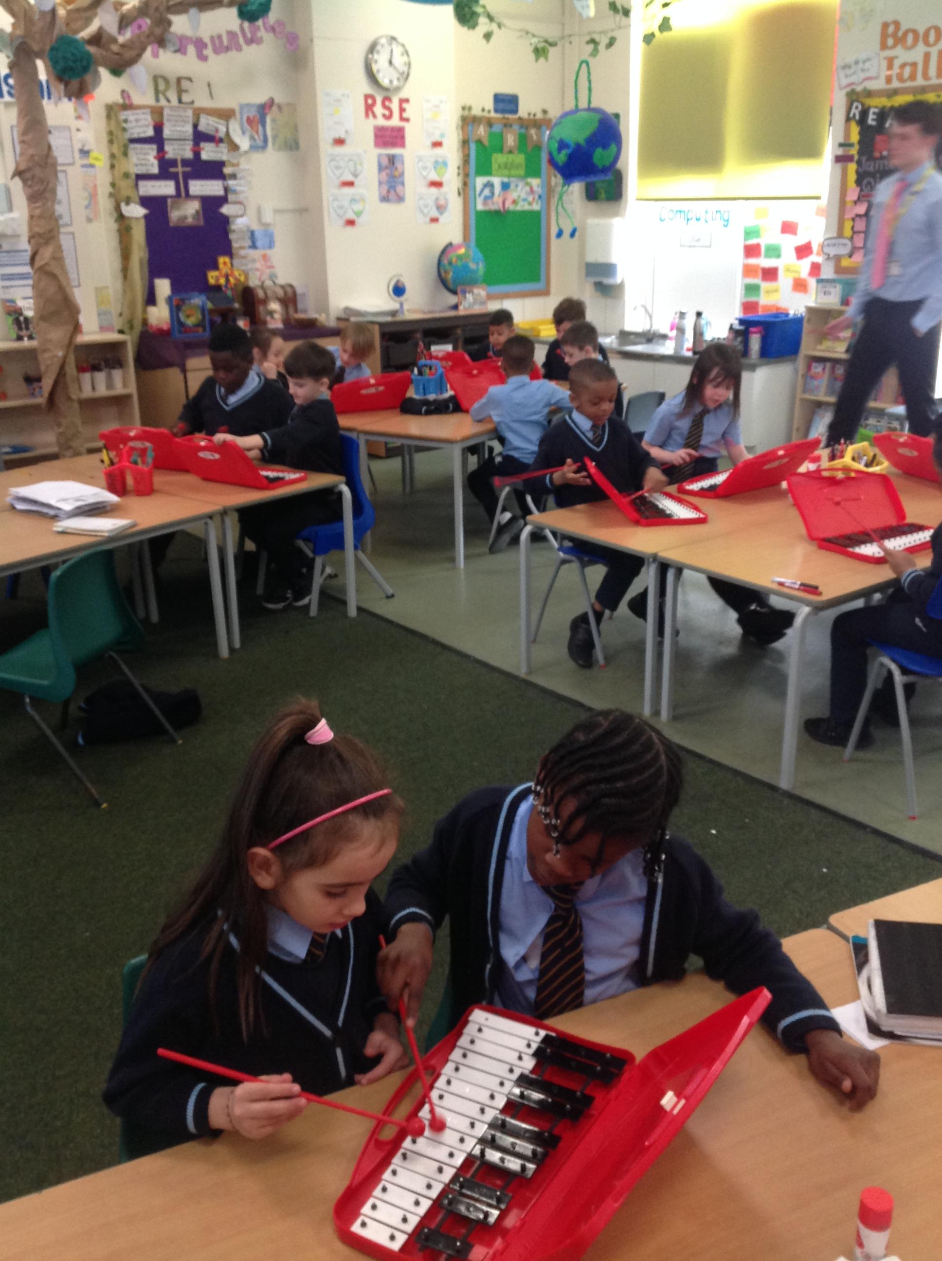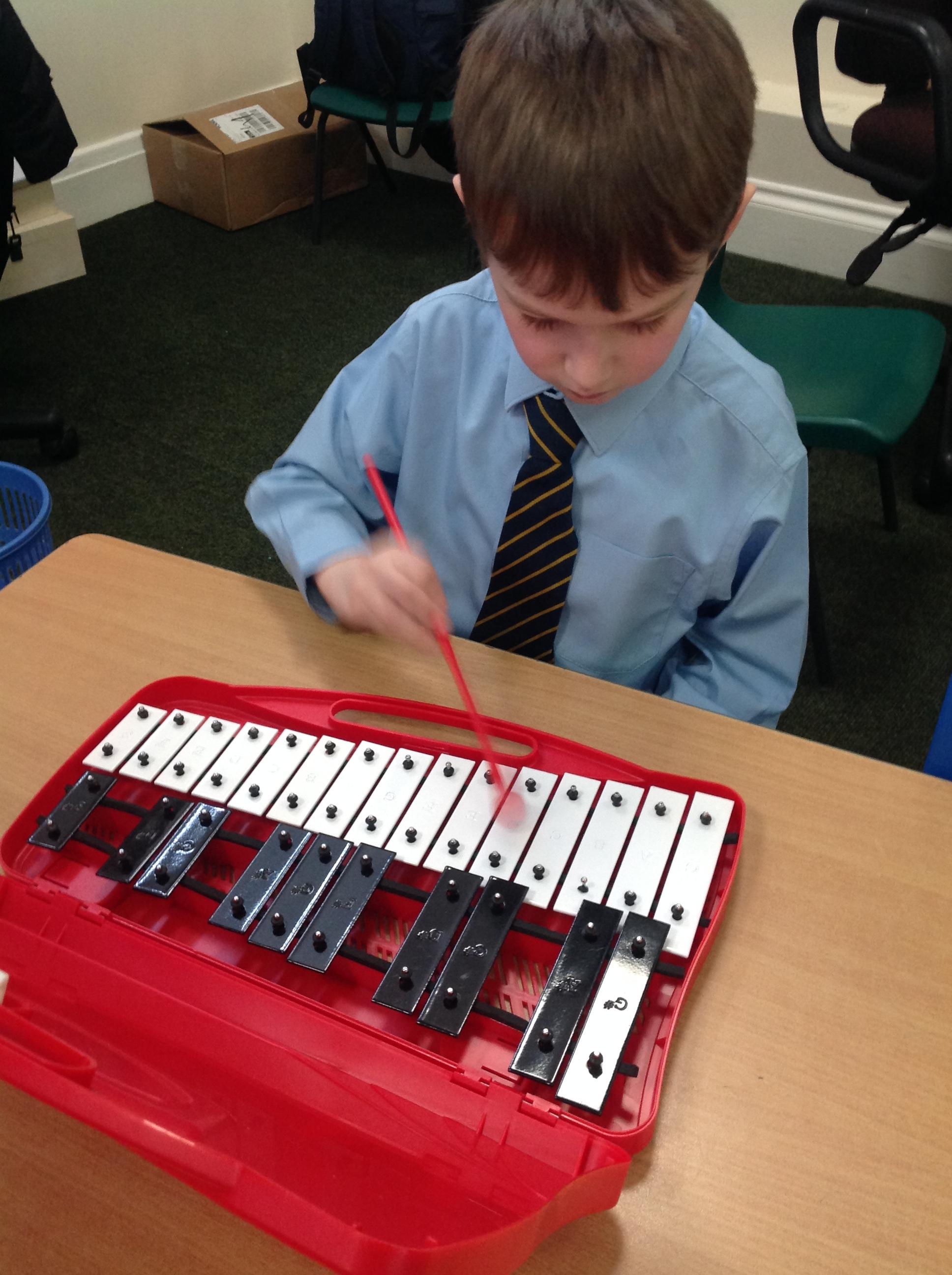 Year 2 used xylophones to practice playing the famous motif from Beethoven's 'Symphony No. 5'. They then created their own simple motif.