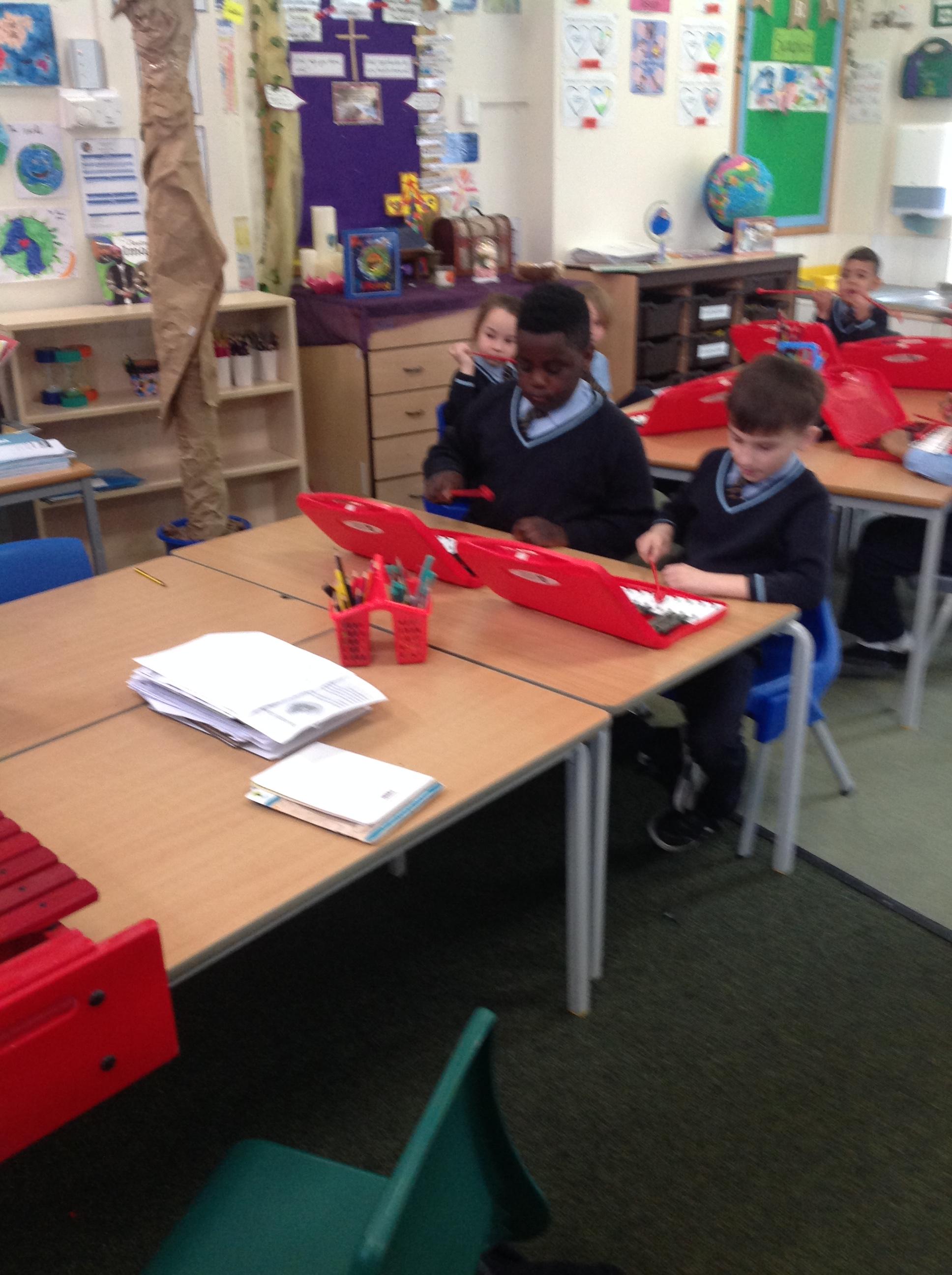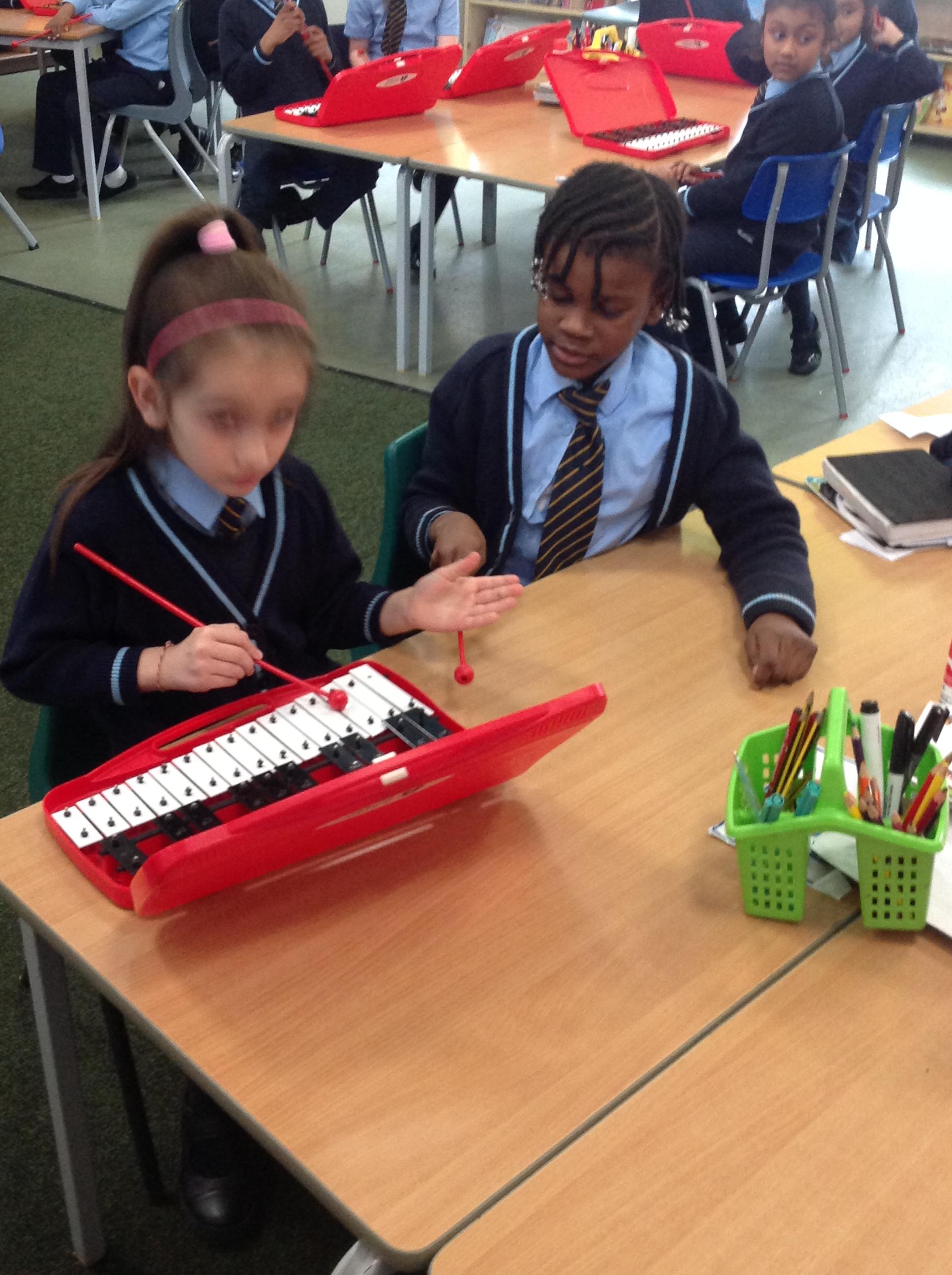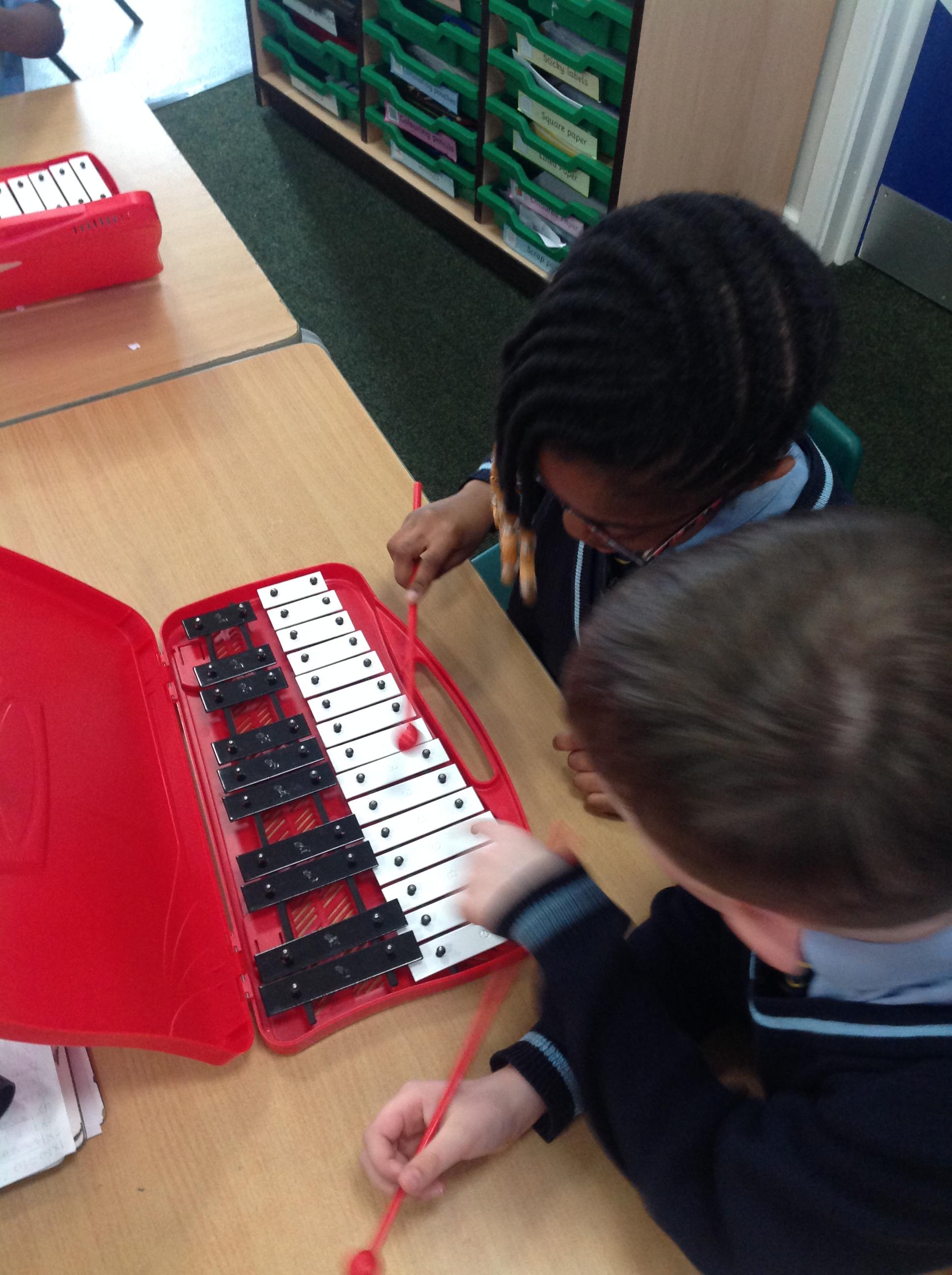 Year 2 used xylophones to practice playing the famous motif from Beethoven's 'Symphony No. 5'. They then created their own simple motif.