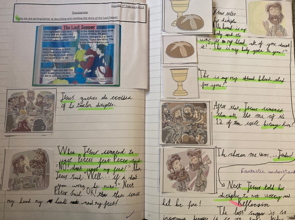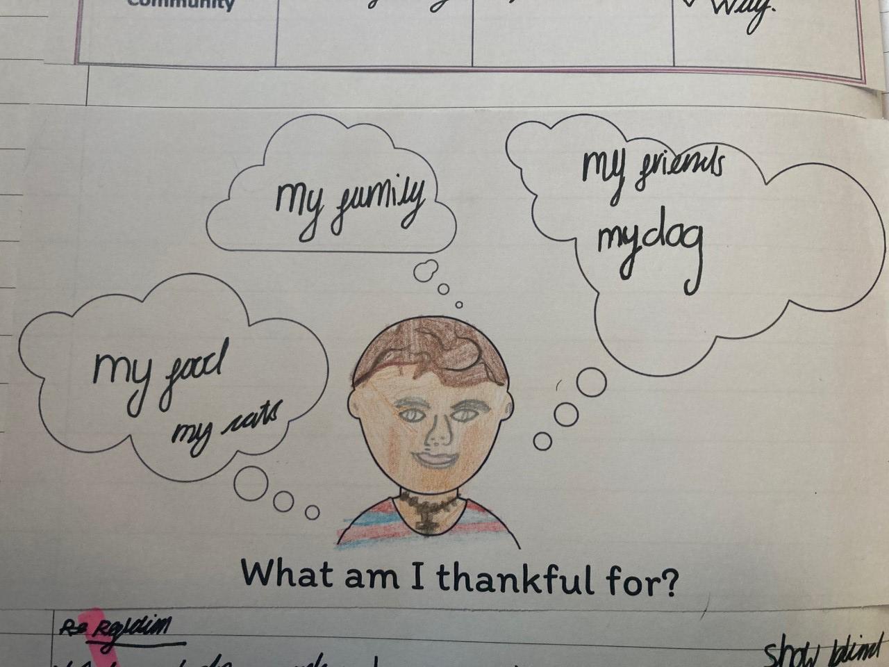 In RE, our topic is 'Thanksgiving'. We have explored what we are thankful for and the different ways we can say thank you. We then learnt about the story of the Last Supper and its significance.