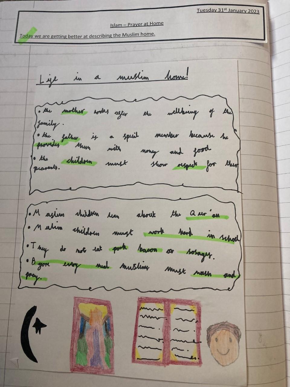 Year 2 loved learning about Islam. They learnt all about how Muslims pray at home and what life is like in a Muslim family.