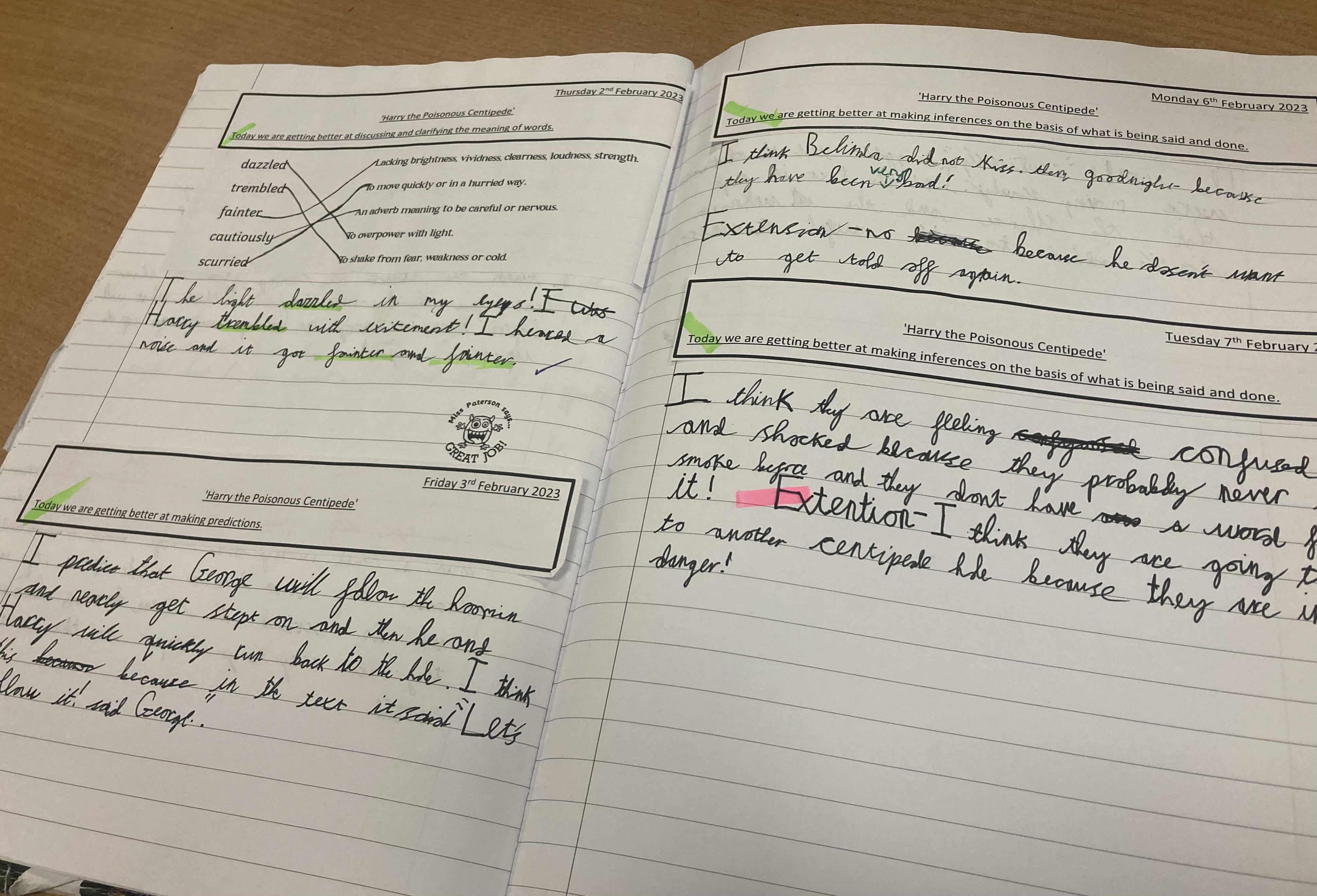 In Book Talk, we have been reading 'Harry the Poisonous Centipede' by Lynne Reid Banks. We have been practising skills of retrieval, inference, prediction and sequencing. We have also been learning lots of new vocabulary and reading with fluency and expression.