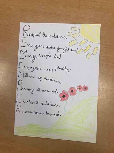 The children in Year 2 learnt about the significance of Remembrance Day and wrote acrostic poems to celebrate the many brave soldiers who have fought in wars.
