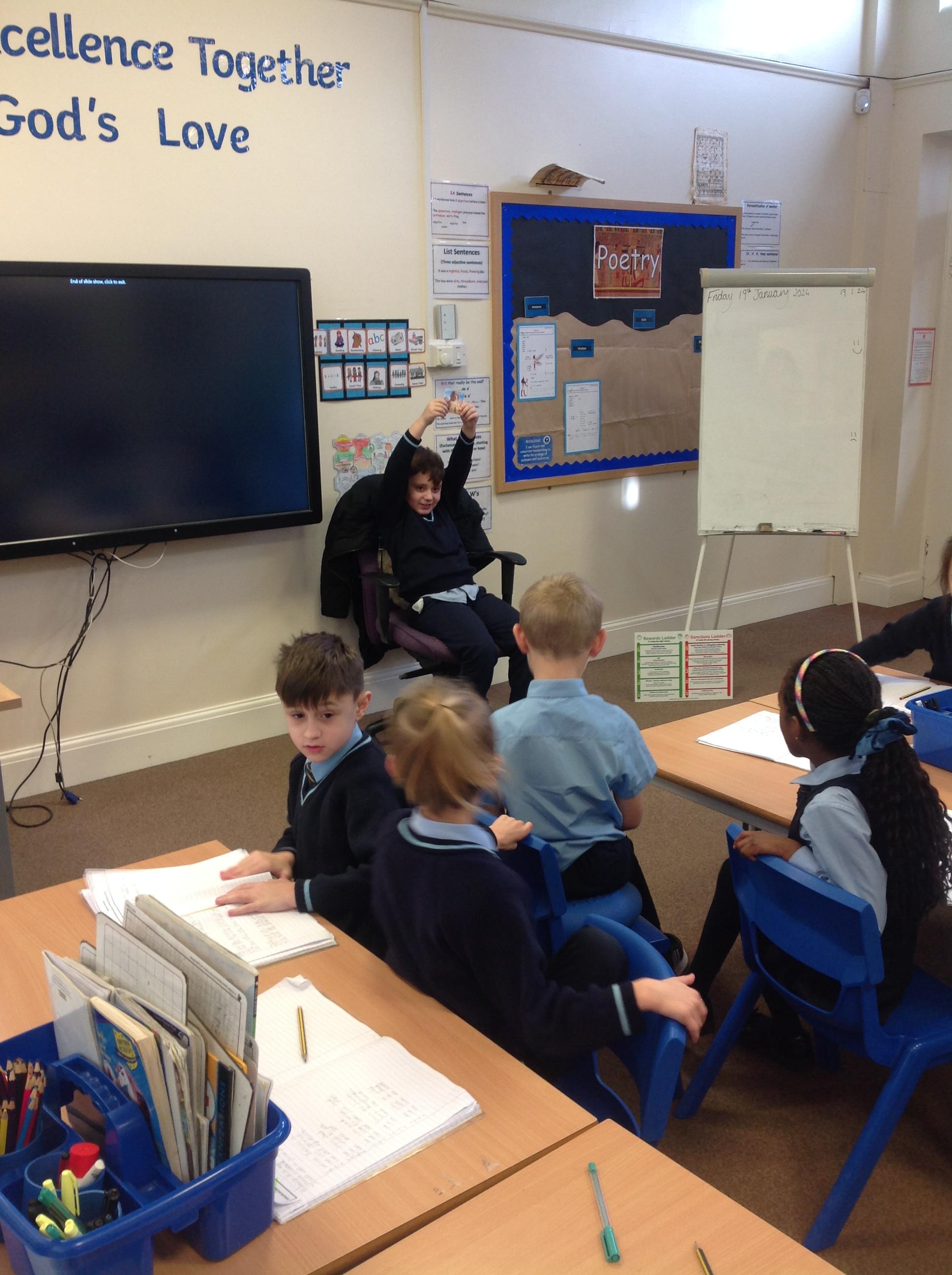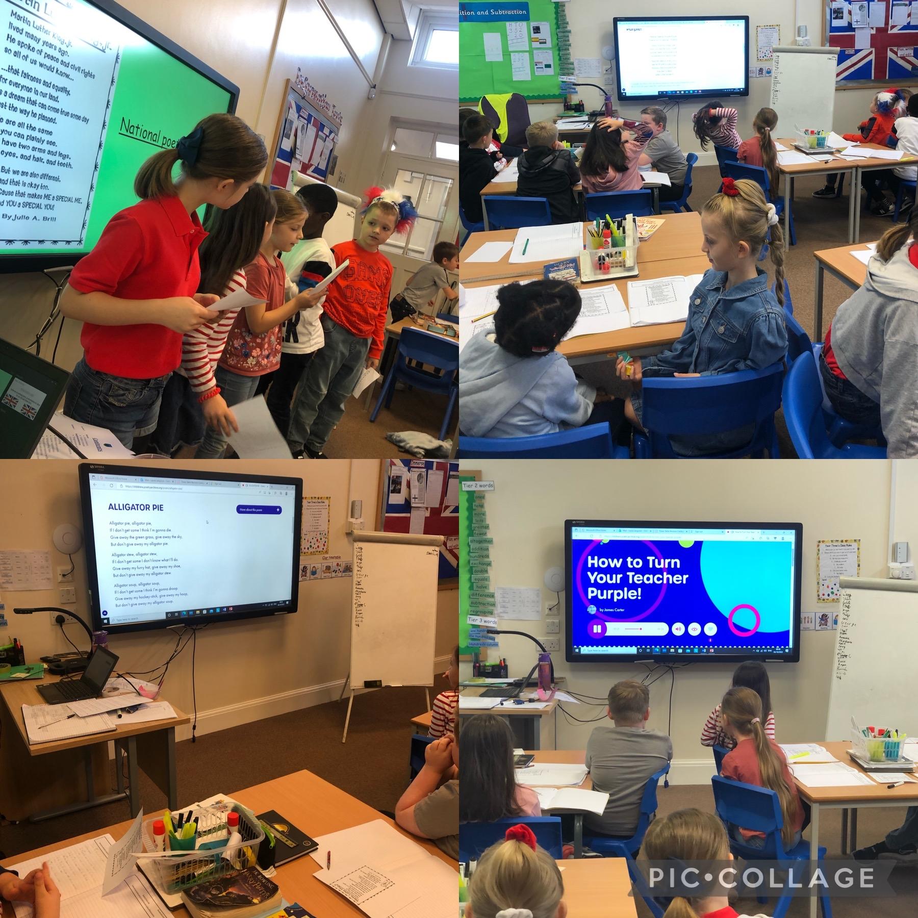 For National Poetry Day Year 3 listened and explored different poems. We looked at the rhymes within the poems and said what we liked and disliked about each poem. We listened to poem by Michael Rosen and Dennis Lee. Then we got into groups and practiced reading a poem about Martin Luther King Jr. Each group then read their poem to the class