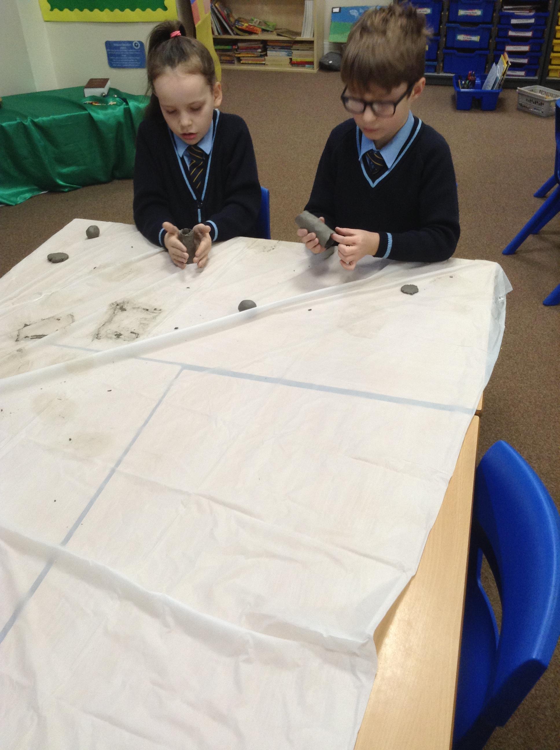 For our first Science lesson we explored what a rock is. We conducted an investigation where we explored the three different types of rocks. We described how they felt and made predictions on what type of rock we thought it was.
