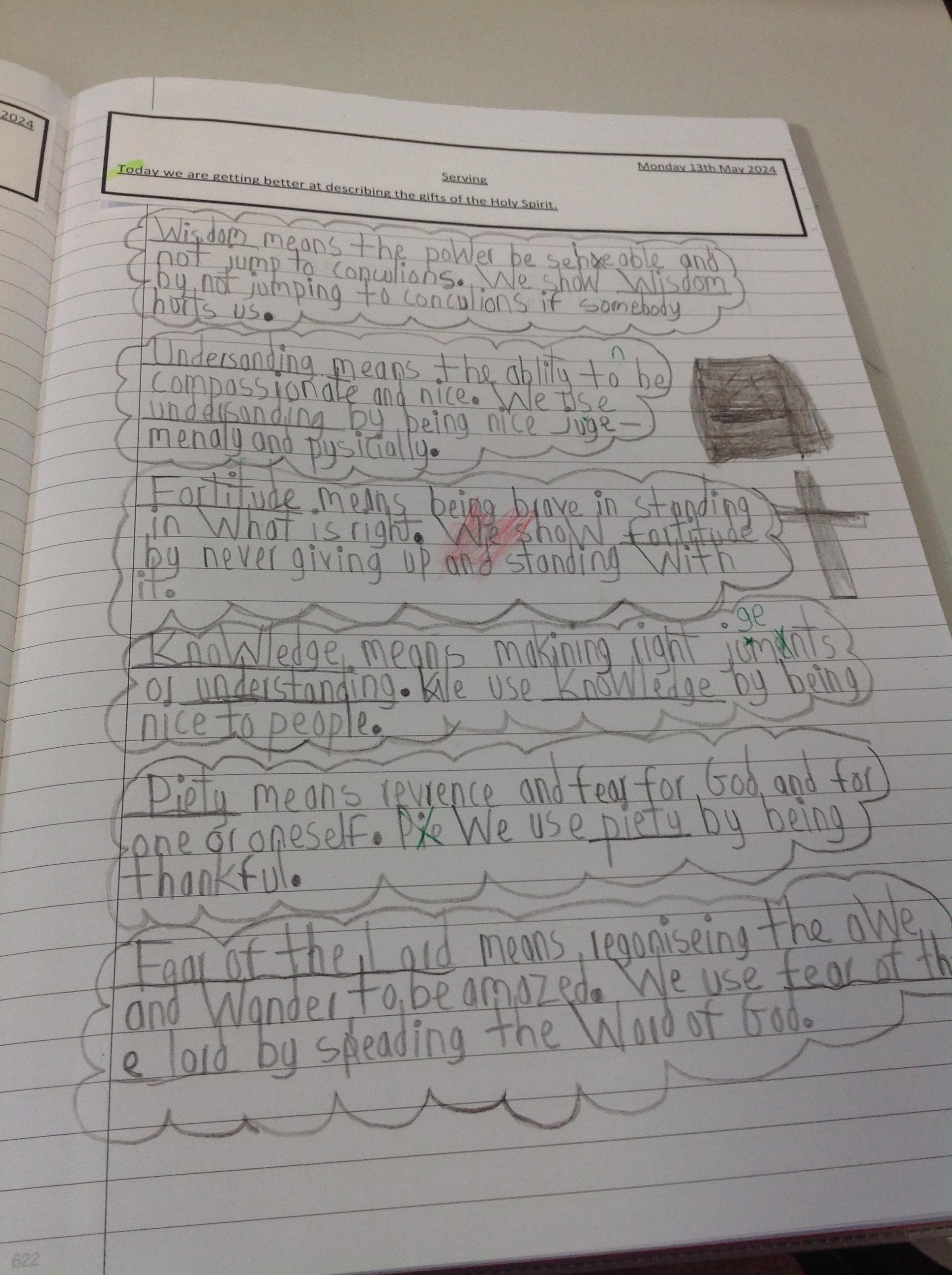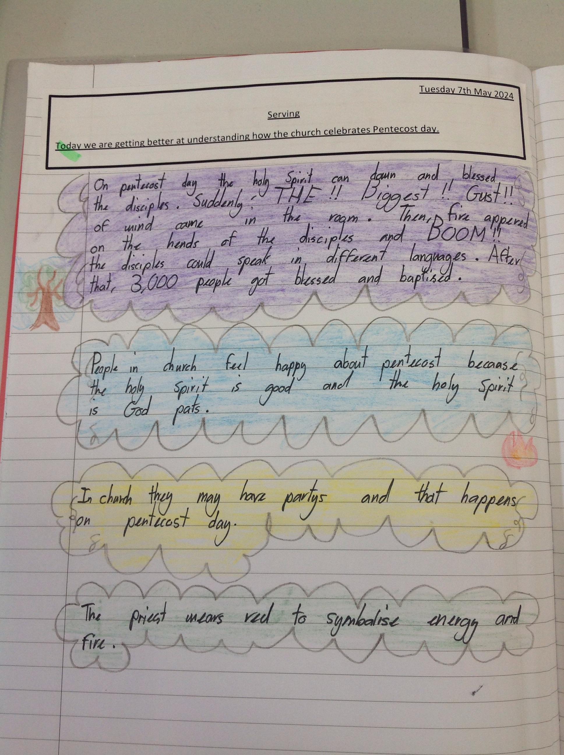 We then looked at Baptism as a special Sacrament where both our families, Godparents and ourselves make a promise to God. We compared the similarities and differences between Jesus' Baptism and a Baptism that would take place in a Church today.