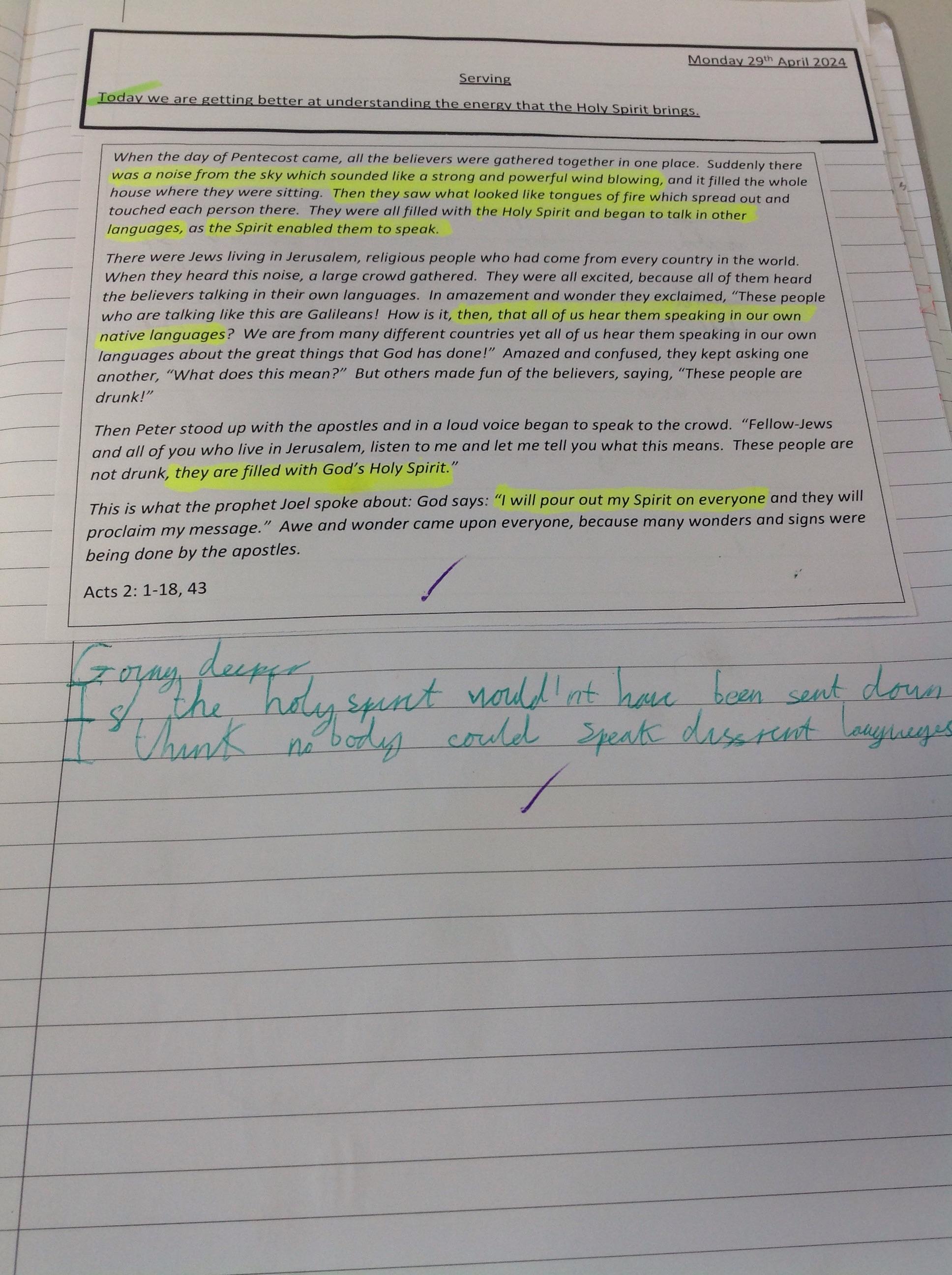 Year Three's prayer and liturgy team decided they wanted the collective worship theme to be aspirations. They planned the whole liturgy from the gather through to the mission, finding their own scripture linking to the theme. They even created a song to call and response with the rest of the class, 'I can be anything I want to be.'