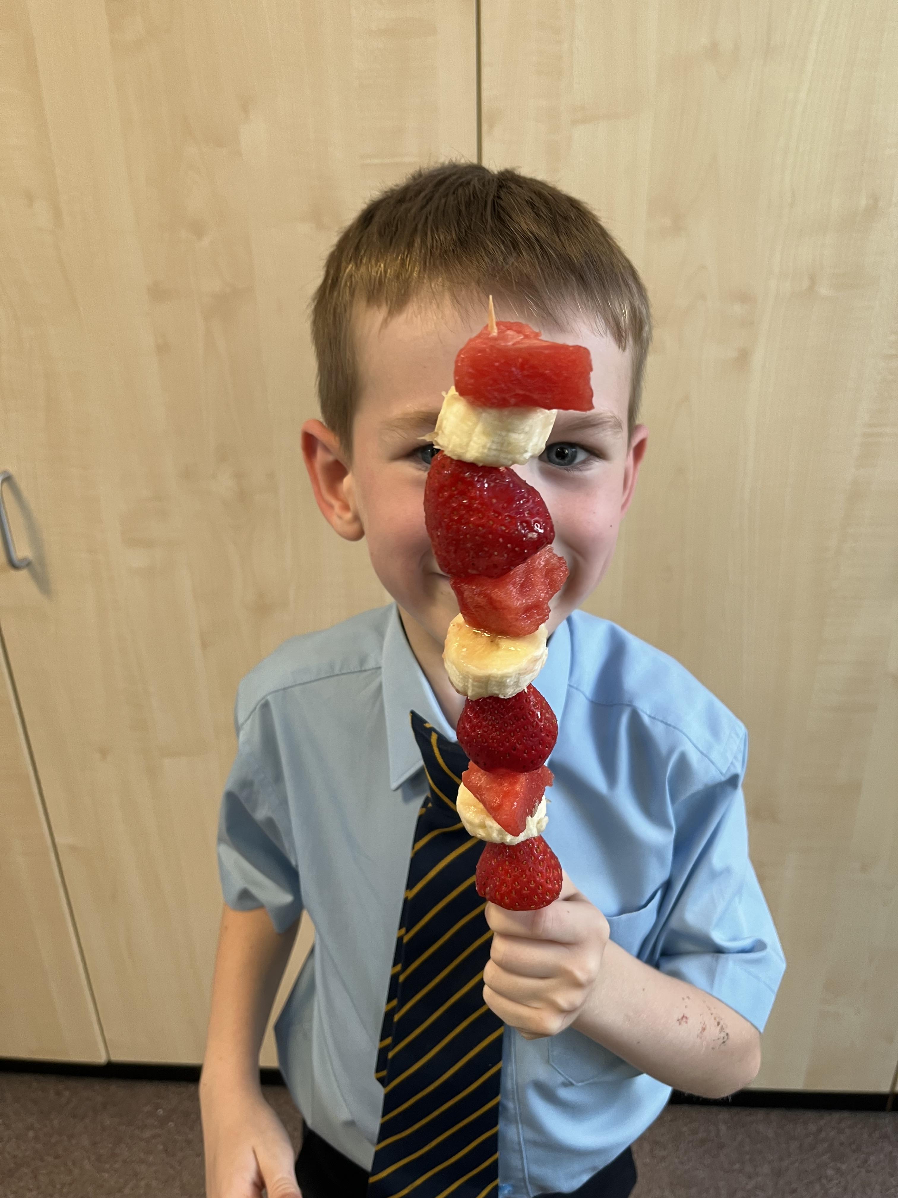 In DT Year 3 made Japanese fruit skewers using a set of instructions. We used bananas, peaches, watermelon and strawberries to make our skewers. Here are our finished results.