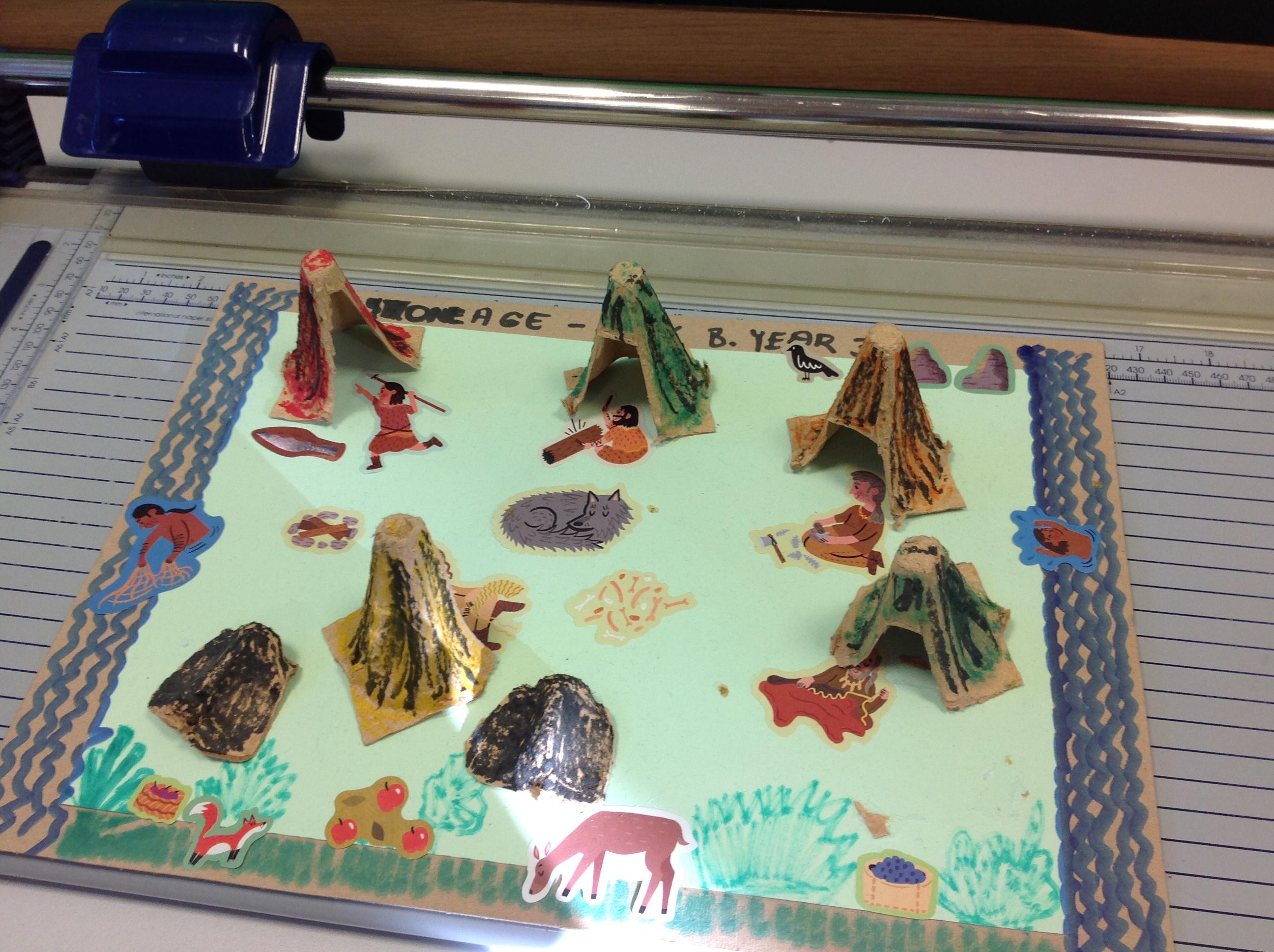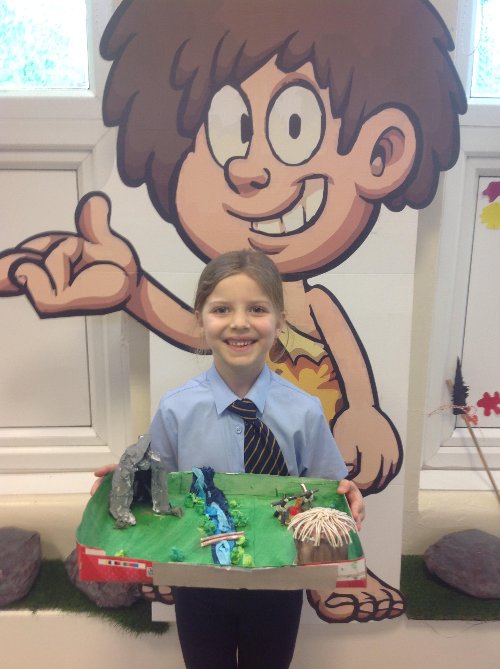 For homework over the holidays Year 3 had to create and design their own Stone Age inspired projects. We have spears, drawings, fossils, Stone Age landscapes and caves. Here are the finished projects!