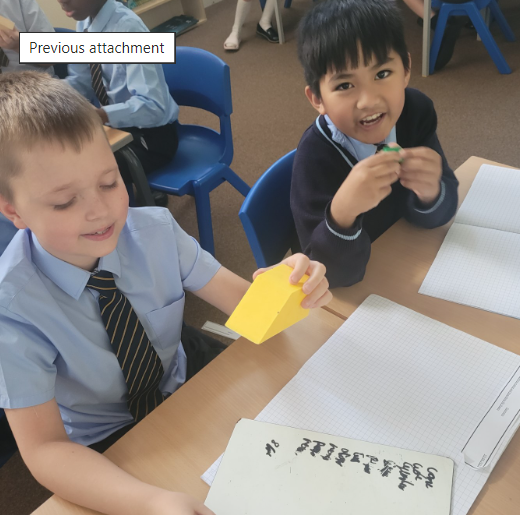 Year Three have loved exploring 3D shapes. They have been able to identify the different properties including how many faces, edges and vertices they have.