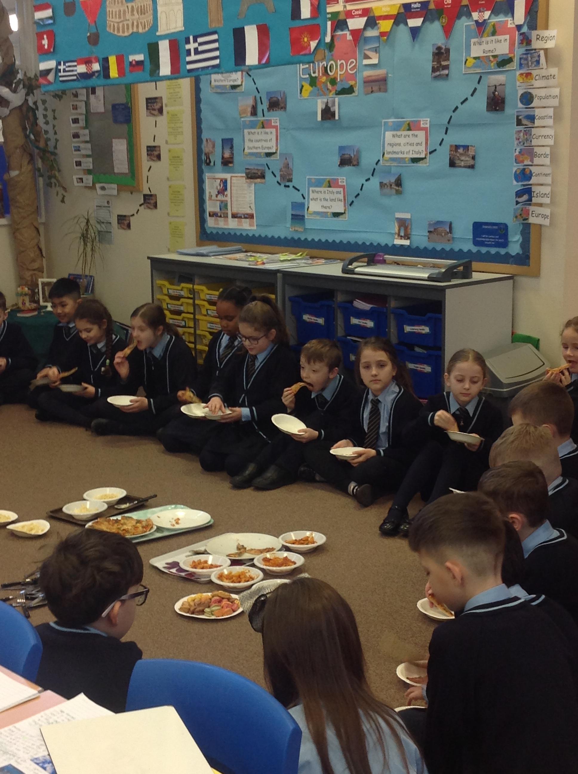 For the beginning of our Literacy journey we immersed ourselves in the Italian cuisine. We tried different types of pizzas, pastas and macarons. Once we had tried them we described the appearance, the smell and the taste of the food to help us when it comes to the end of journey when writing a persuasive letter about Italy.