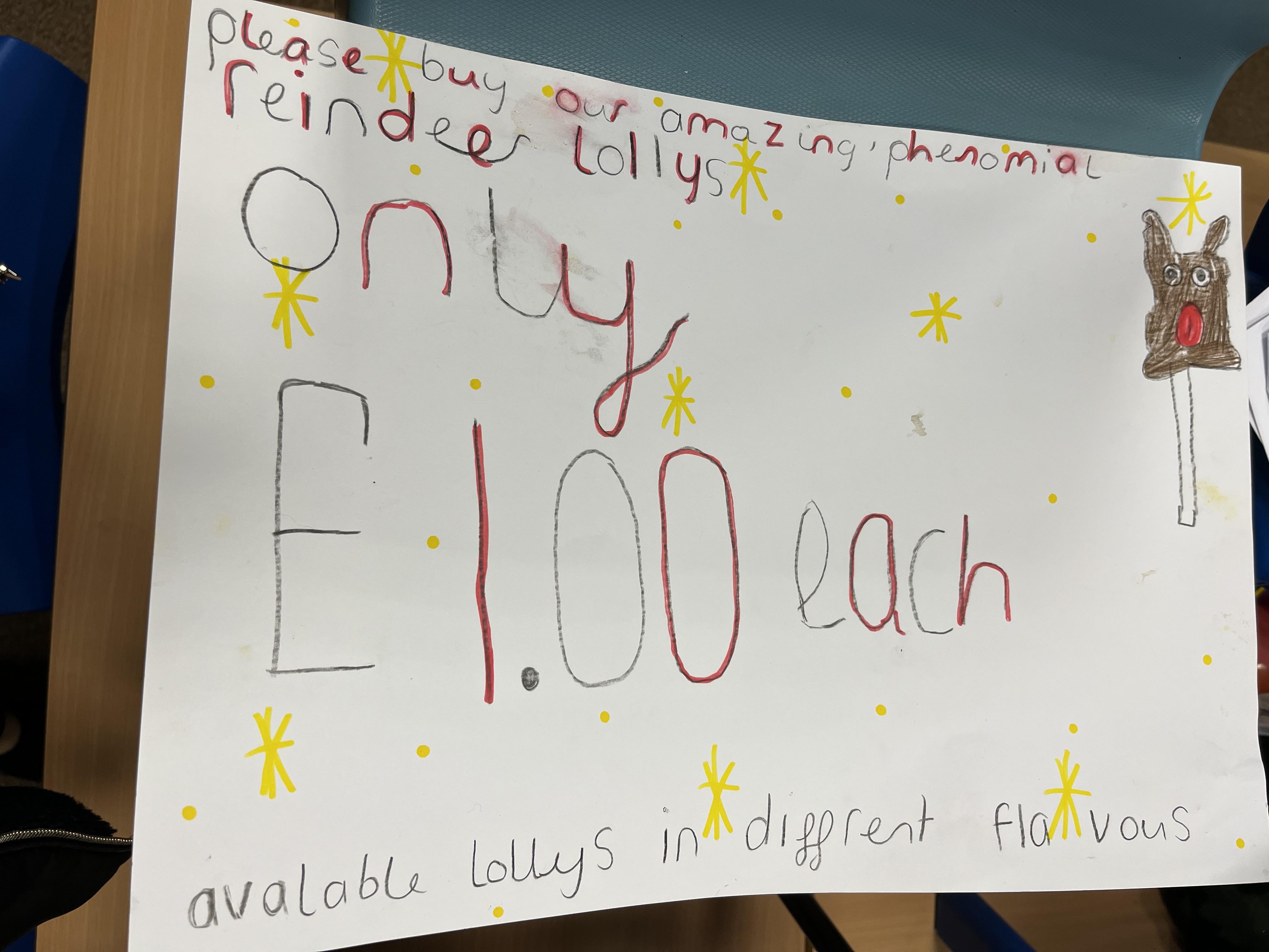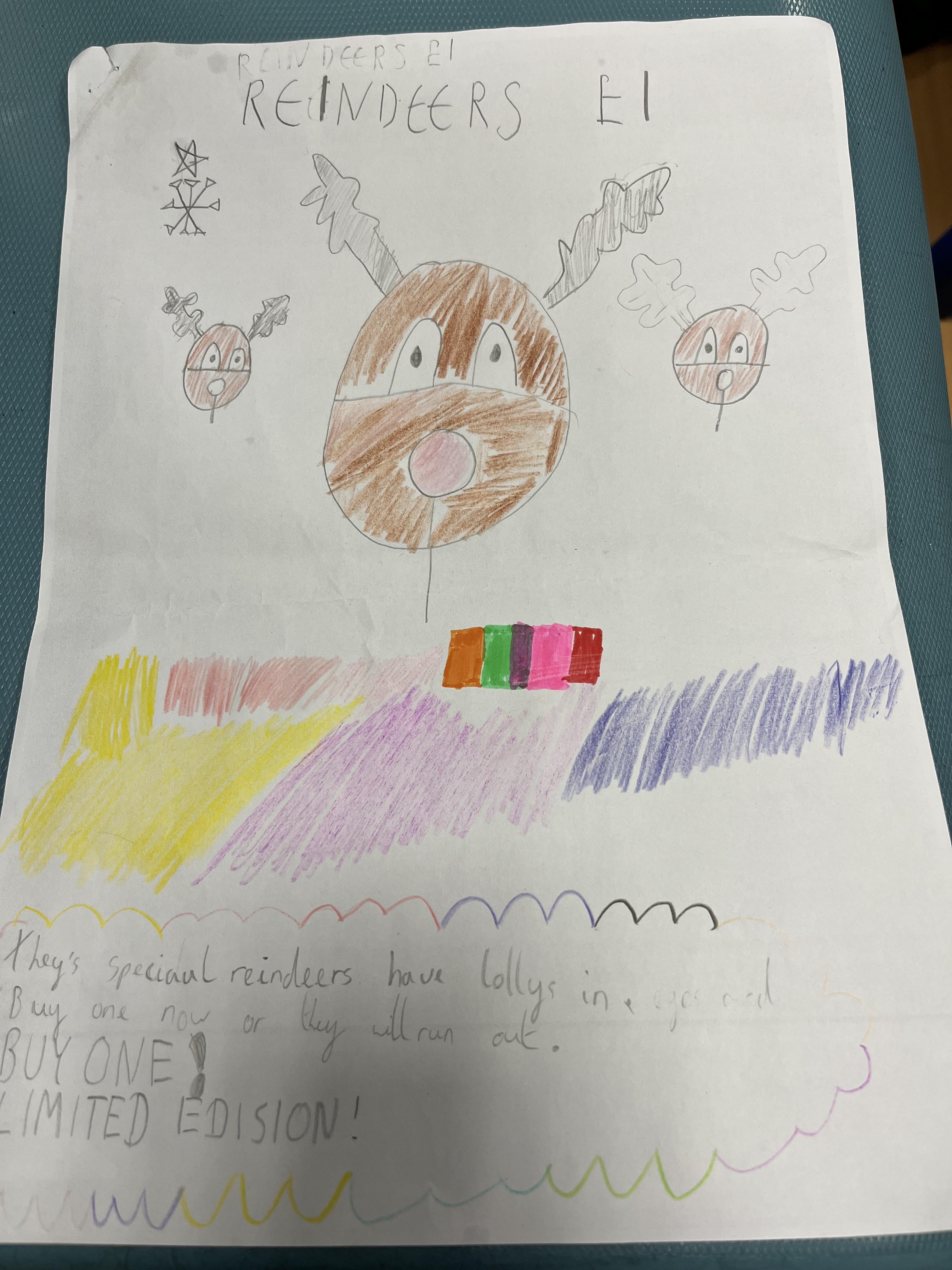 We created amazing posters for Enterprise week. These colourful posters will be displayed on our Winter Fayre stall. We thoroughly enjoyed making reindeer lollies to sell.