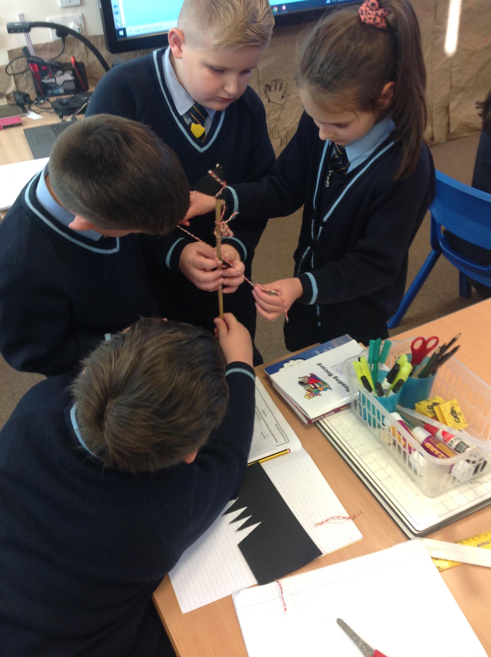 In Year Three, we designed and created our own Stone Age tools and weapons to hunt animals with. We challenged ourselves to only use Stone Age materials and methods including stone, wood and animal tendons!