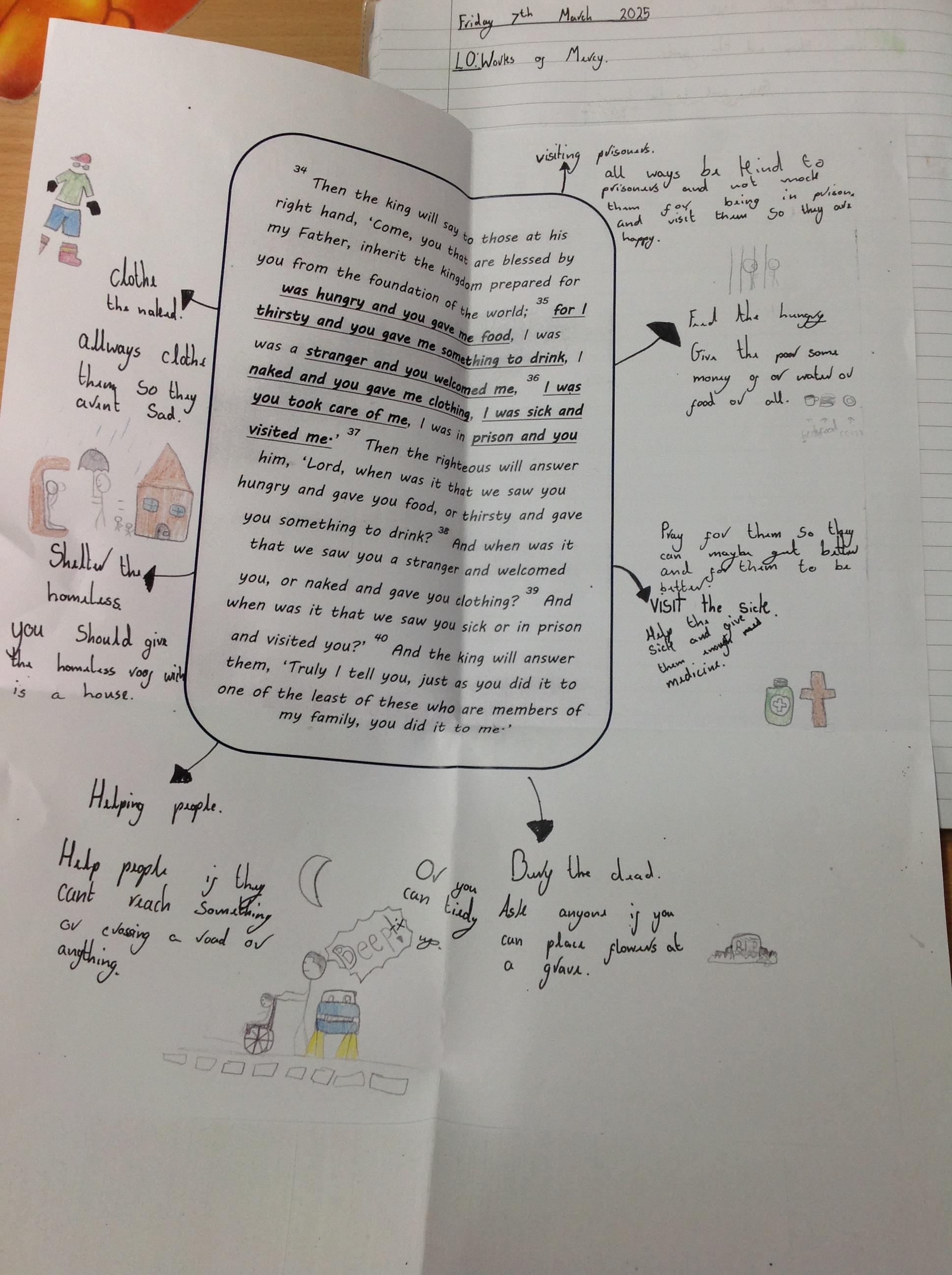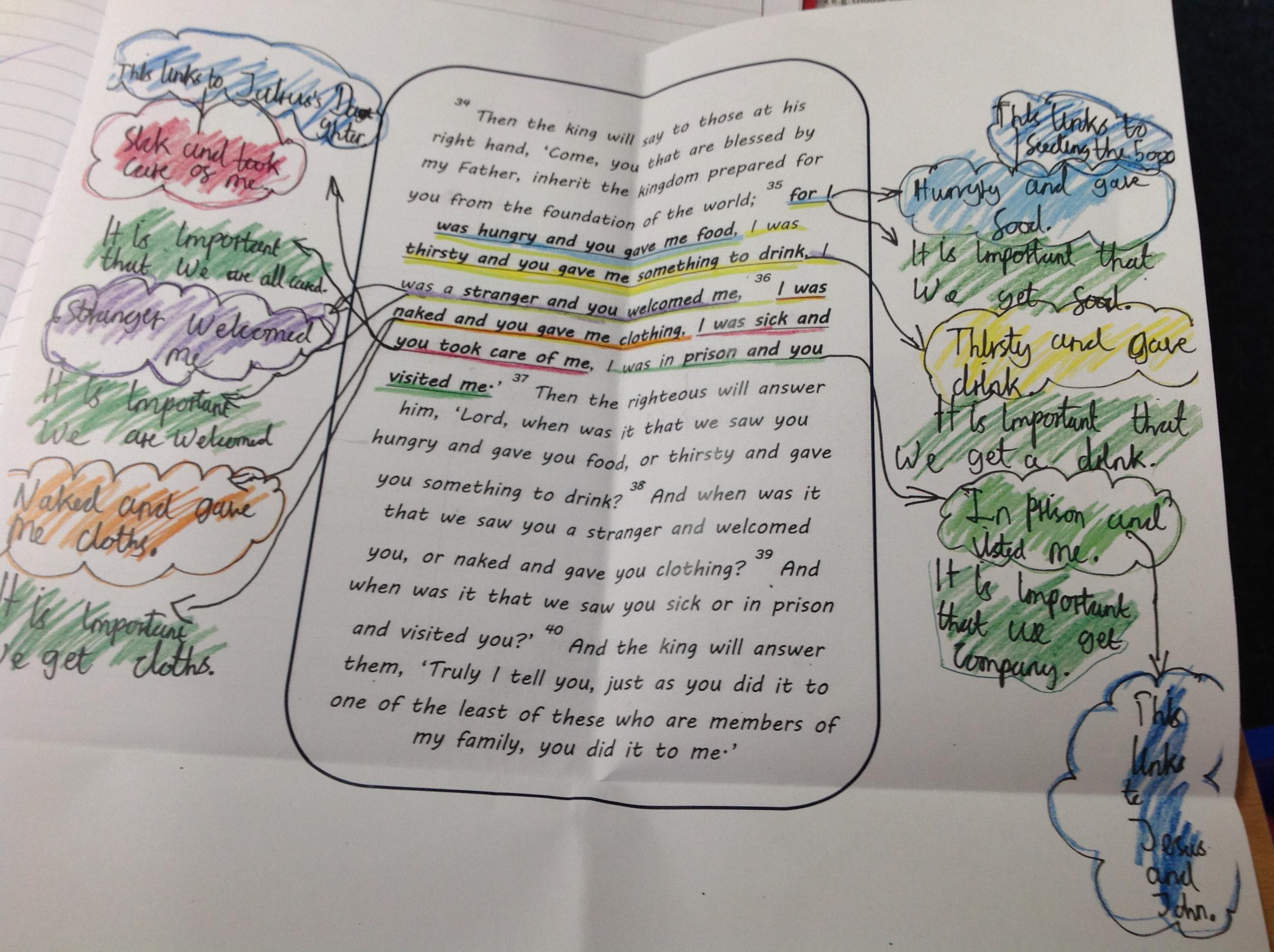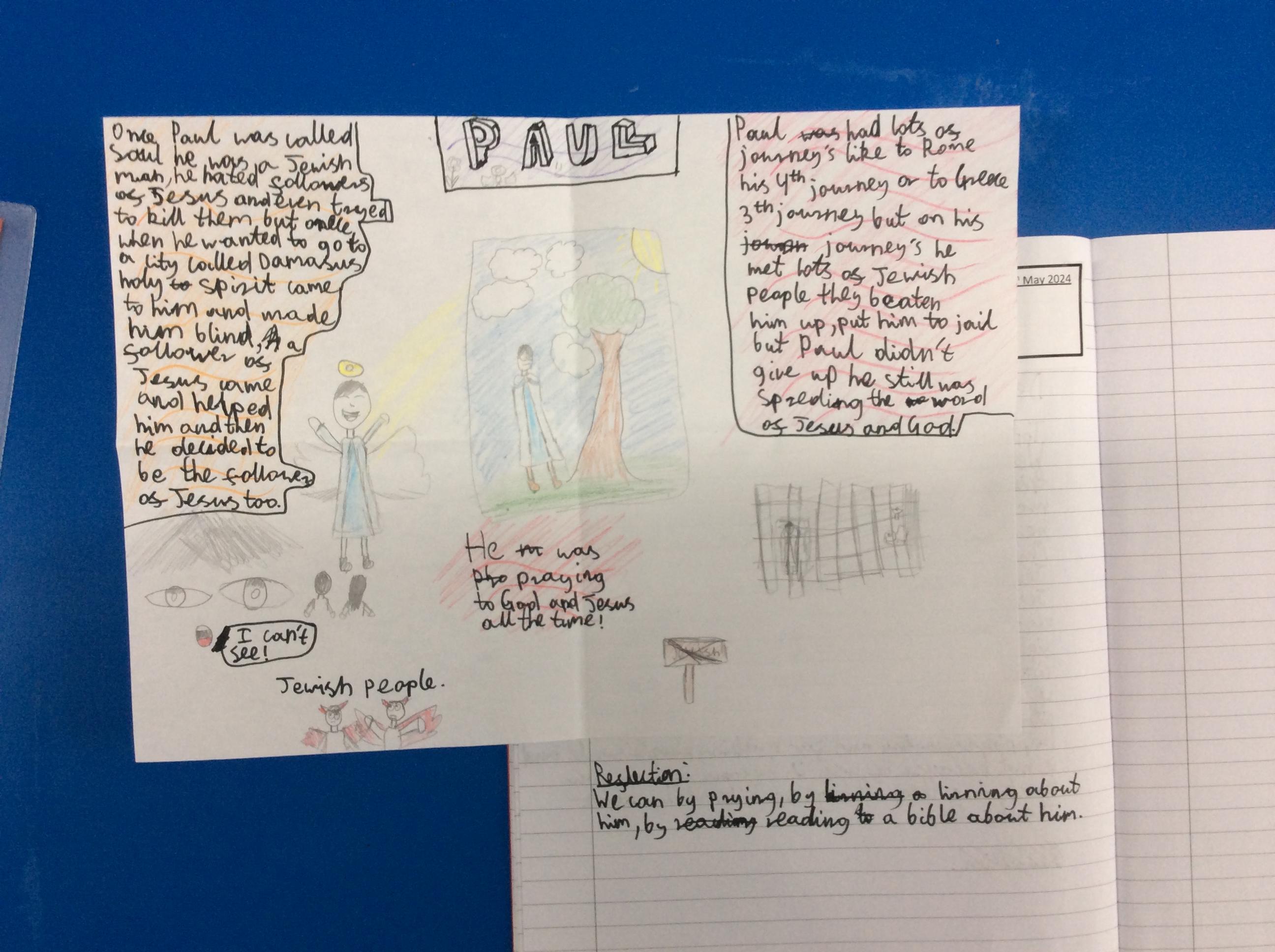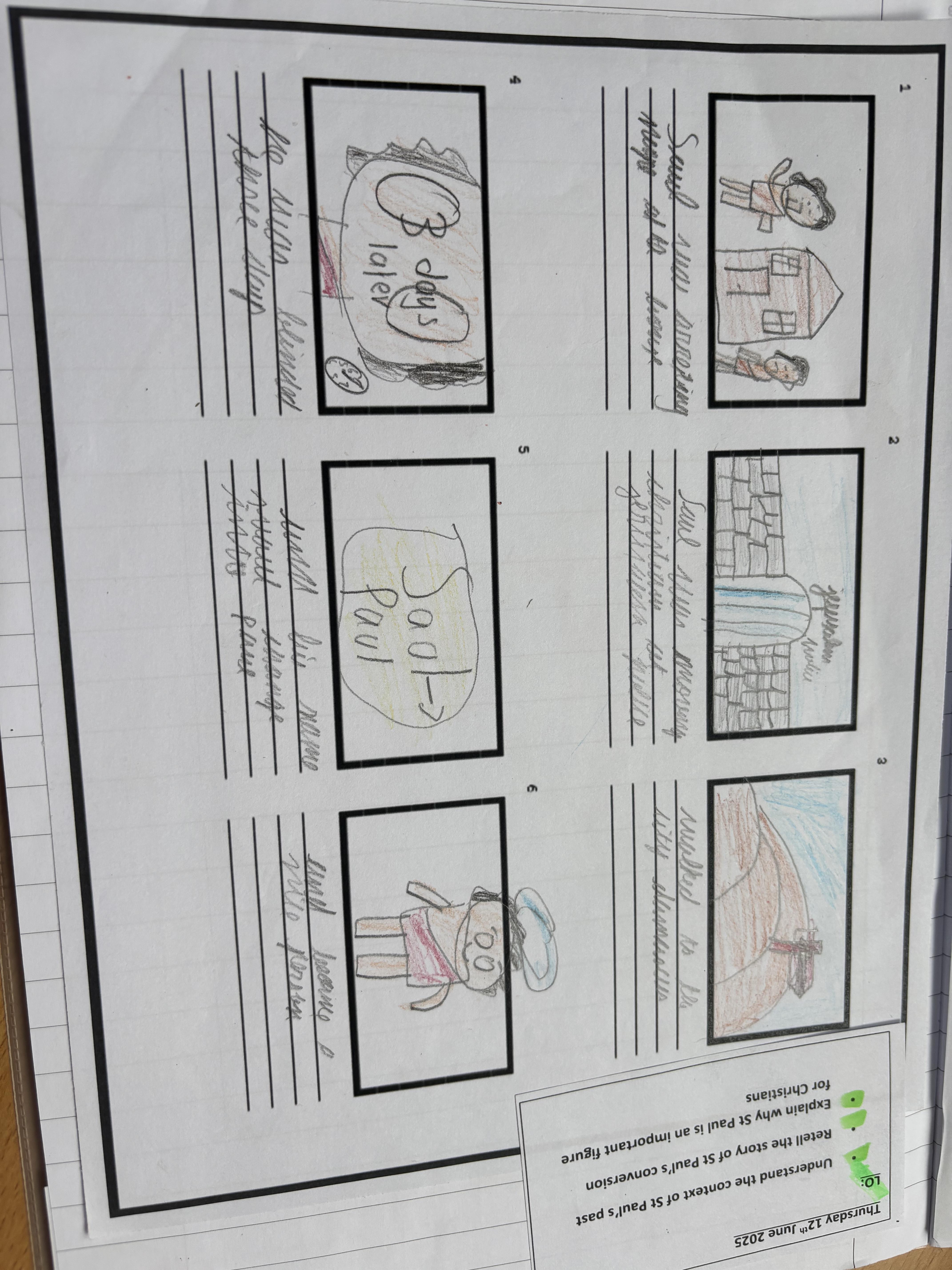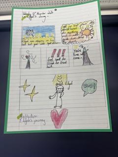 Year 4 explored the Gospel story of Jesus healing Jairus’ daughter. The story was repeated in various ways, and through times of discussion, imaginative reflection and creative response, the children learnt that they are created by God out of love and for love: they were designed for this purpose, which should inform how they live. The class created storyboards to show the sequencing of the story of Jairus' daughter.