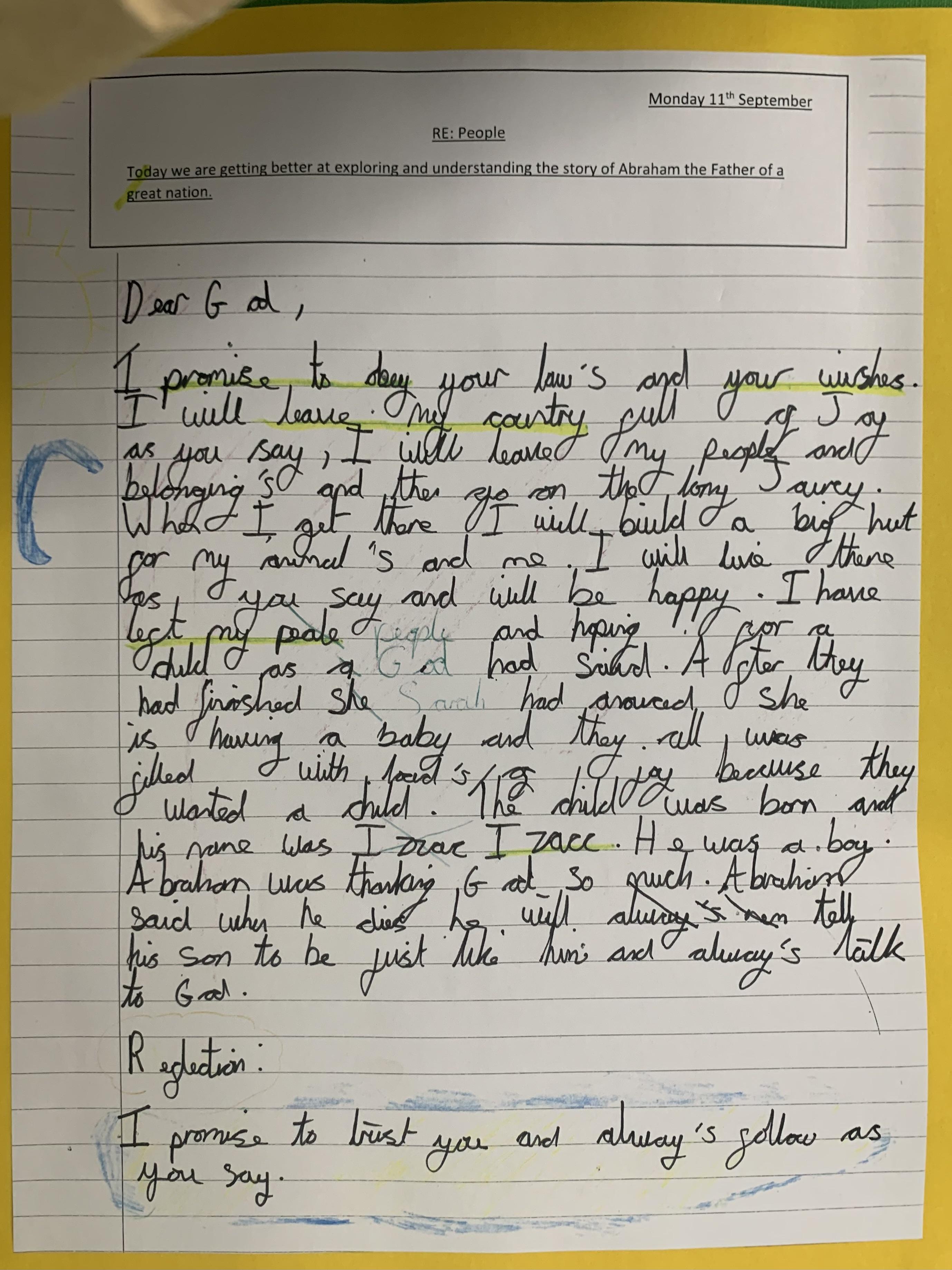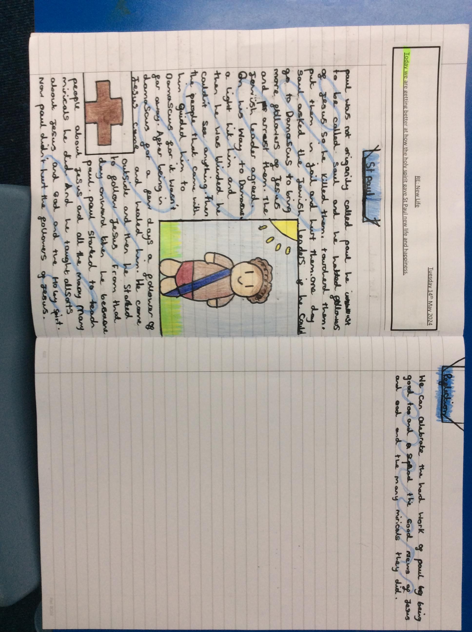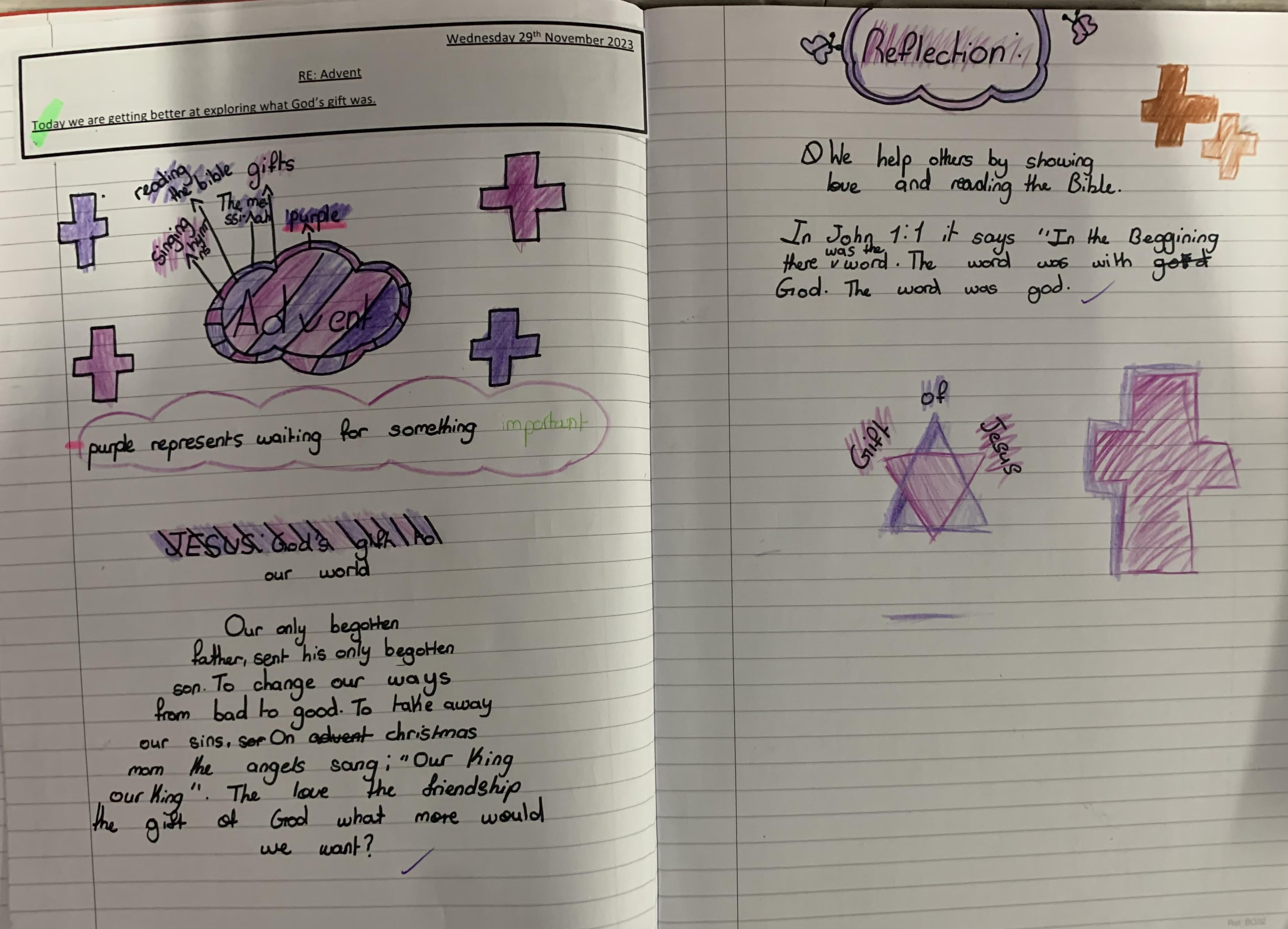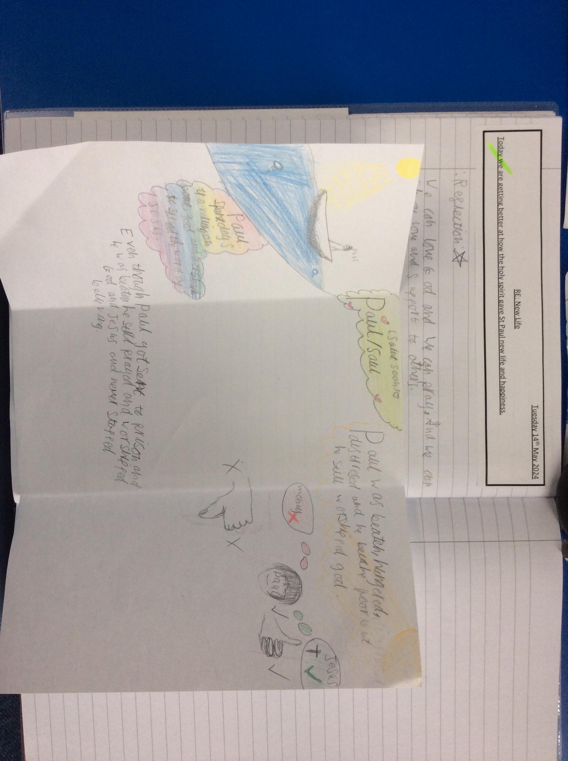 Year 4 explored the Gospel story of Jesus healing Jairus’ daughter. The story was repeated in various ways, and through times of discussion, imaginative reflection and creative response, the children learnt that they are created by God out of love and for love: they were designed for this purpose, which should inform how they live. The class created storyboards to show the sequencing of the story of Jairus' daughter.