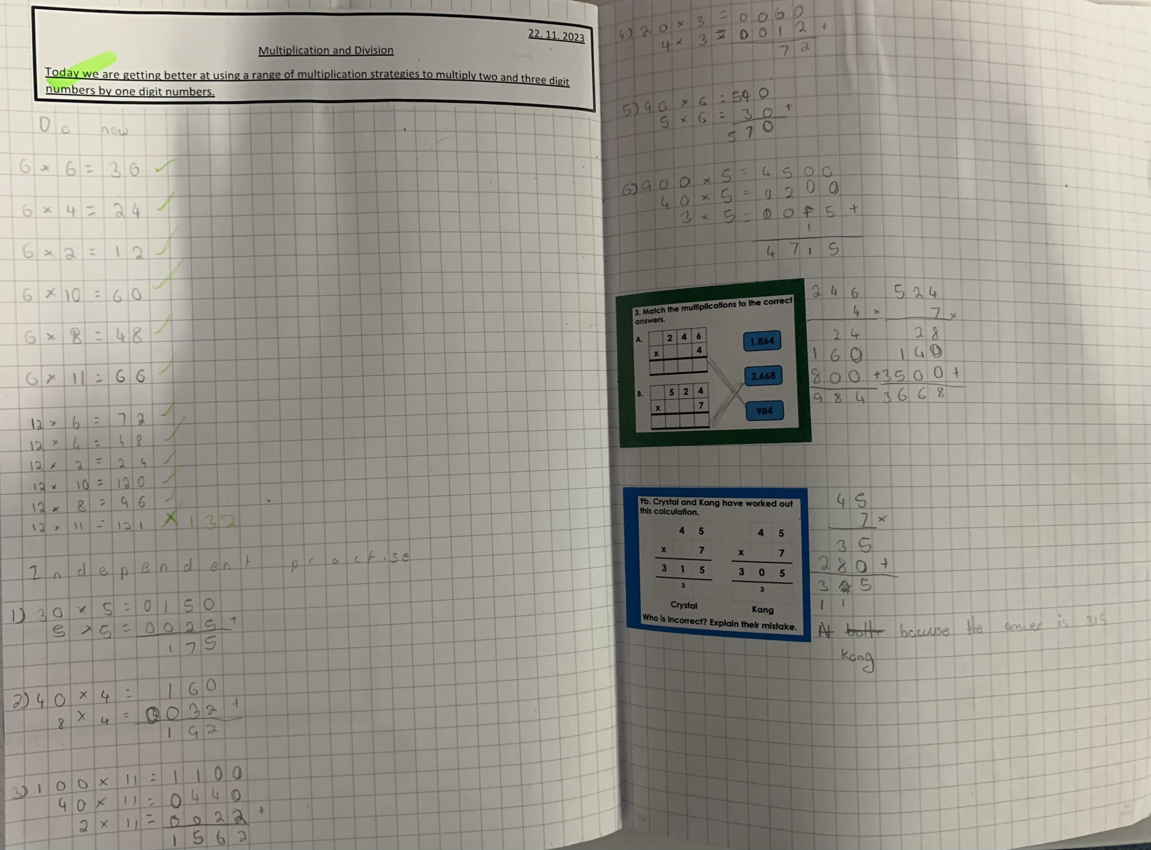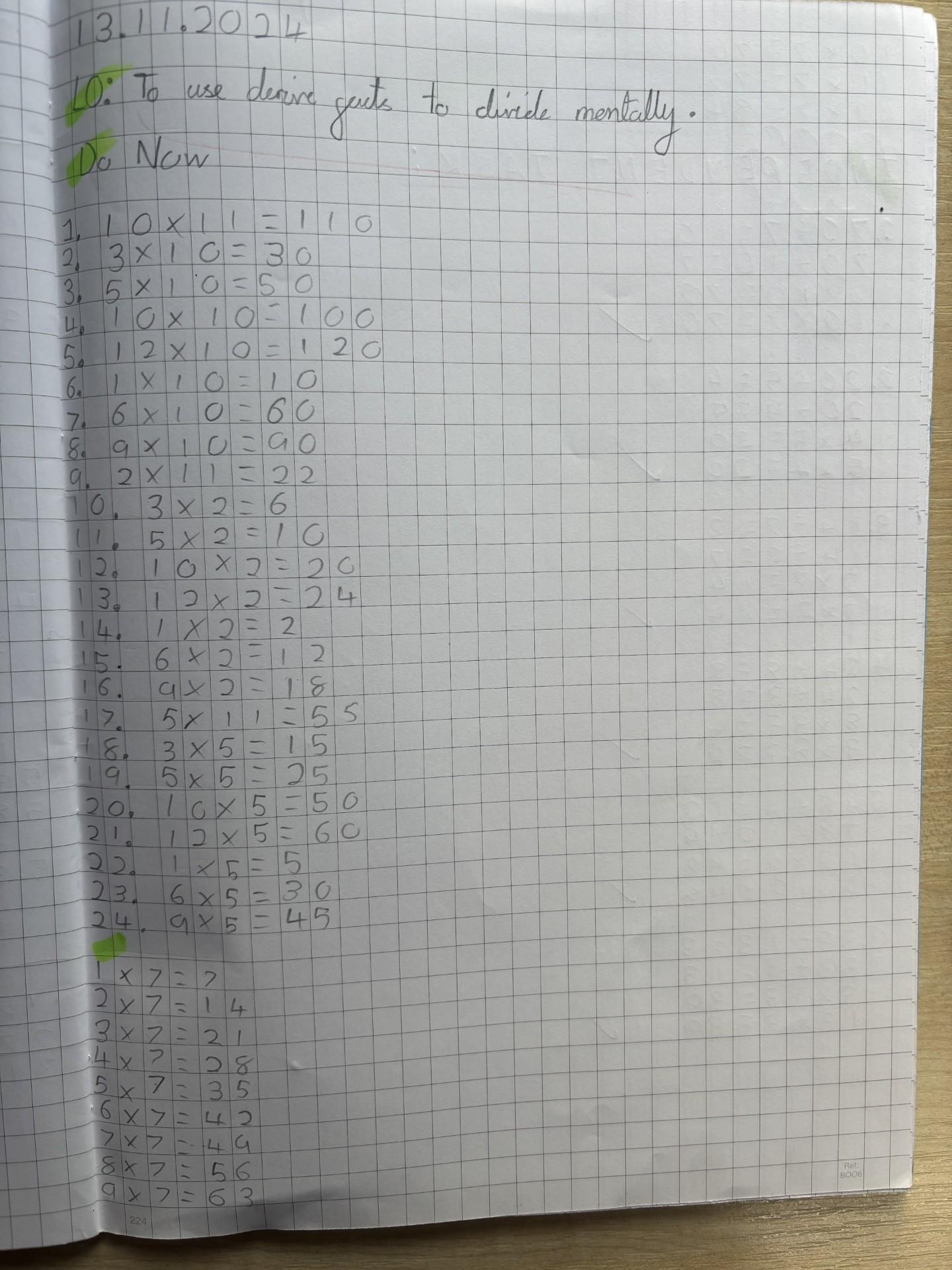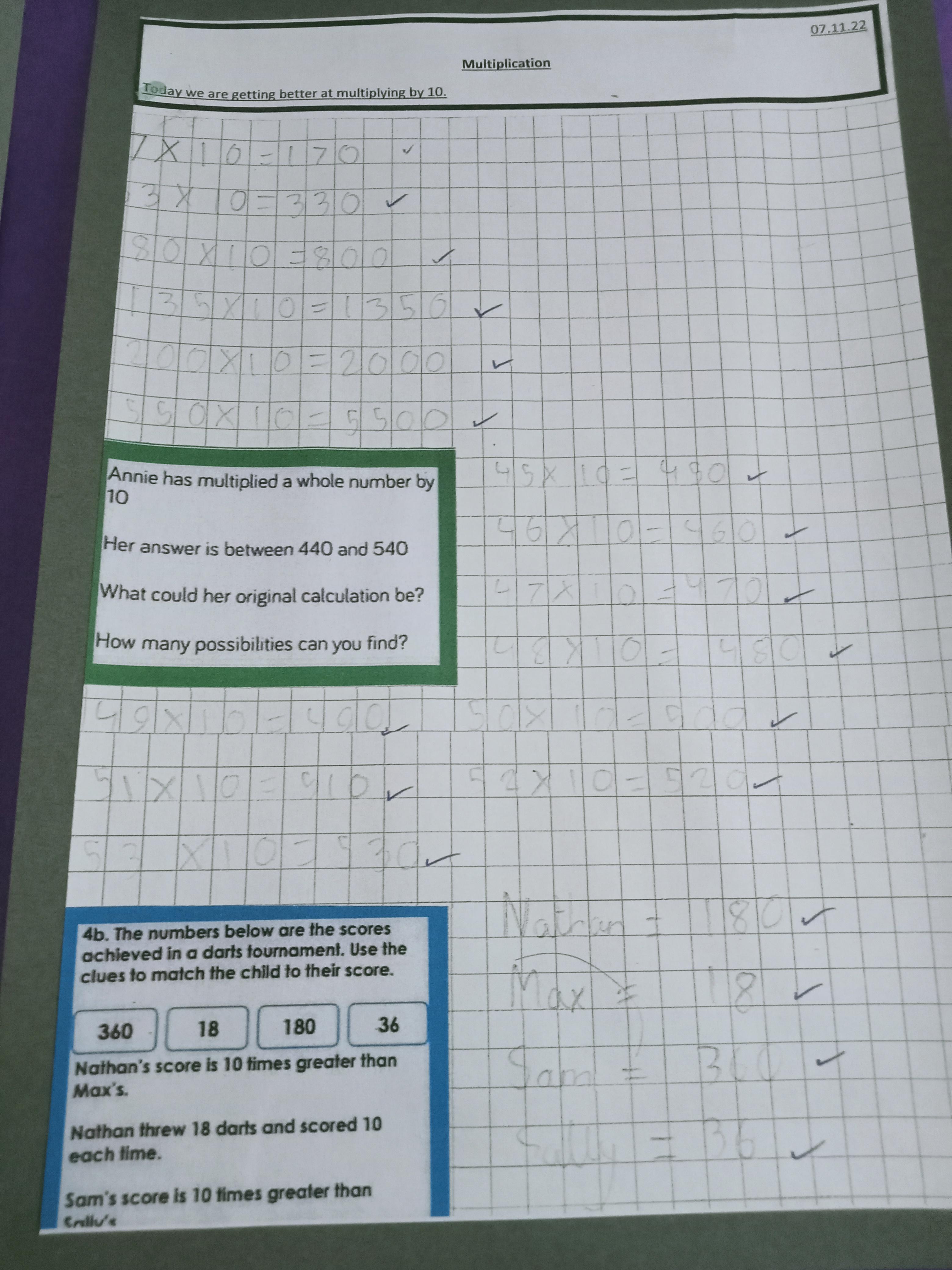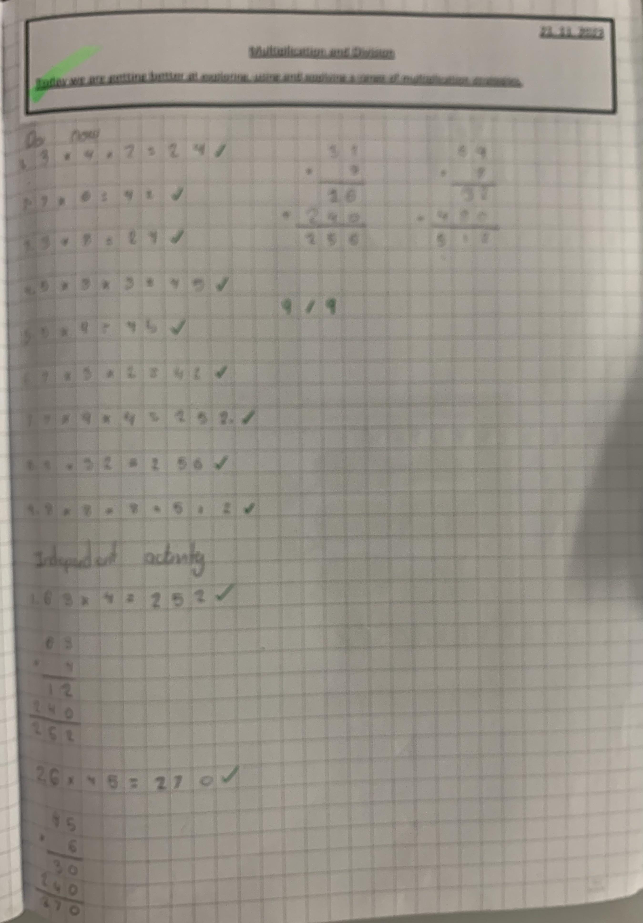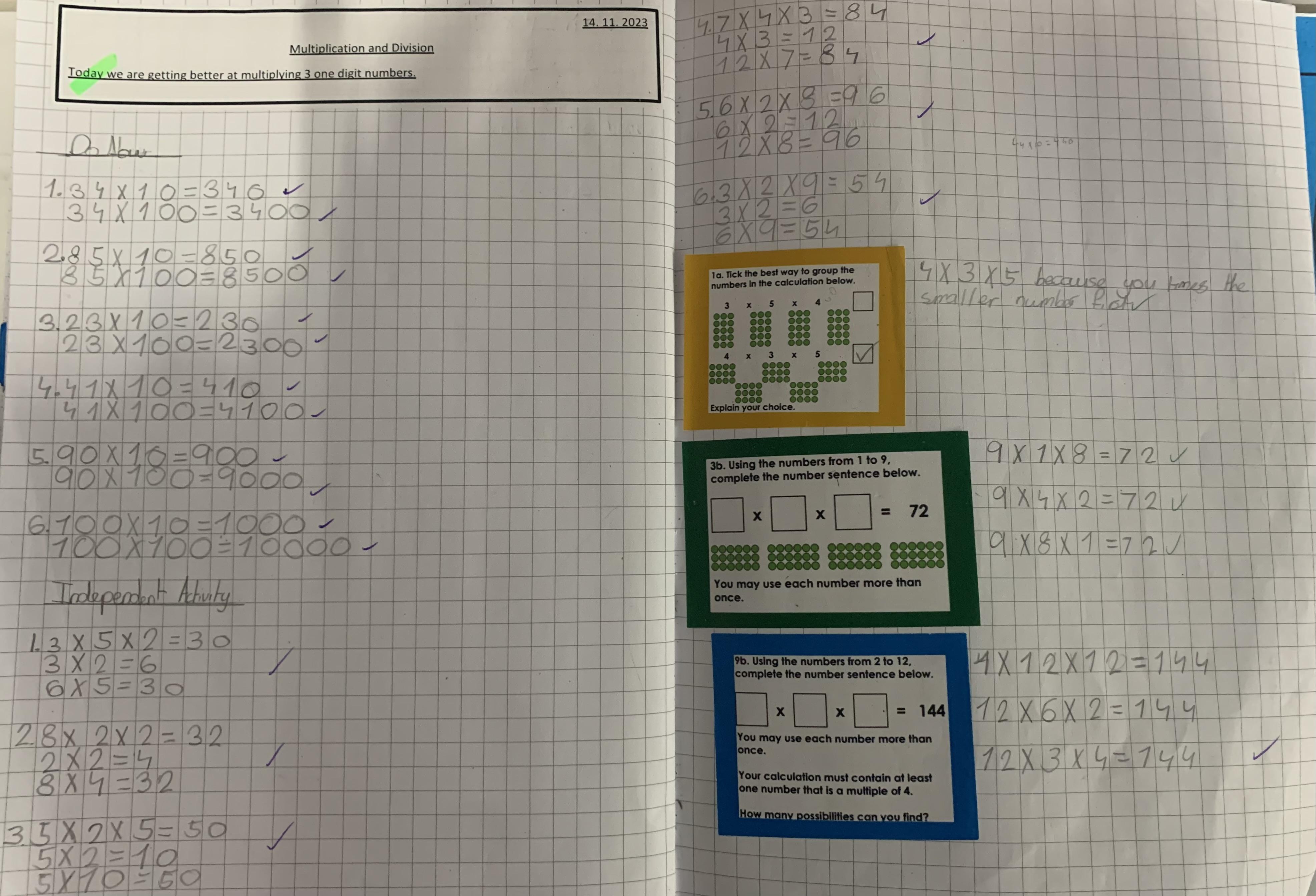 In maths we have been looking at multiplication
