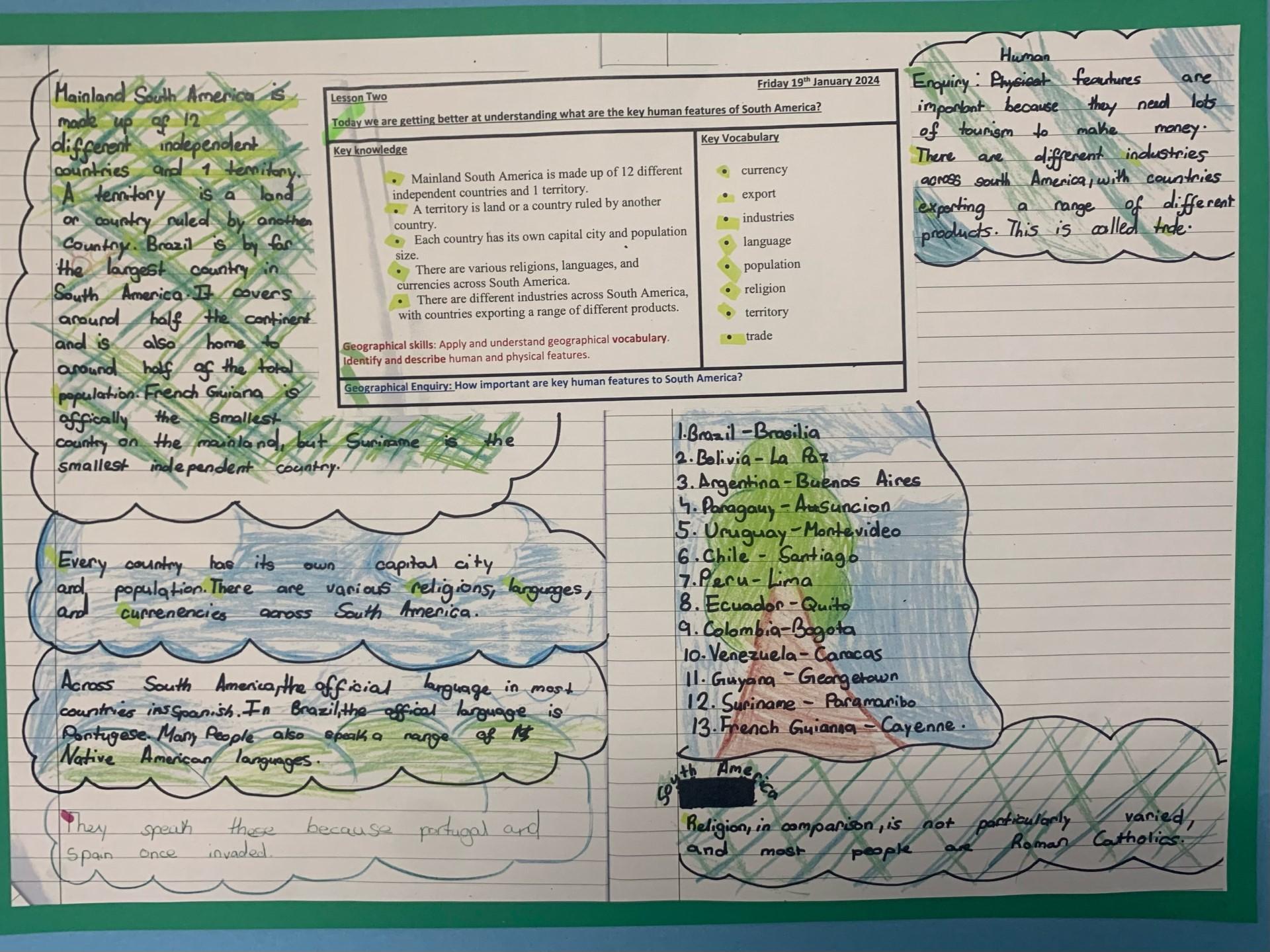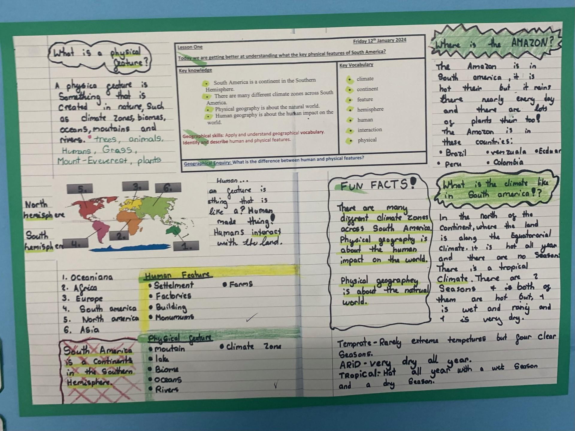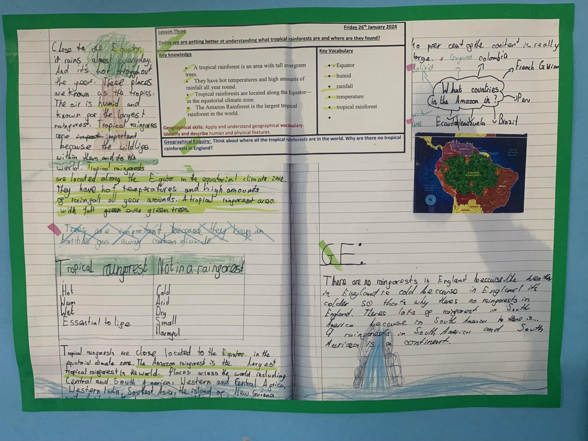 In Geography, Year 4 have been studying the Amazon as our topic. We have started this topic by looking at the human and physical geography of South America, before locating the world's rainforests and looking at the different layers within the rainforest.