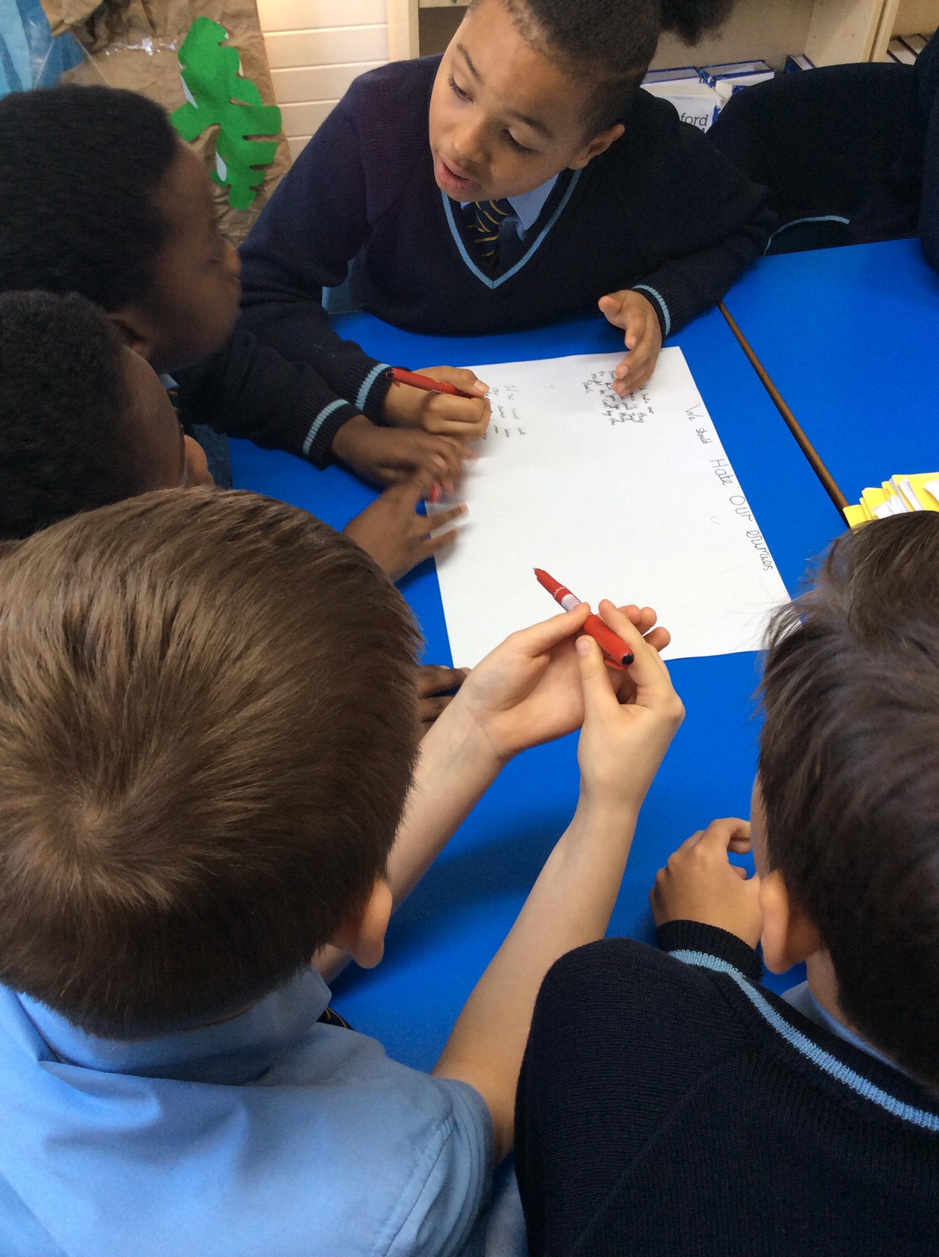 As part of our RE topic, Year 4 have debated whether Jesus was right to say we should love our enemies. The class split into two and came back together at the end to present their findings.